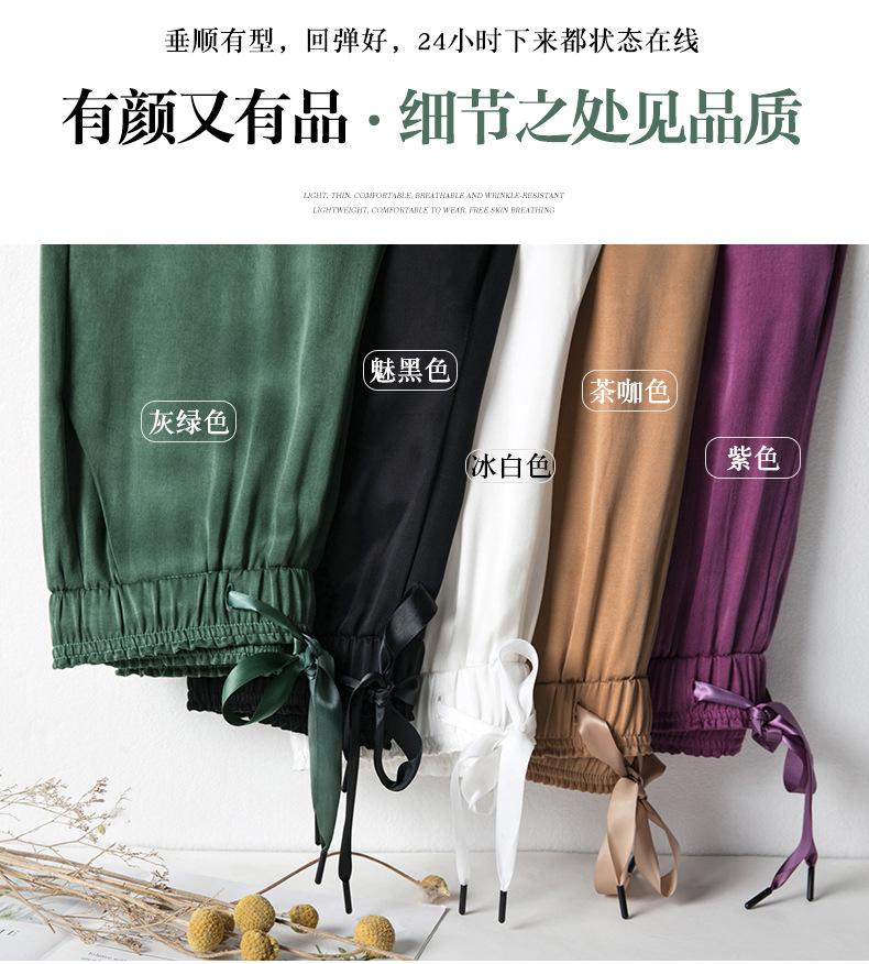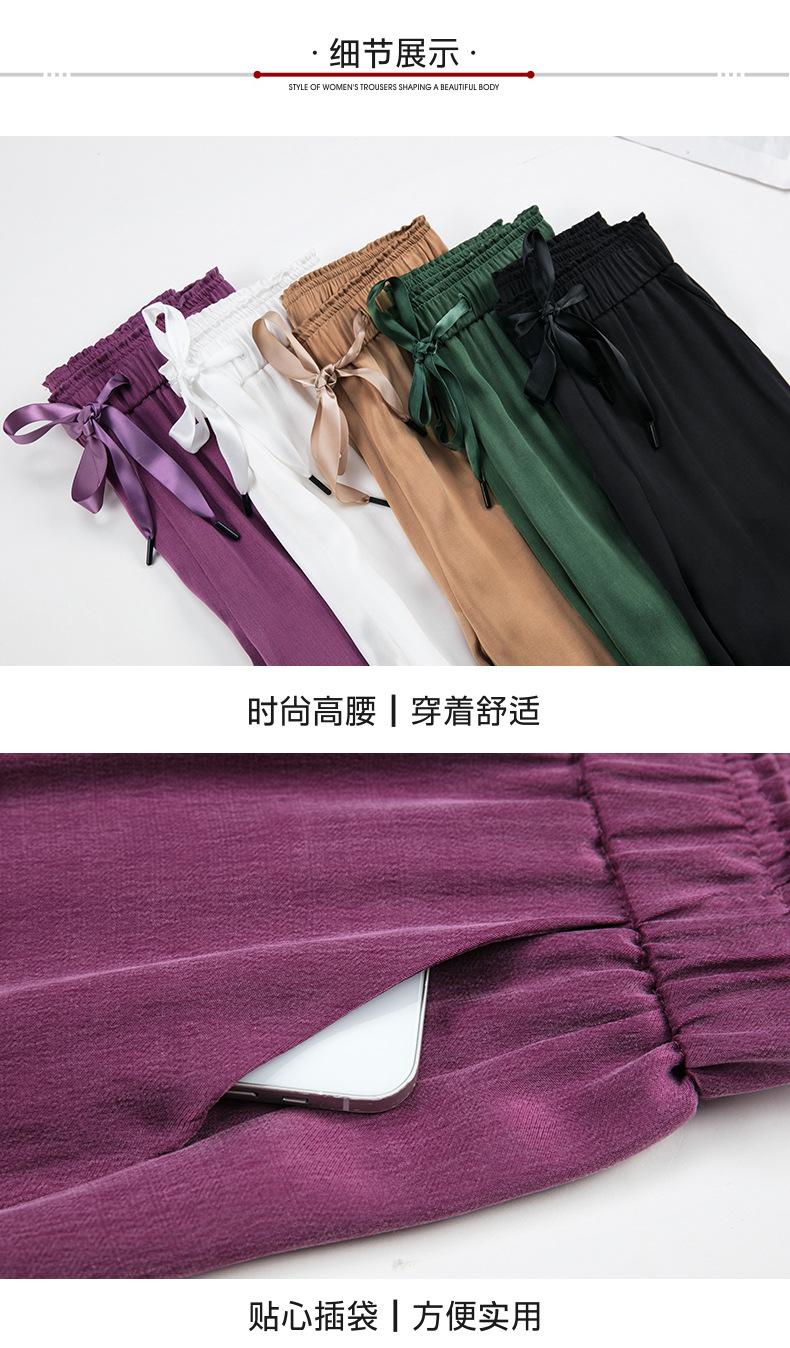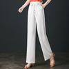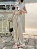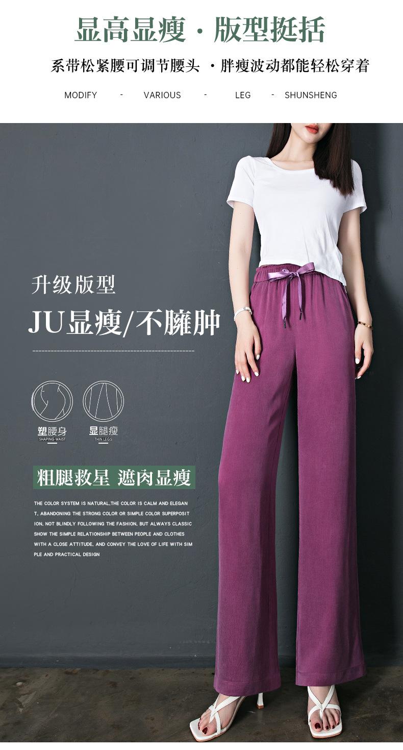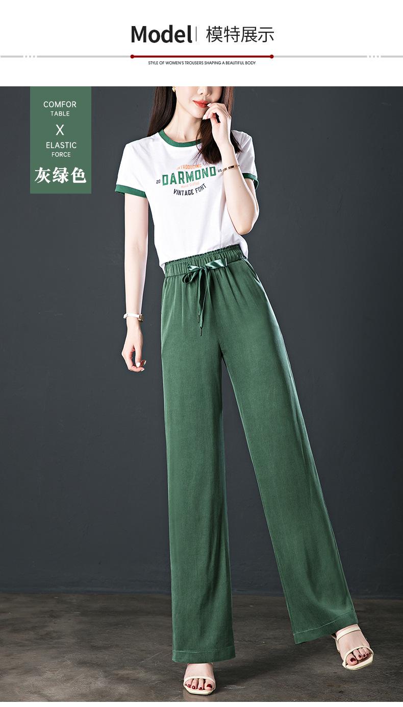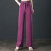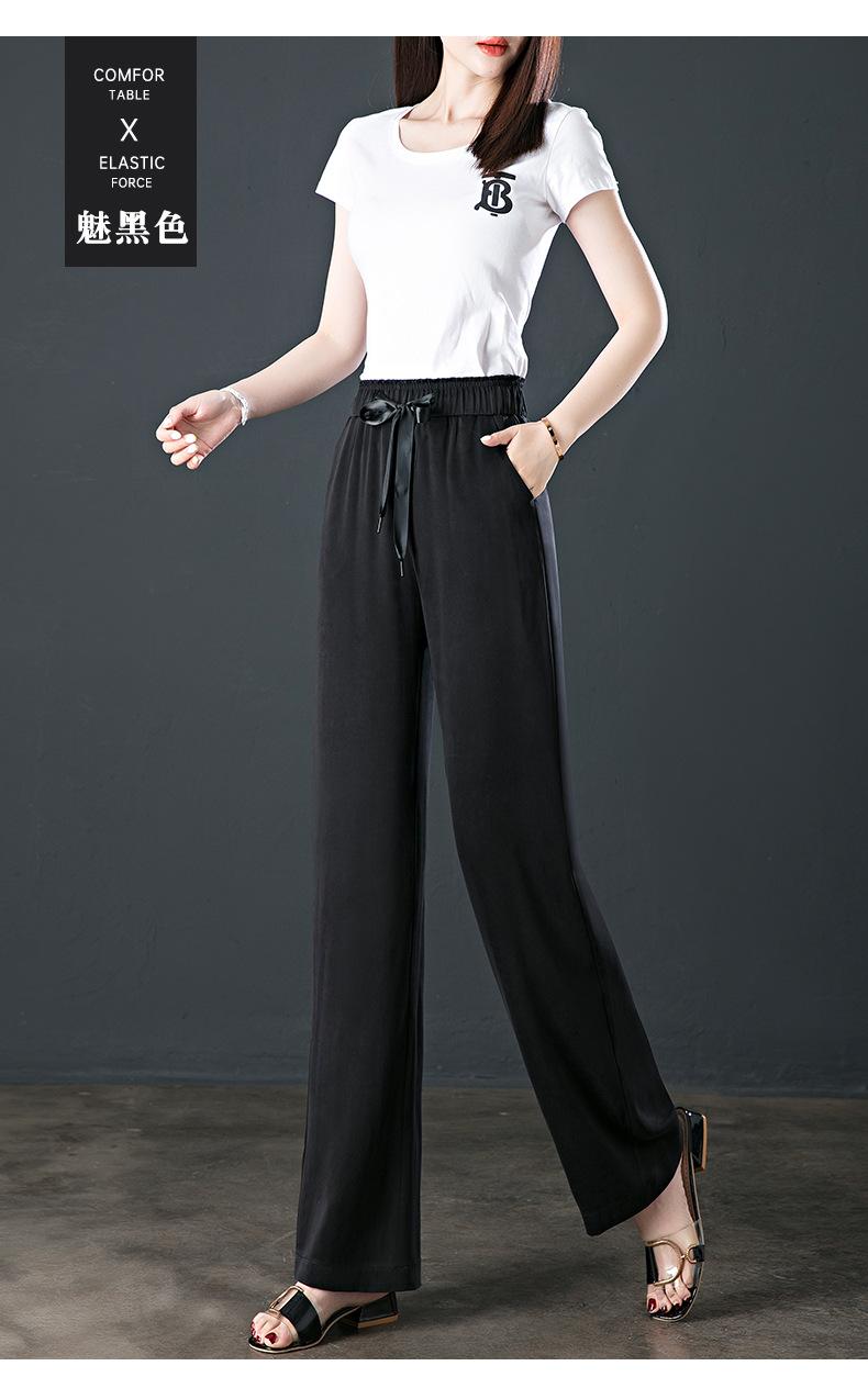 Pantalones de Pierna Ancha de Cupro Seda para Mujer Verano Delgados 2025 Nuevos Elásticos de Cintura Alta Drapeados Rectos Casuales Hasta el Piso