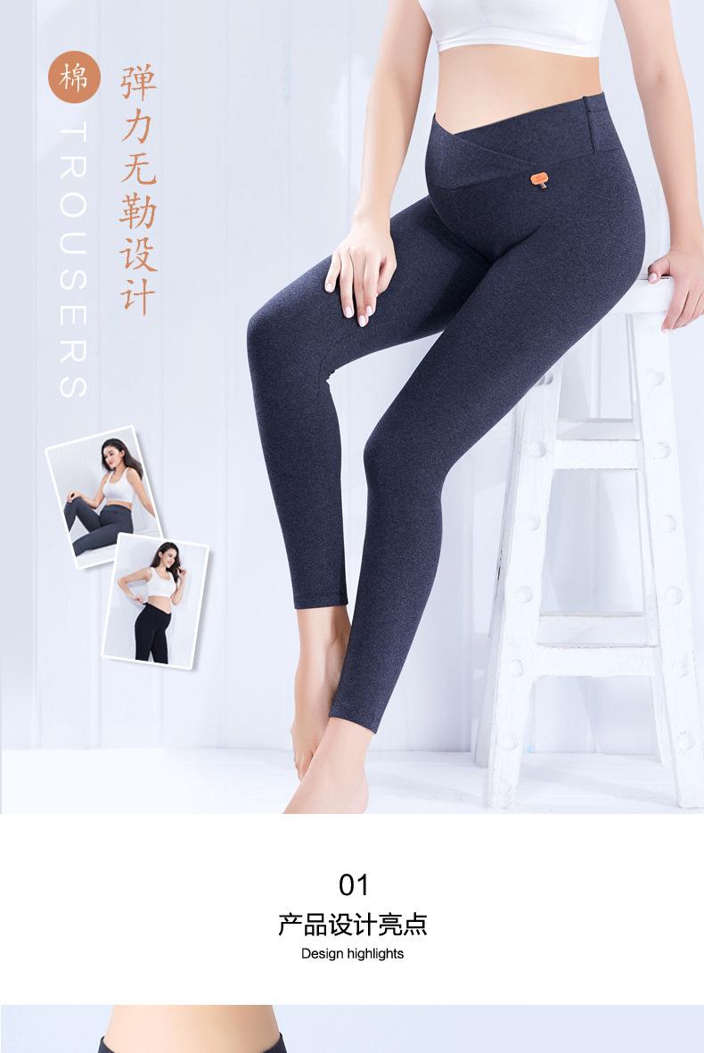 Leggings de algodón puro para embarazadas, pantalones de cintura baja, moda de primavera y otoño, vestido fino de moda para mamá.
