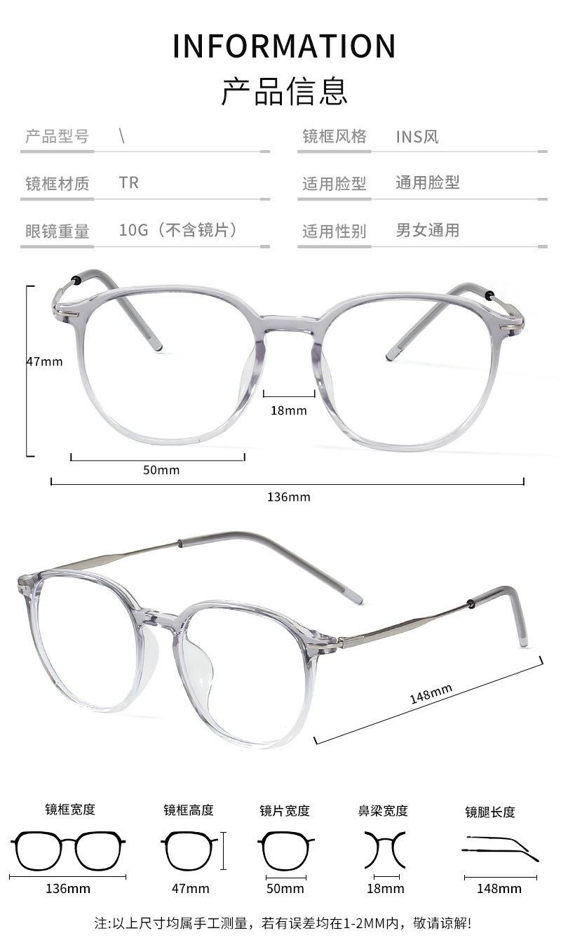 M3901 nueva tendencia armazón óptico ocio cómodo para ir al trabajo TR armazón color transparente se puede equipar con armazón para anteojos para miopía al por mayor