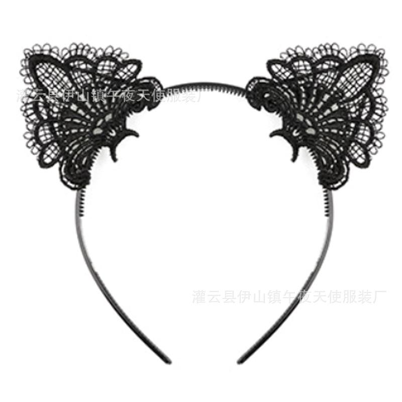 Accesorios de lencería sexy estilo coreano linda diadema con orejas de gato de encaje hueco diadema con orejas de gato diadema decorativa para niña gato 02