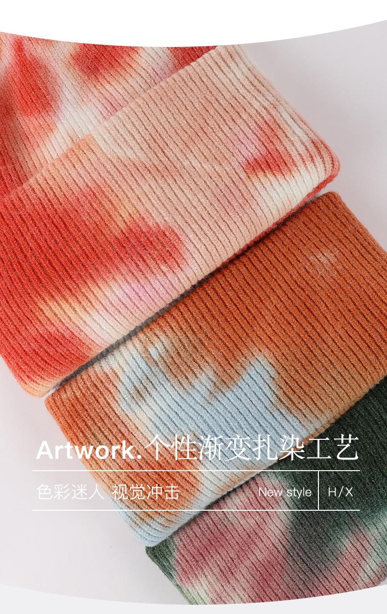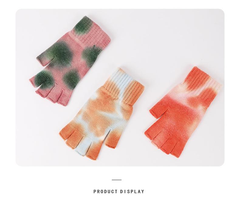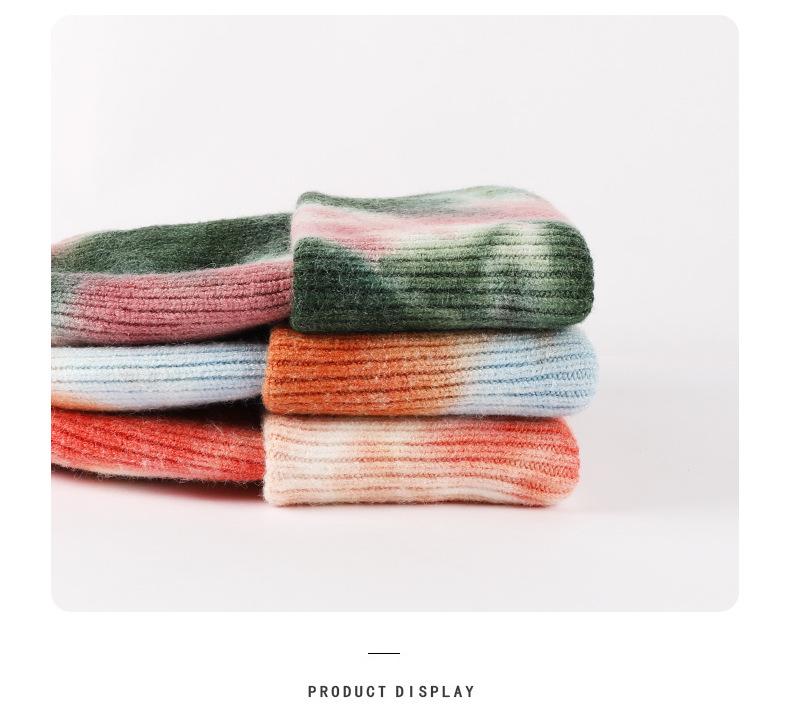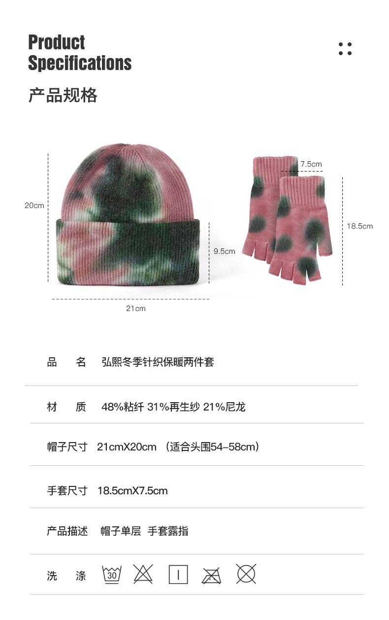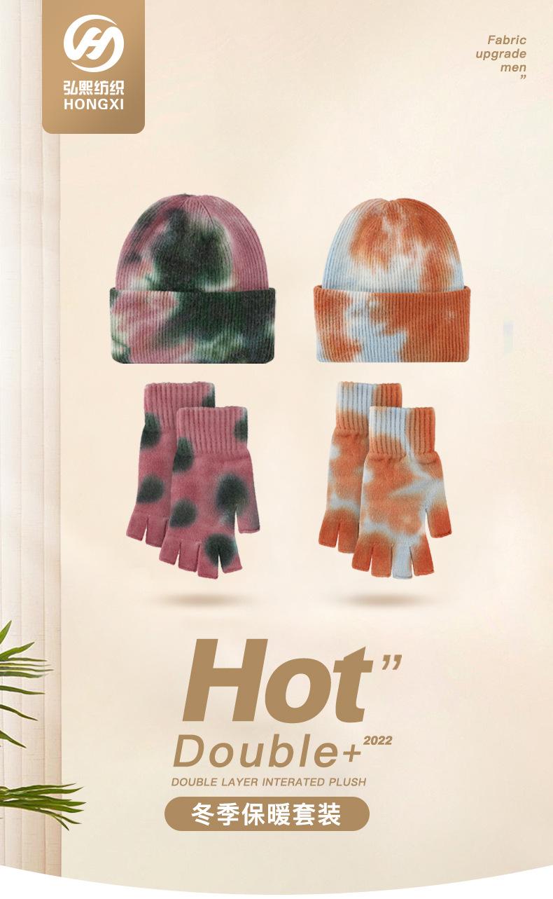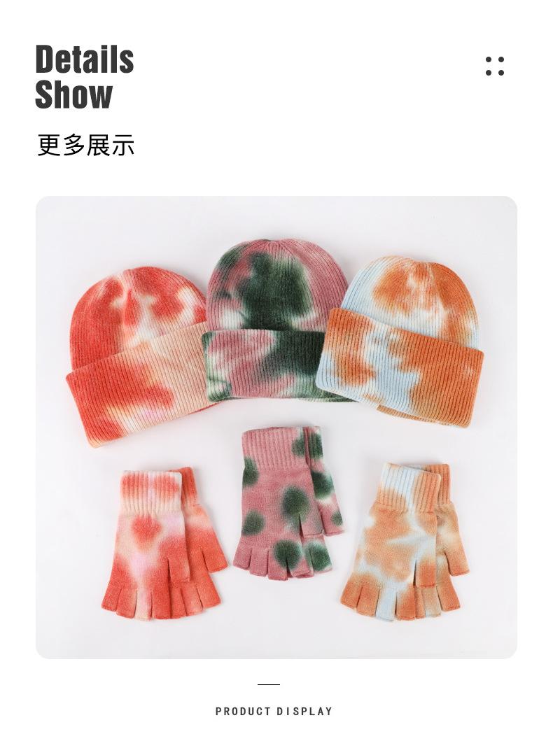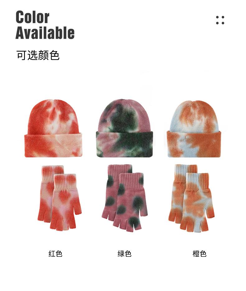 Guantes de Medio Dedo Teñidos Anudados de Lana Nueva Transfronterizos Otoño e Invierno, Gorro de Dos Piezas, Cálido, Degradado, Protección para las Orejas, Conjunto de Gorro de Punto