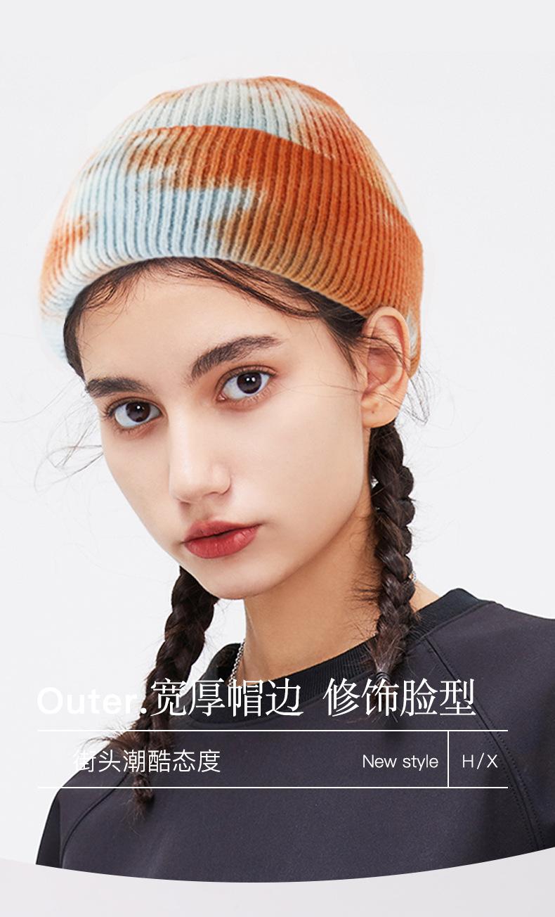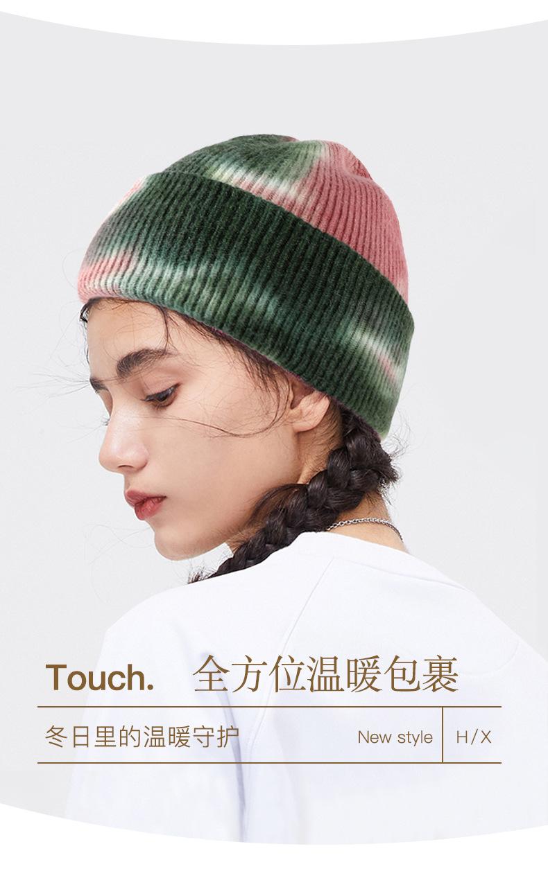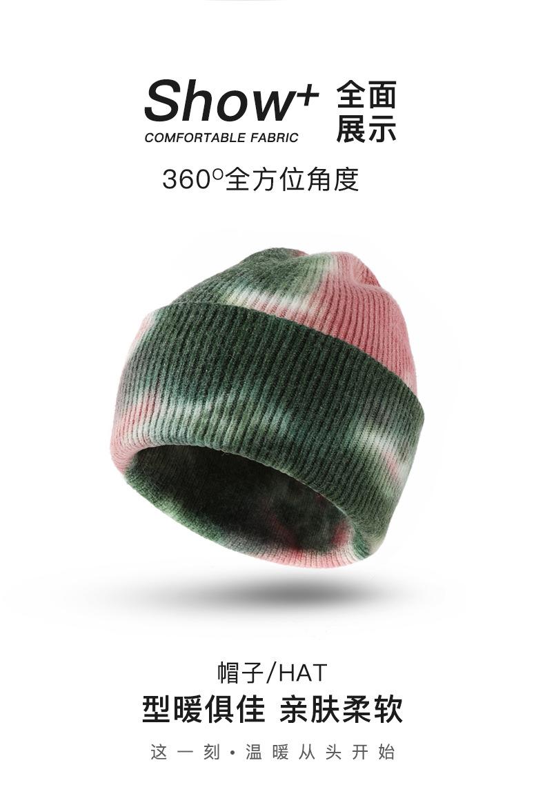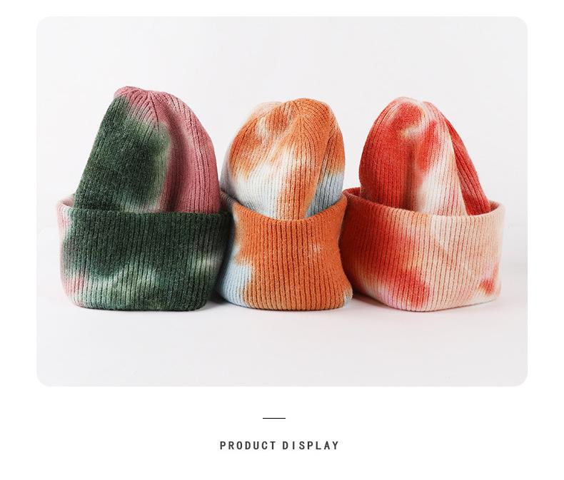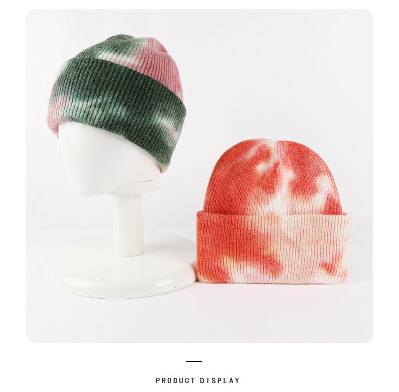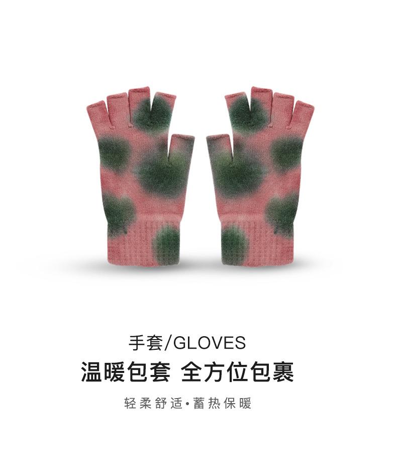 Guantes de Medio Dedo Teñidos Anudados de Lana Nueva Transfronterizos Otoño e Invierno, Gorro de Dos Piezas, Cálido, Degradado, Protección para las Orejas, Conjunto de Gorro de Punto