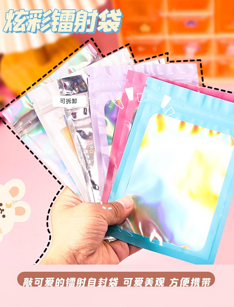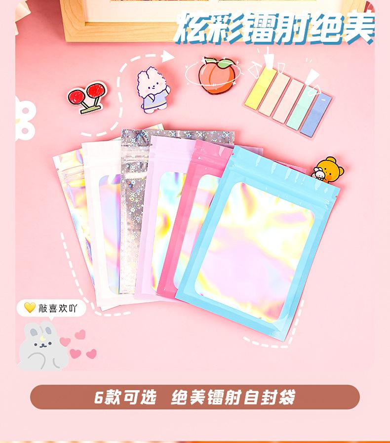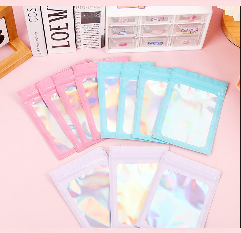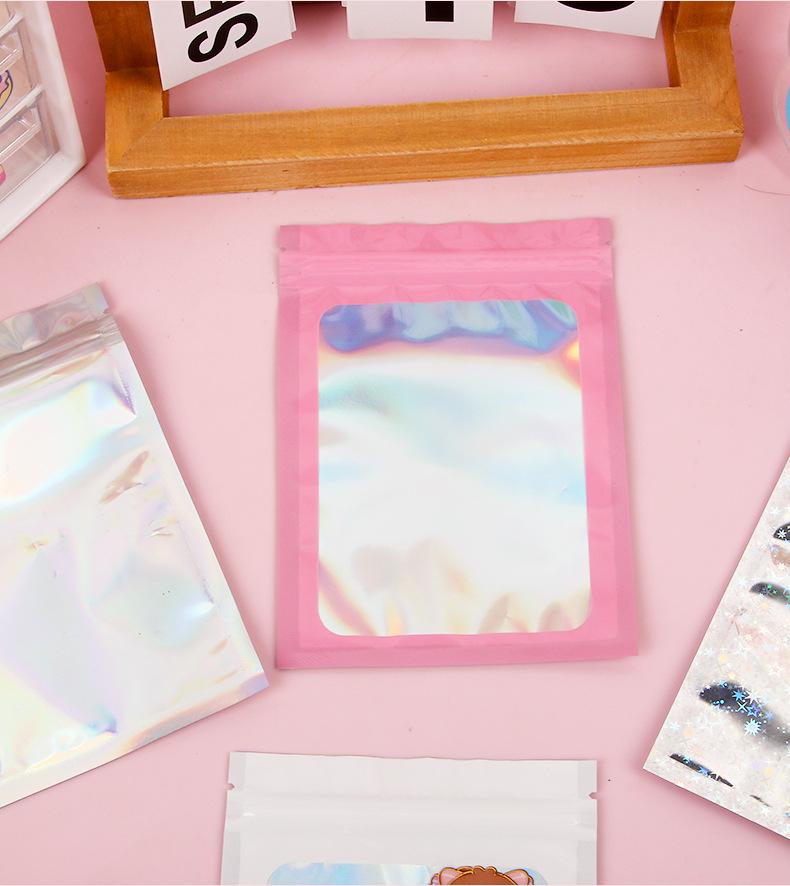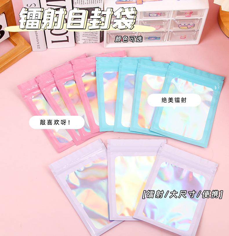 bolsa ziplock láser estilo ins embalaje de plástico color bolsa de embalaje engrosada impermeable bolsa de almacenamiento sellado para tarjetas pequeñas al por mayor