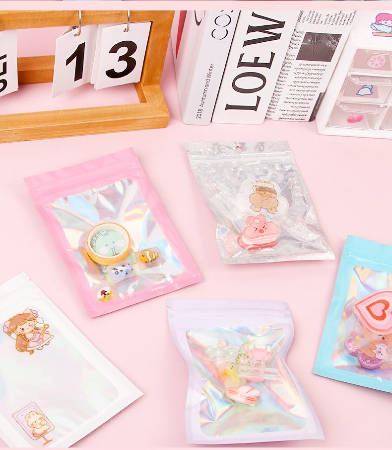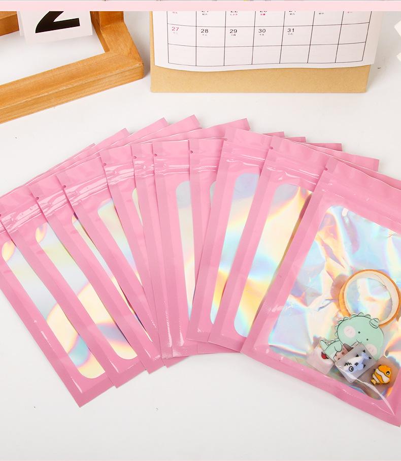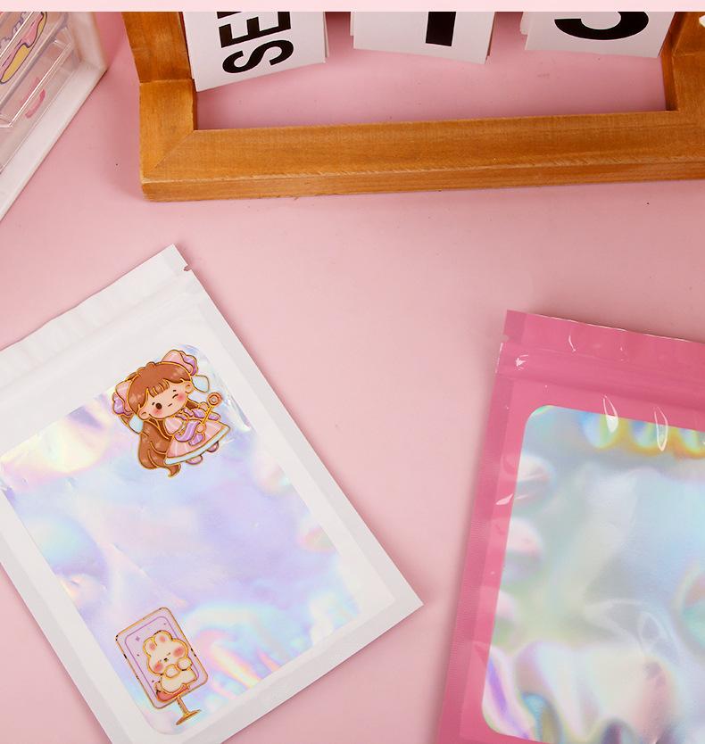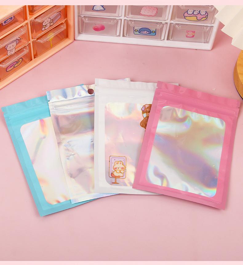bolsa ziplock láser estilo ins embalaje de plástico color bolsa de embalaje engrosada impermeable bolsa de almacenamiento sellado para tarjetas pequeñas al por mayor