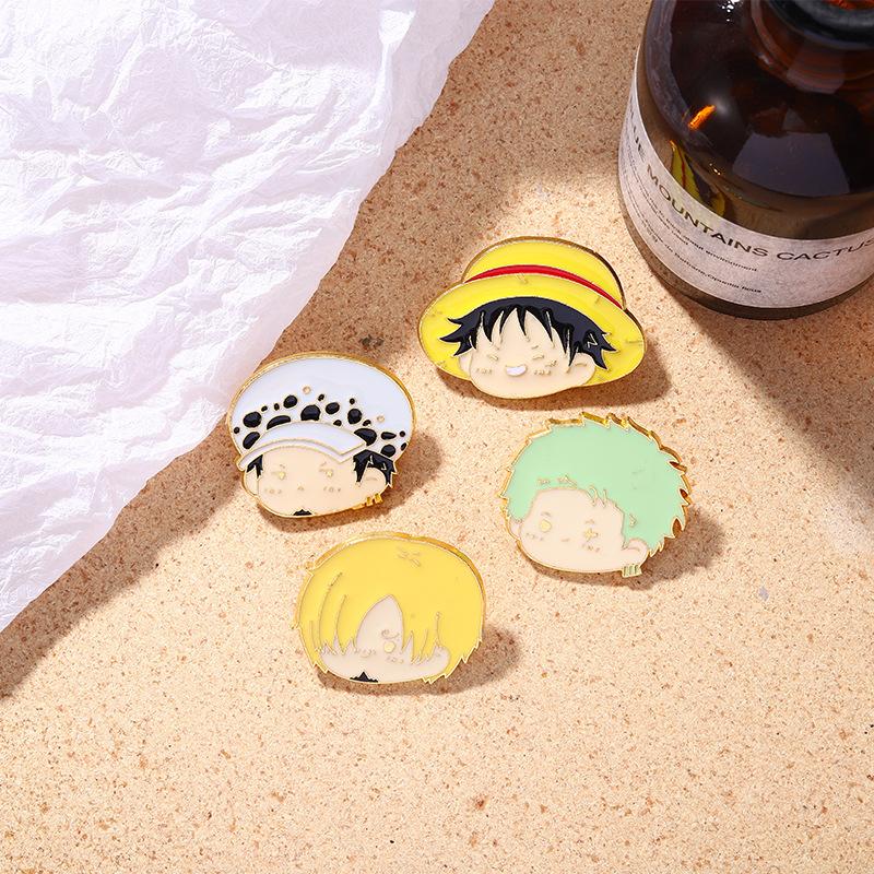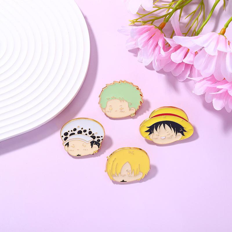 Broche de cabeza pequeña de dibujos animados, lindo, periférico, conmemorativo de Cine y Televisión, sombrero de paja, insignia de metal, medalla antirreflejo, venta al por mayor