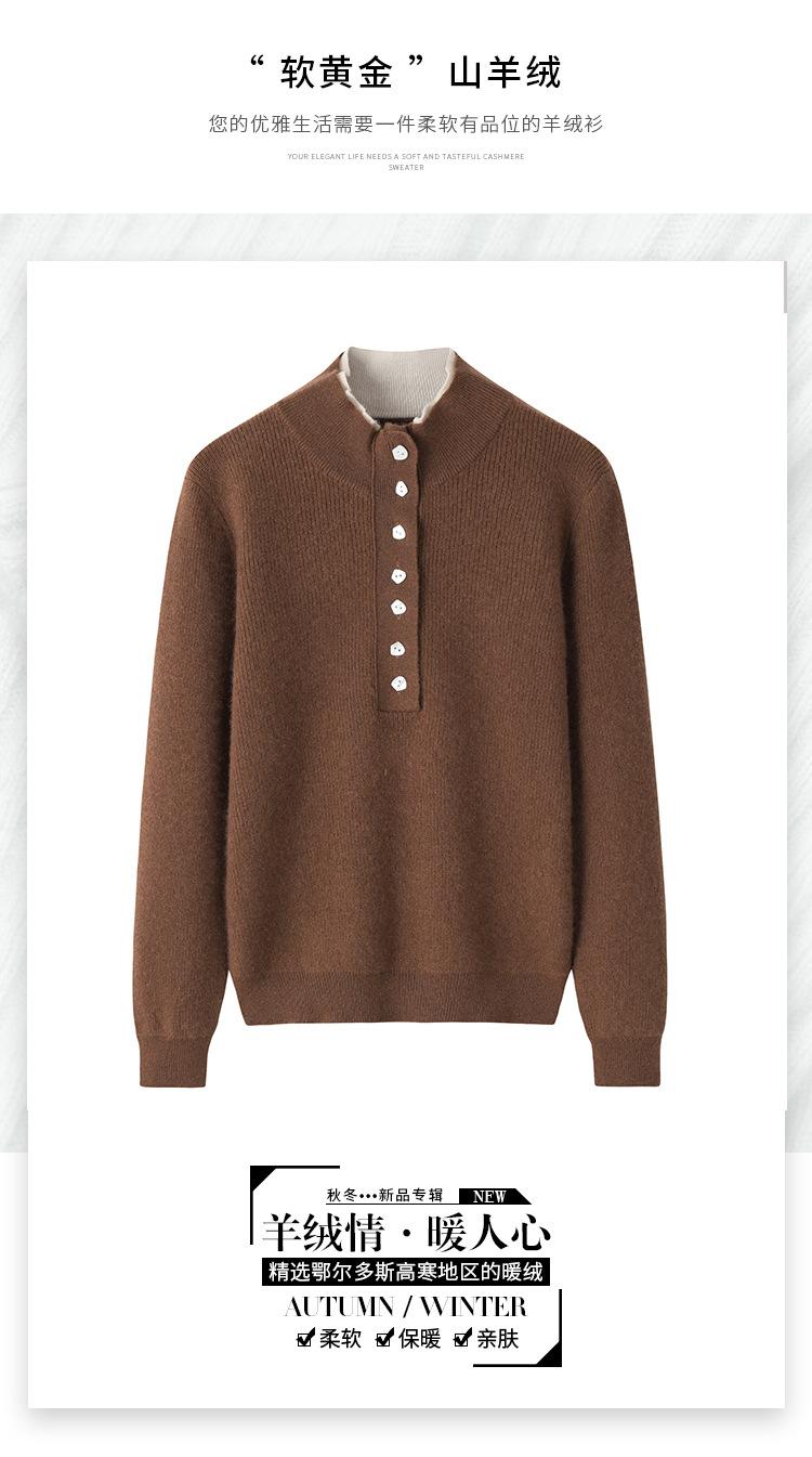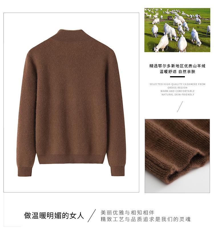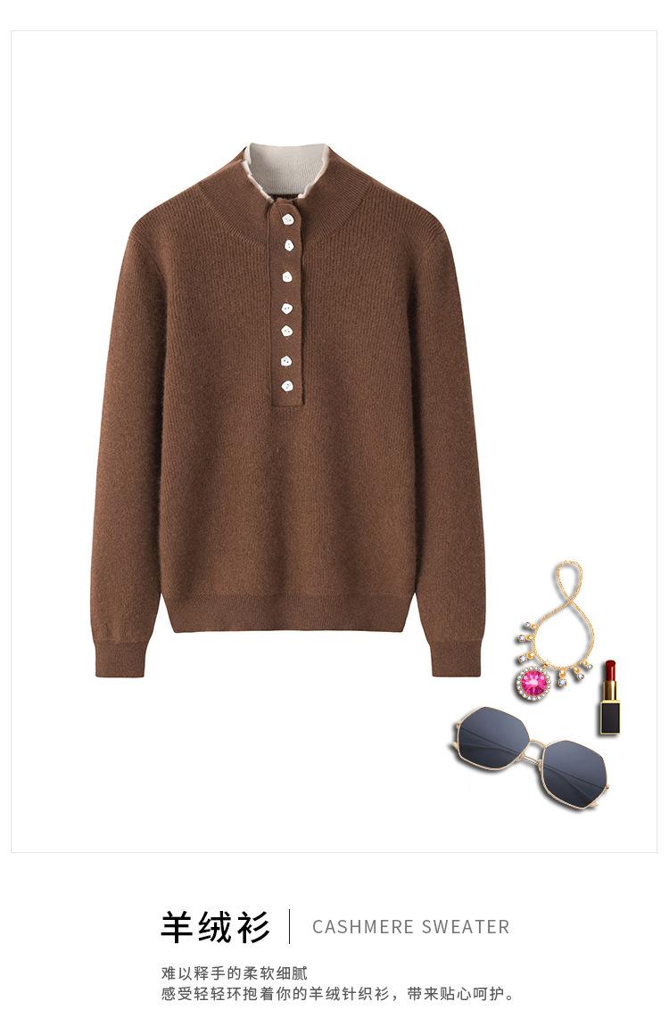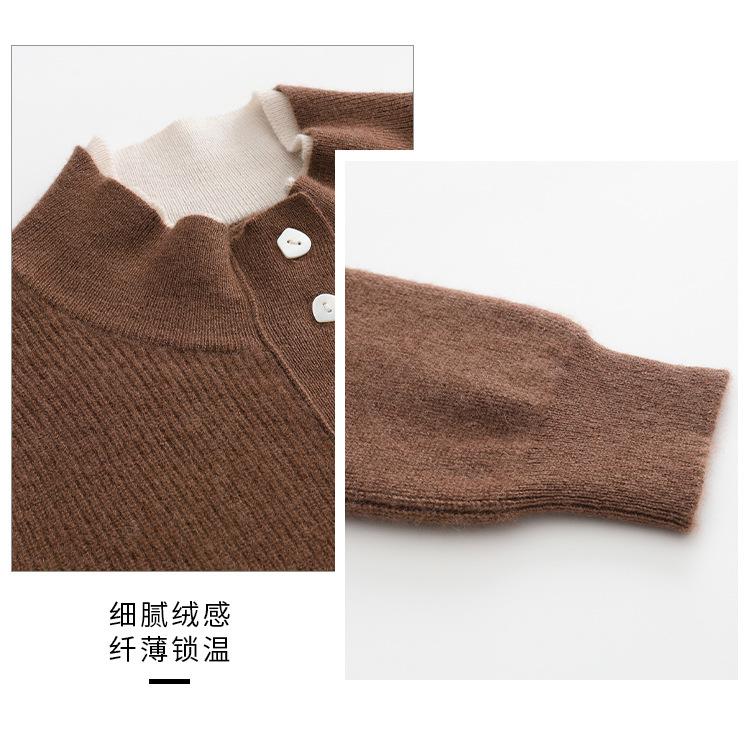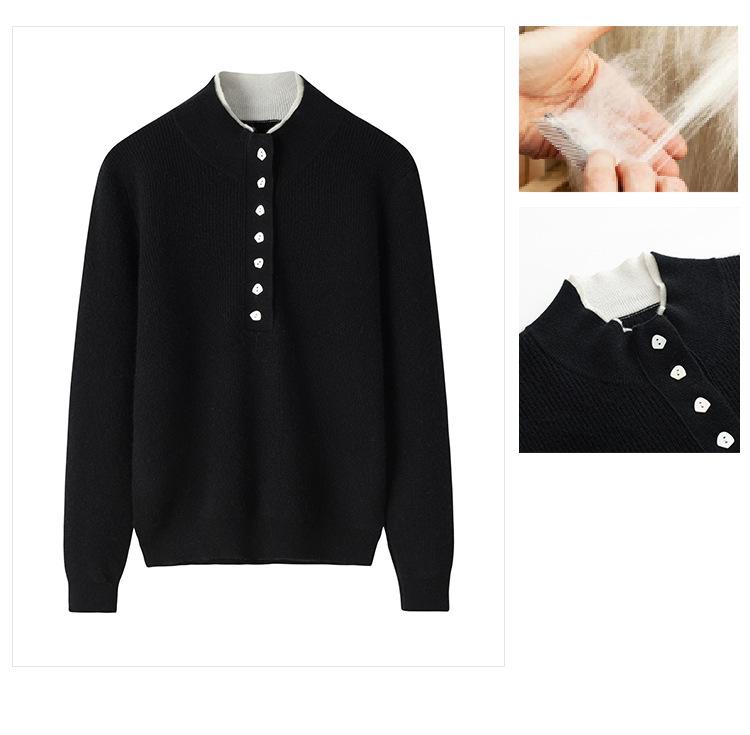 Suéter de Cachemira Grueso de Cuello Alto Medio para Mujer 100% Cachemira Pura Casual Cómodo Suéter de Dos Piezas Falso Ajustado Suéter de Moda