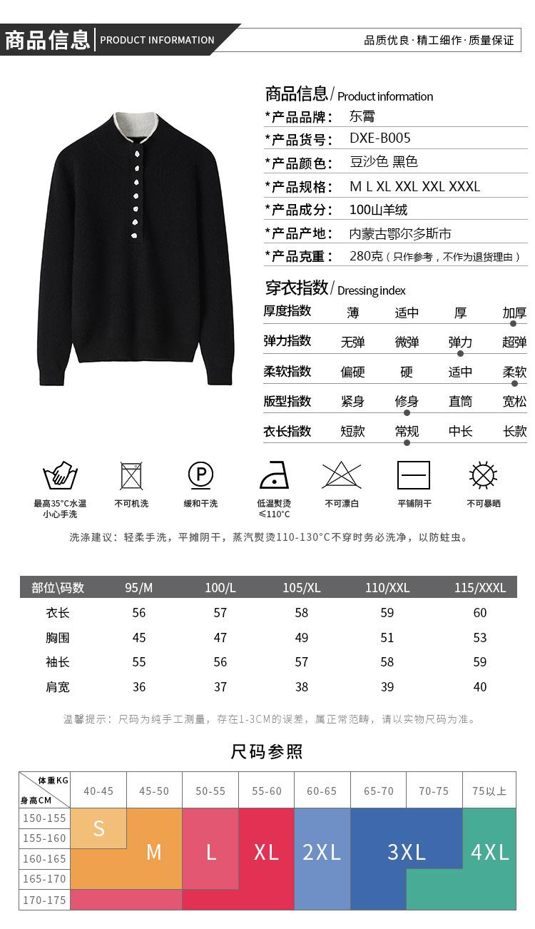 95/M, 100/L, 105/XL, 110/XXL, 115/XXXL