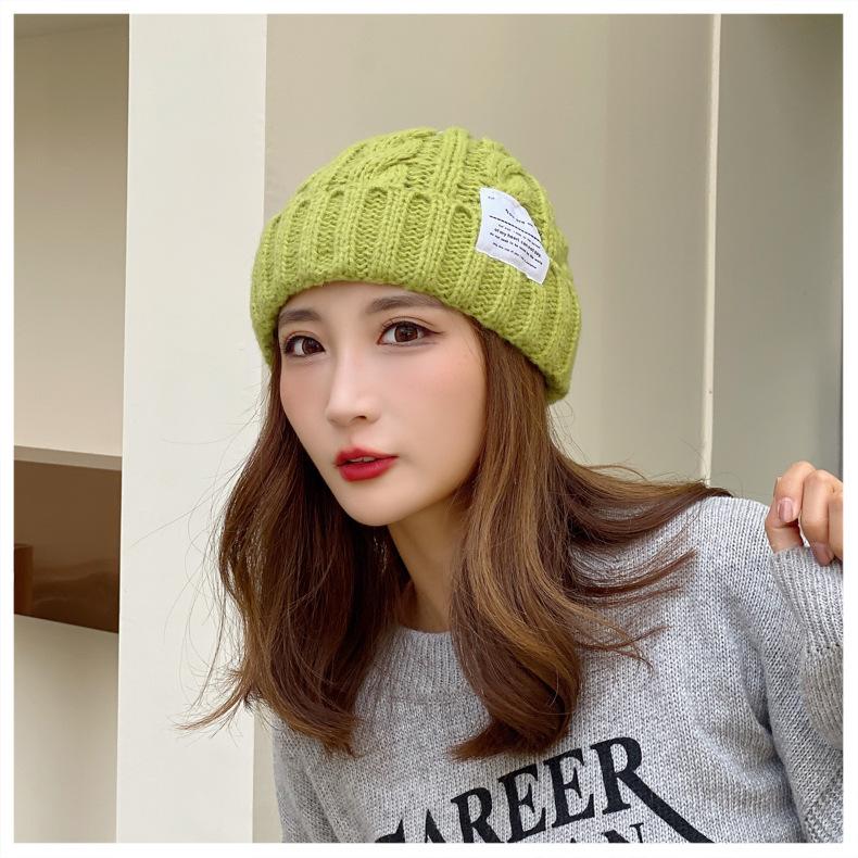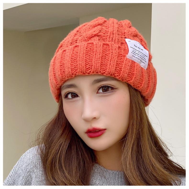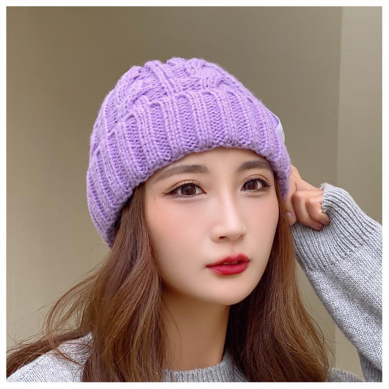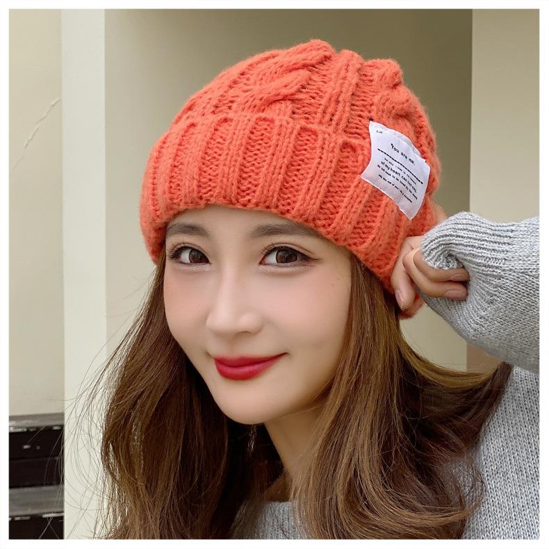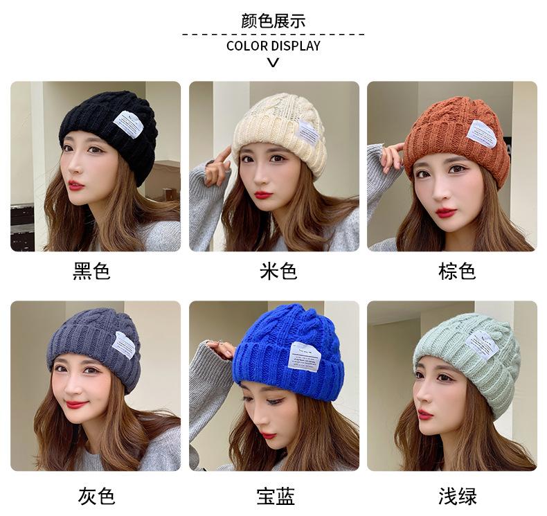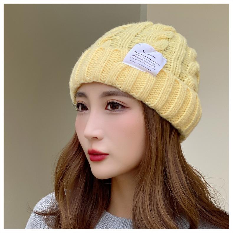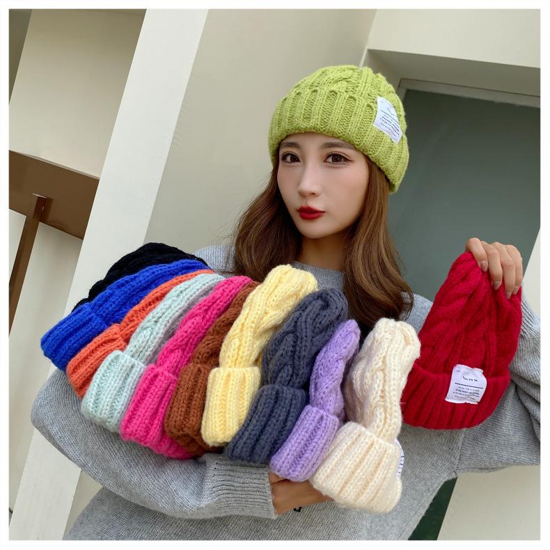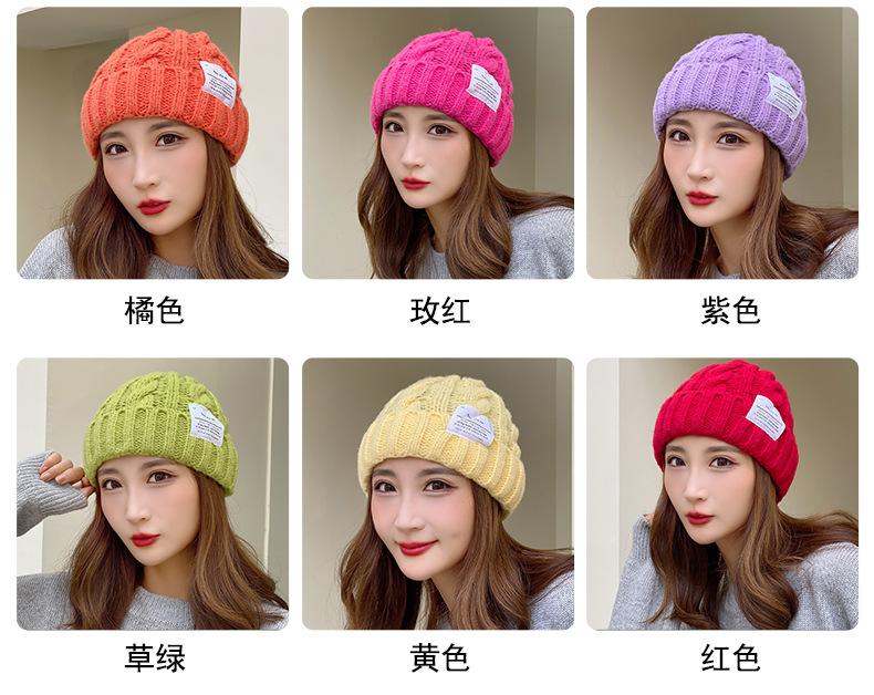 Gorro de mujer para otoño e invierno, nuevo gorro de punto en color caramelo, informal, cálido, de lana, con puntera para exteriores que combina con todo, a la moda.