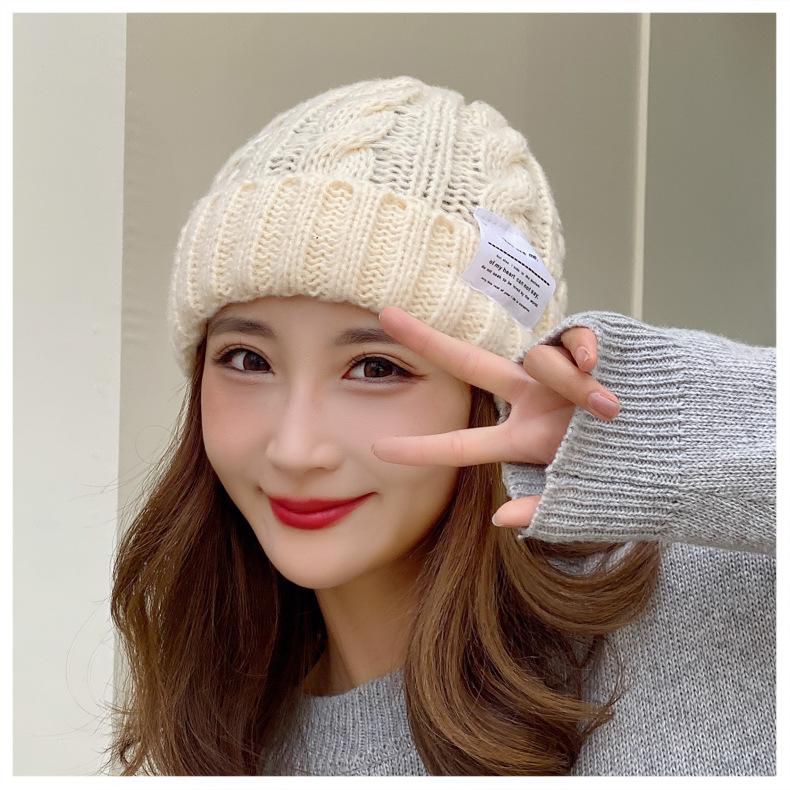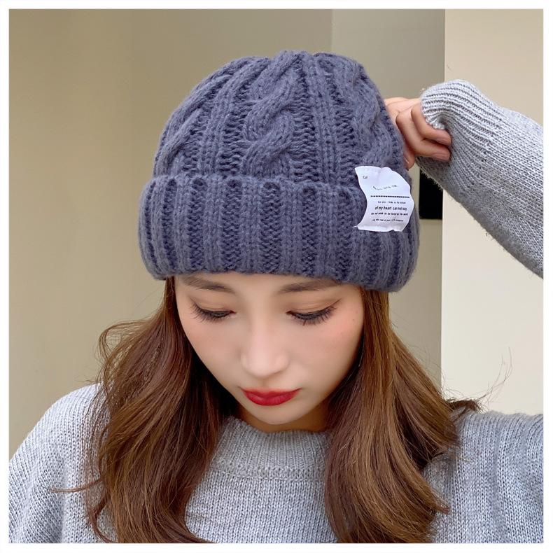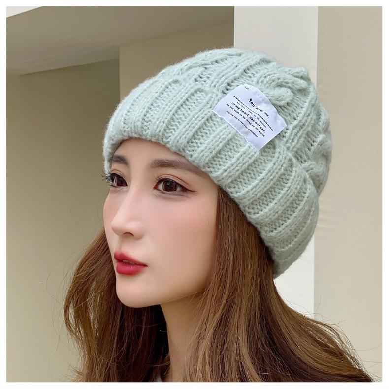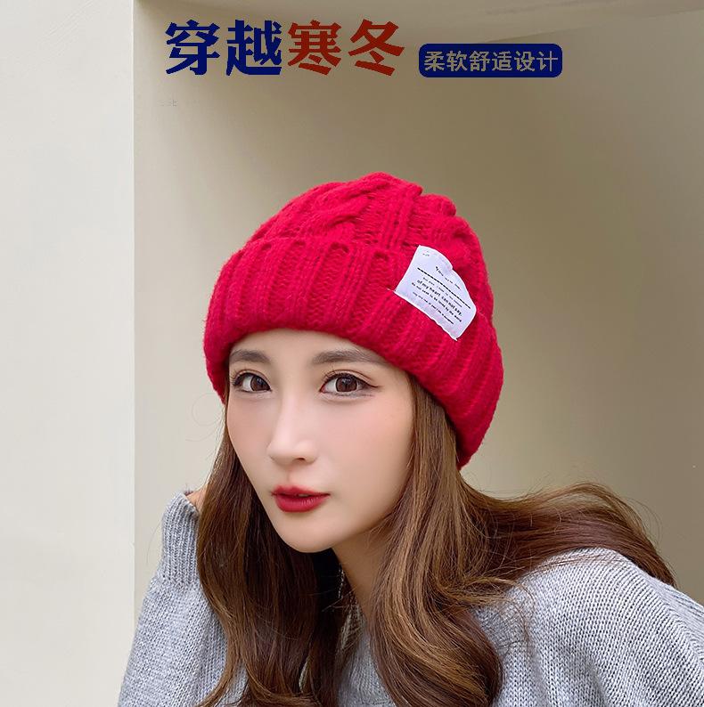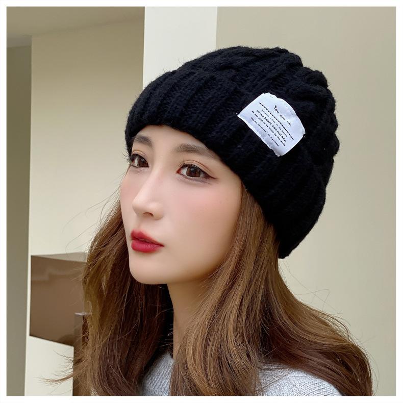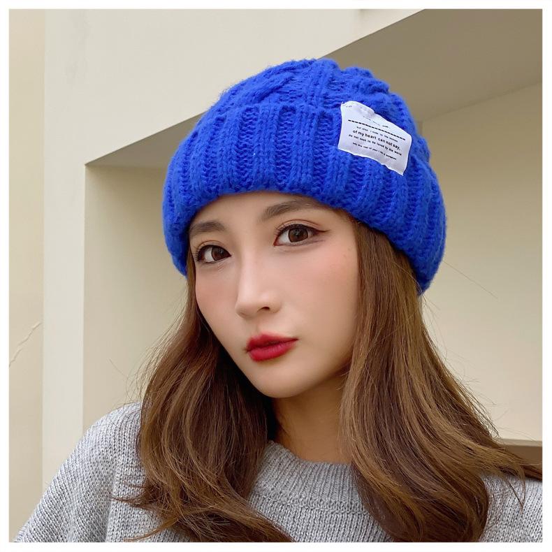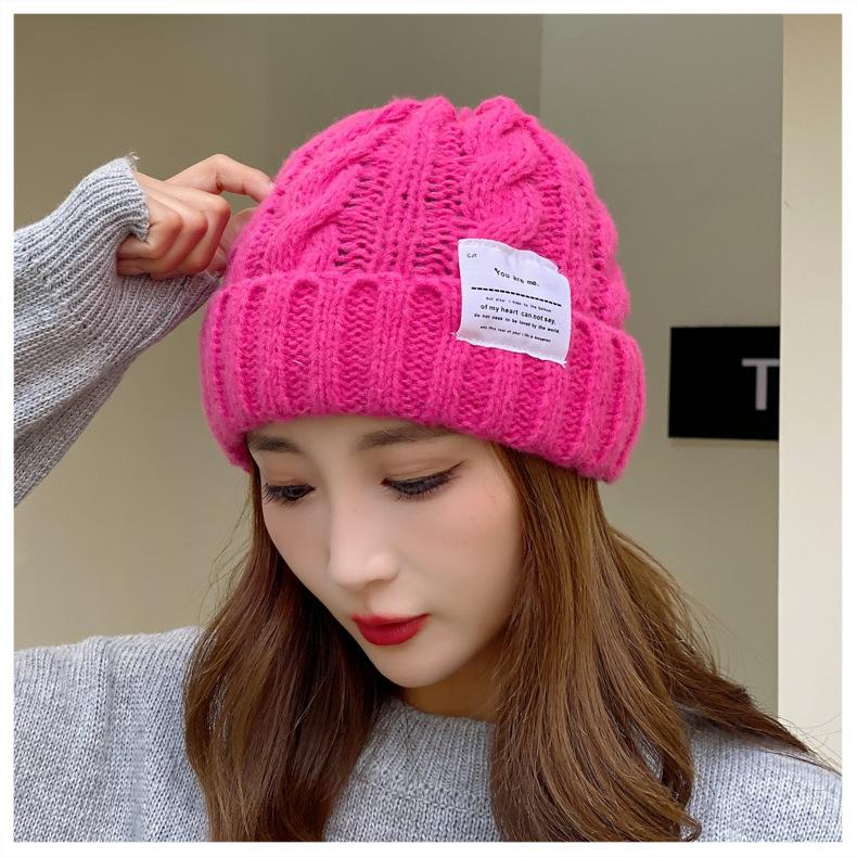 Gorro de mujer para otoño e invierno, nuevo gorro de punto en color caramelo, informal, cálido, de lana, con puntera para exteriores que combina con todo, a la moda.
