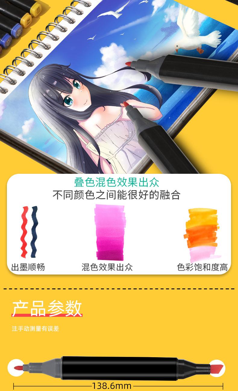 Bolsa Rotulador de varilla negra, rotulador de acuarela doble aceitoso, rotulador de varilla cuadrada, juego de colores 24/60/120, lote