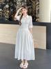 Vestido camisero coreano encantador 2024, fresco y generoso, blanco, largo hasta la rodilla, de manga corta.