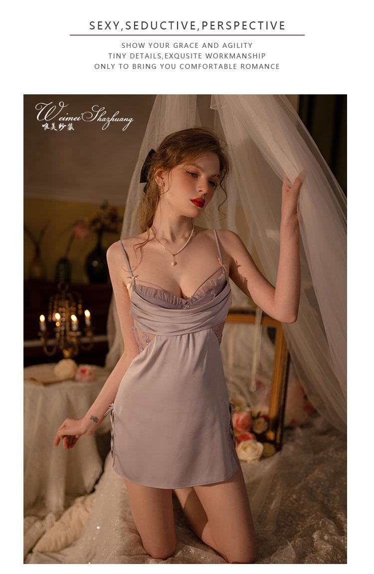 Hermoso conjunto de camisón sexy con tirantes de hilo y perspectiva de encaje. Camisón sexy Pure Desire Advanced para mujer.