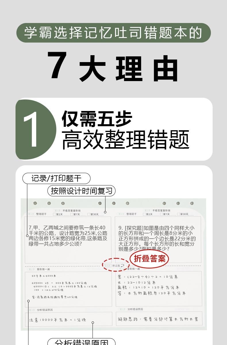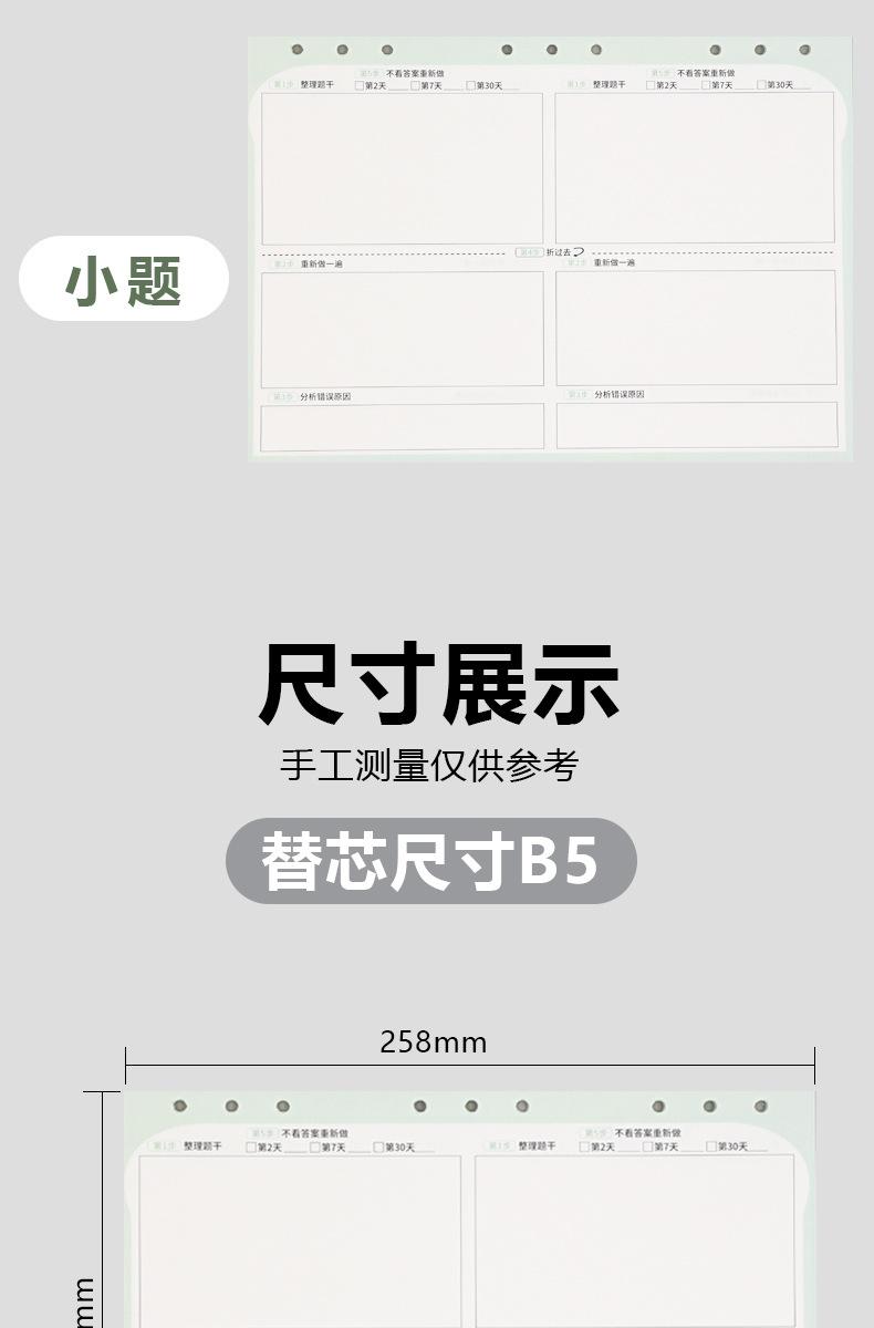 Memory Toast Pregunta Incorrecta Cinco Pasos Corrección de Errores del Estudiante Engrosado Libro de Corrección de Preguntas Incorrectas B5 Libro de Hojas Sueltas Removible y No Lastima la Mano