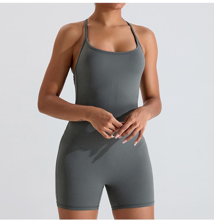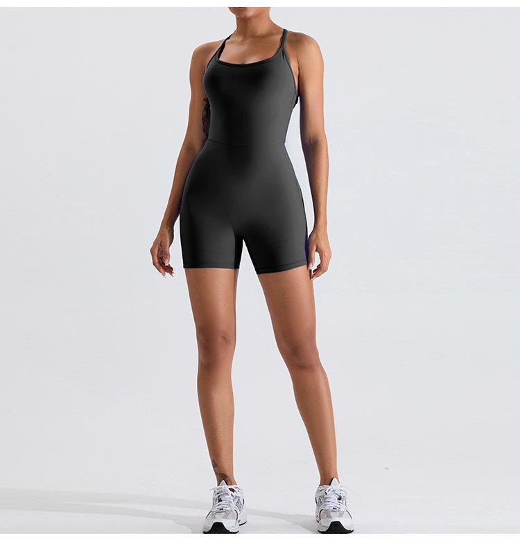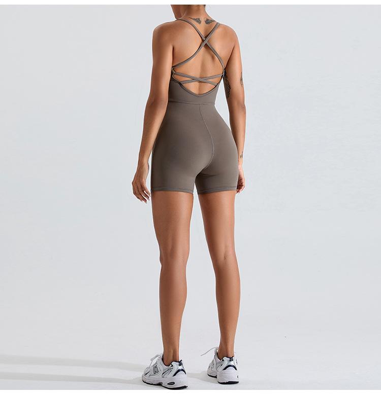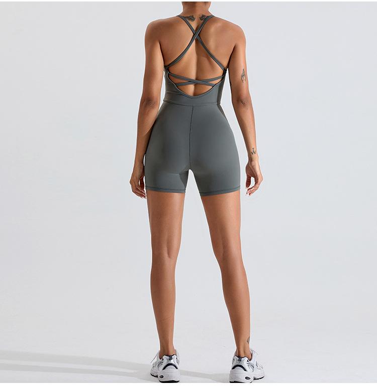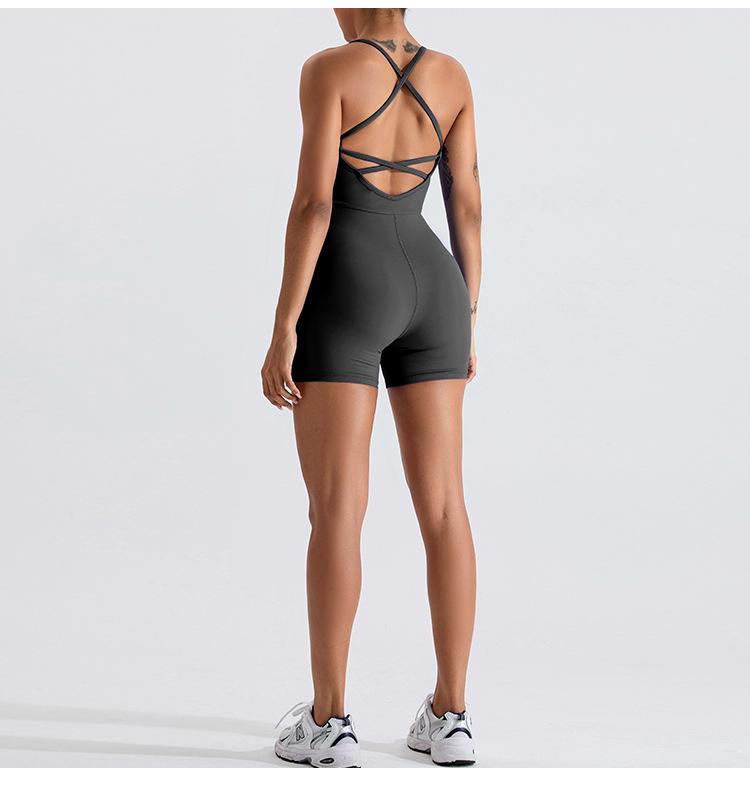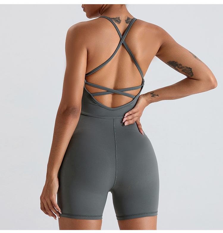 Mono de yoga transfronterizo para mujer, nuevo, con espalda cruzada hueca, ajustado, adelgazante, levantamiento de cadera, ropa deportiva de una pieza para fitness