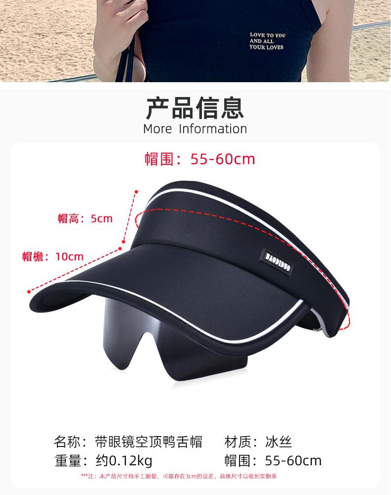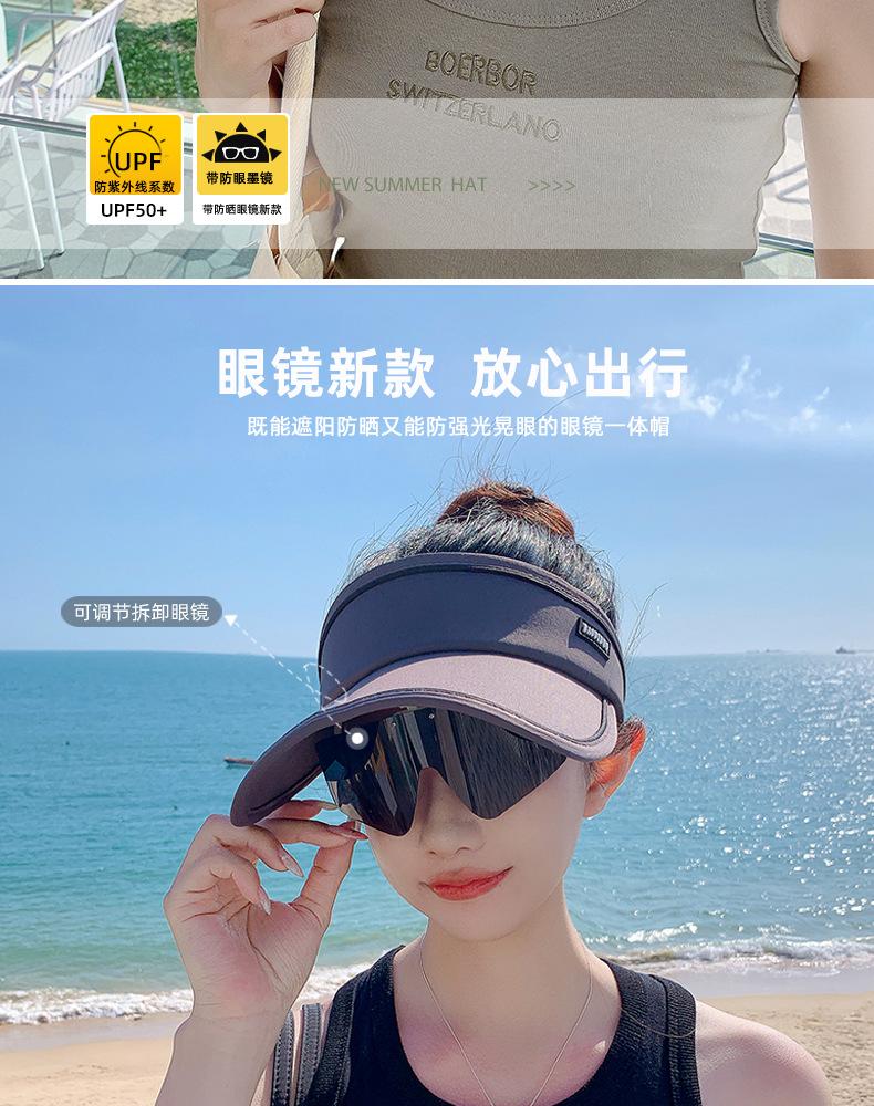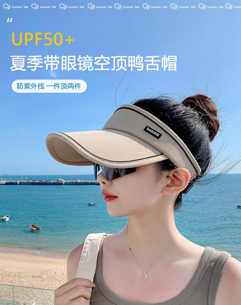 9244 Sombrero de Sol de Verano con Protección UV con Gafas de Sol Sombrero de Protección Solar para Mujer Viaje al Aire Libre Lengua de Pato Parte Superior Vacía Gorra de Béisbol