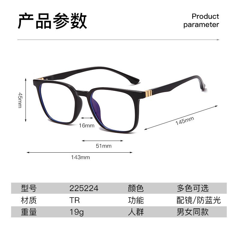 Nuevas gafas de montura grande TR, gafas planas unisex, gafas para ordenador, gafas antiazules 225