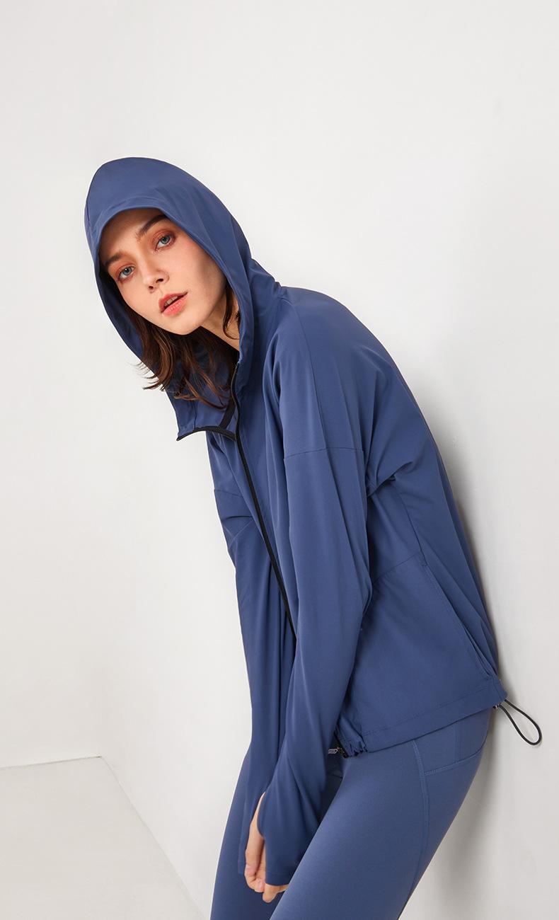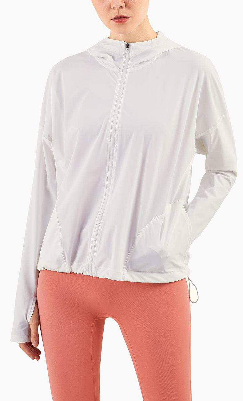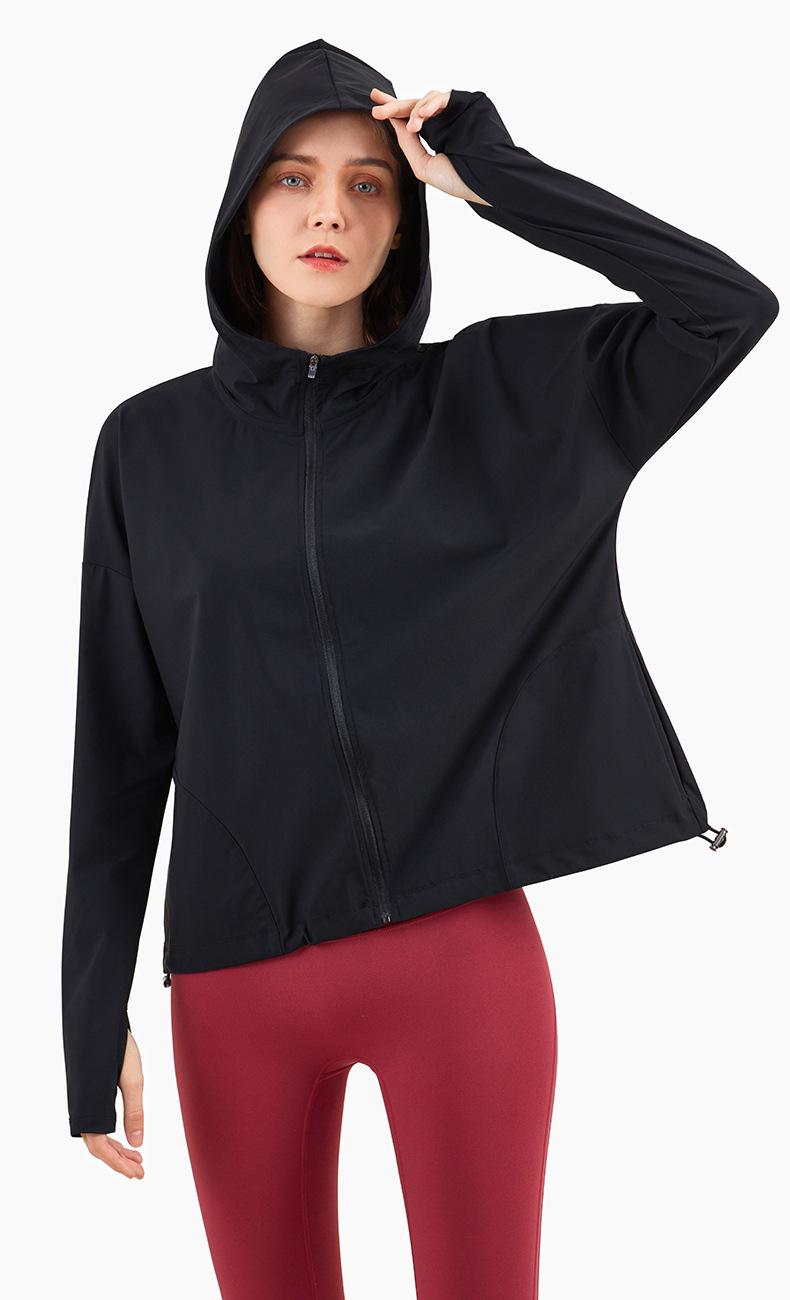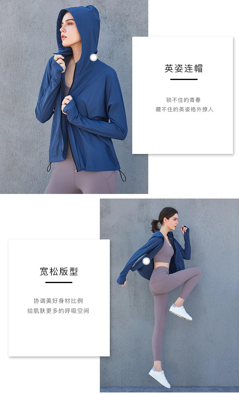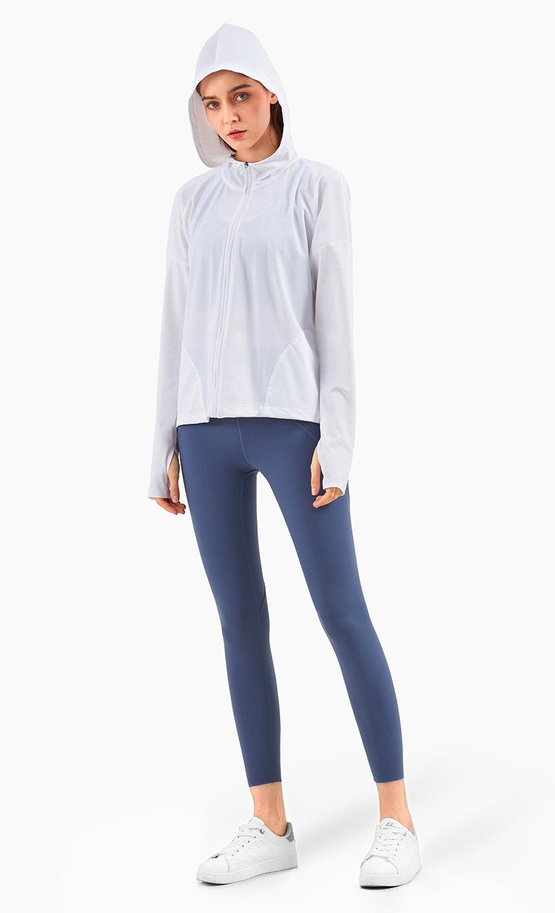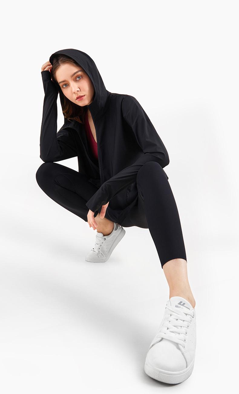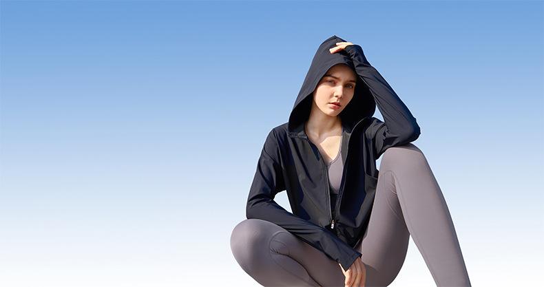 Ropa de Protección Solar Fresca de Verano con Cremallera Holgada con Capucha Ropa de Fitness para Mujer Transfronteriza Ligera Transpirable Chaqueta para Correr Protección Solar