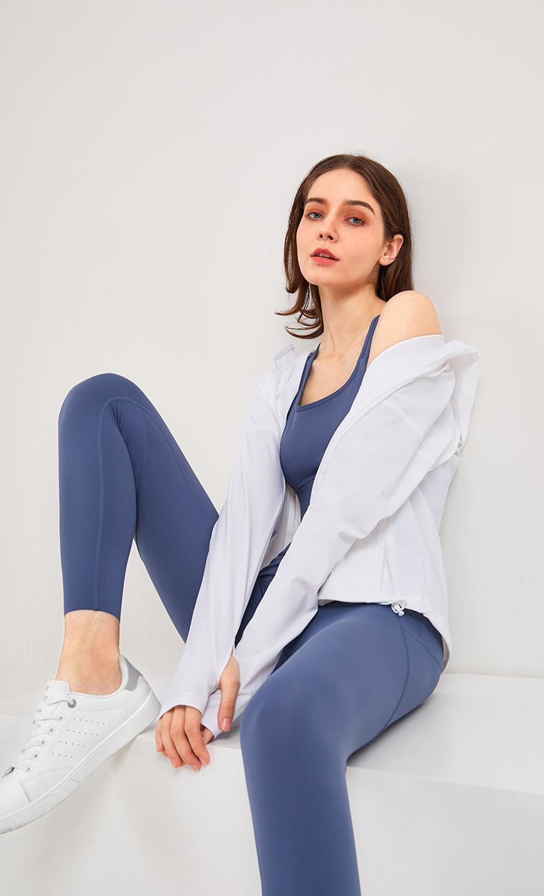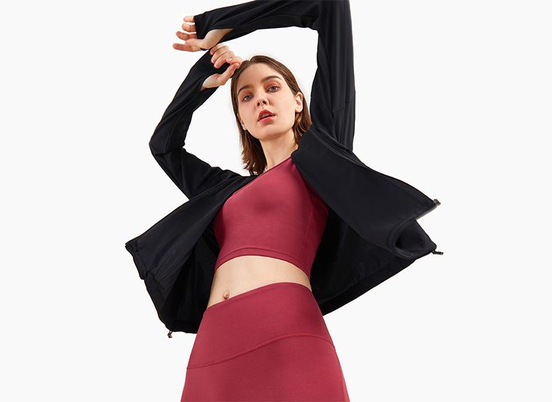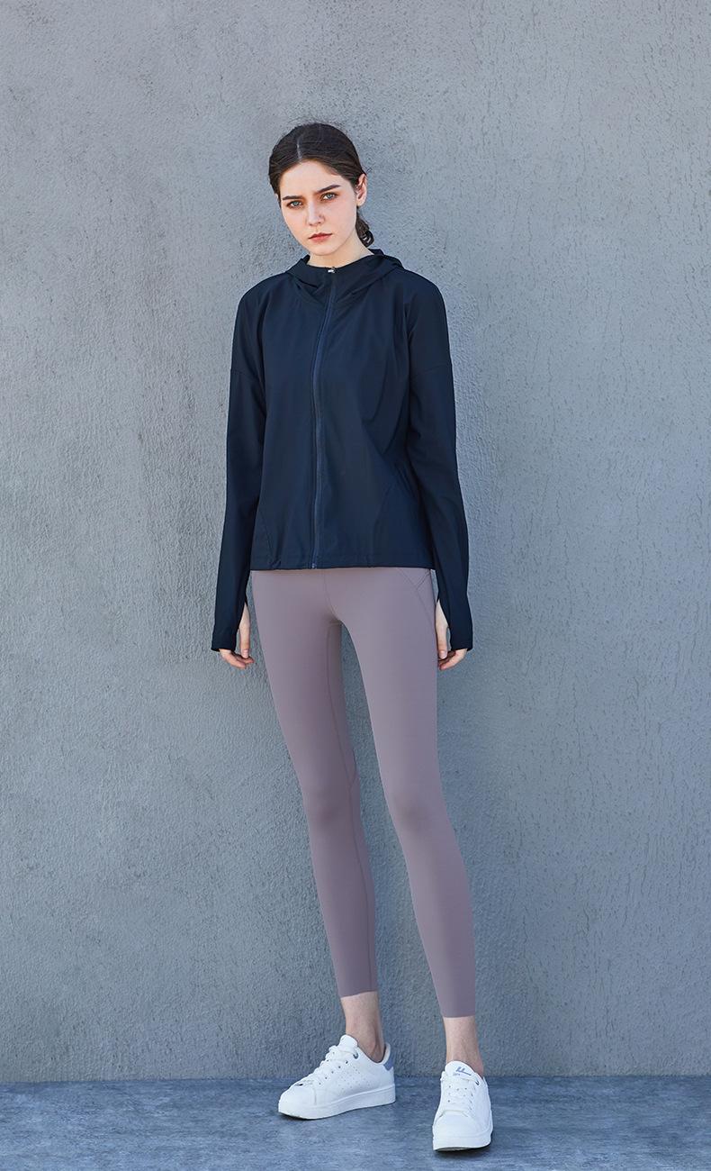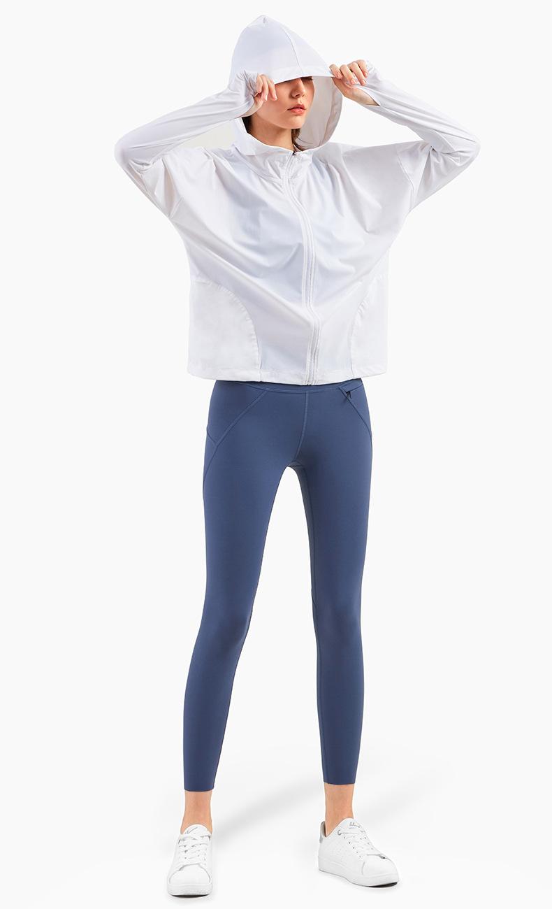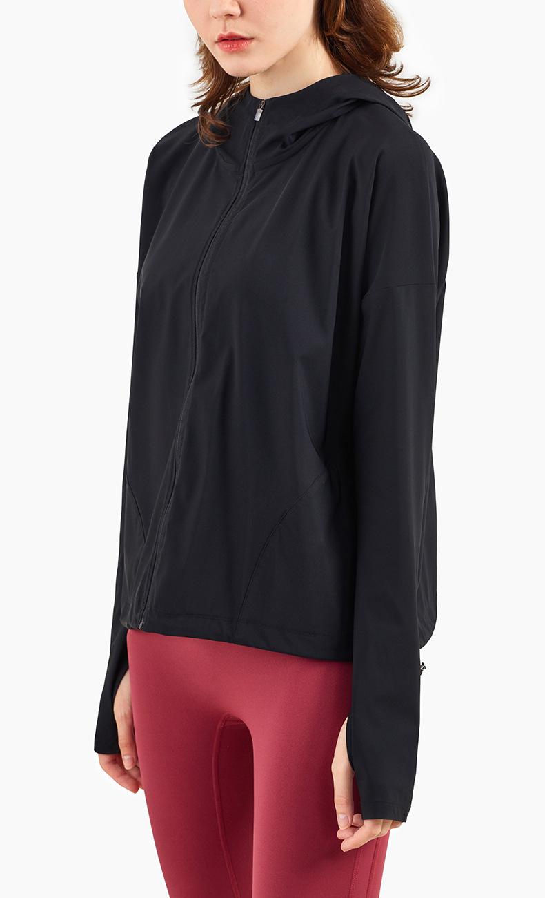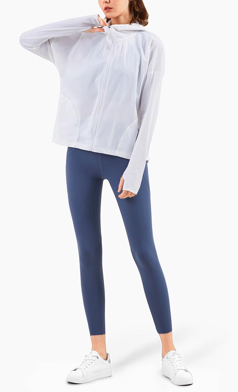 Ropa de Protección Solar Fresca de Verano con Cremallera Holgada con Capucha Ropa de Fitness para Mujer Transfronteriza Ligera Transpirable Chaqueta para Correr Protección Solar