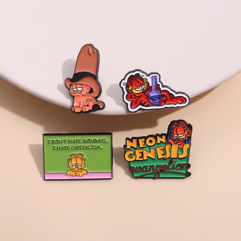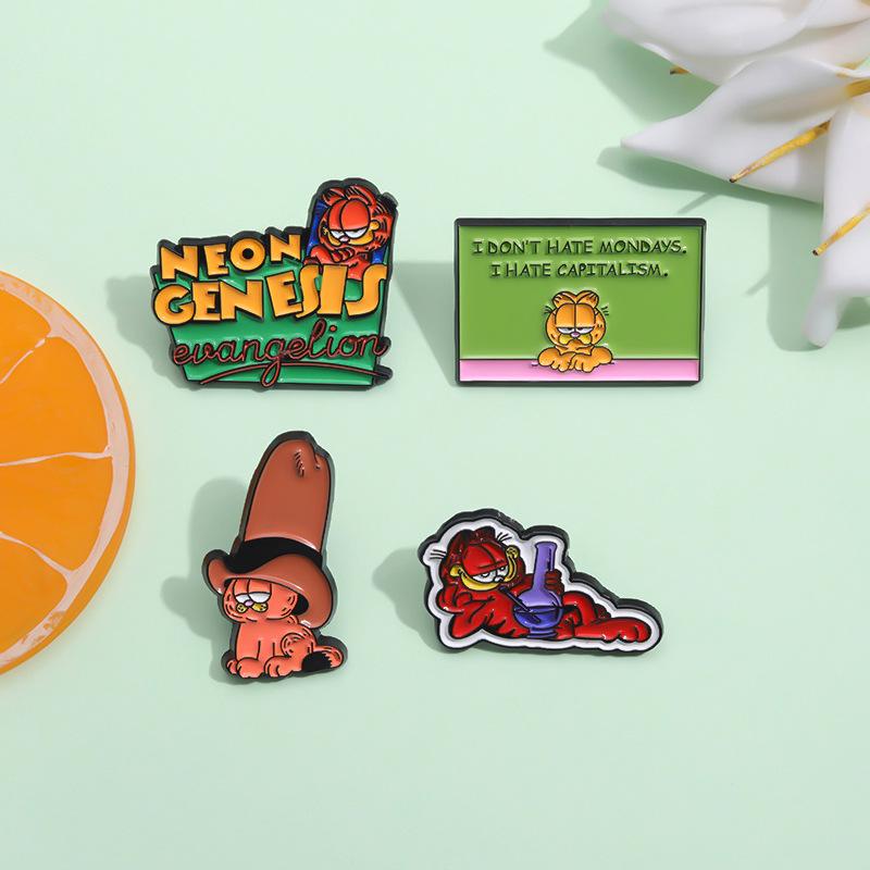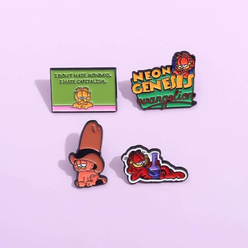 Broche de gatito de mezclilla de dibujos animados anime accesorios periféricos personaje personalizado gato naranja héroe geométrico pin para bolsa