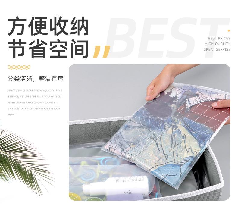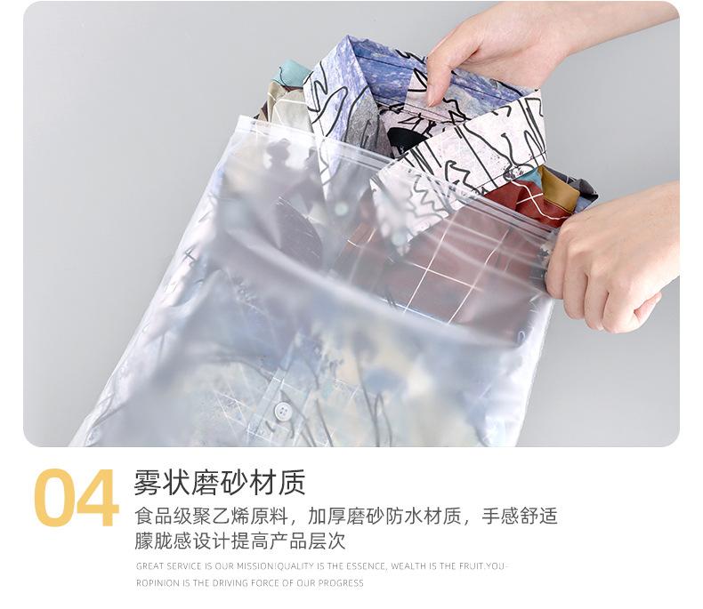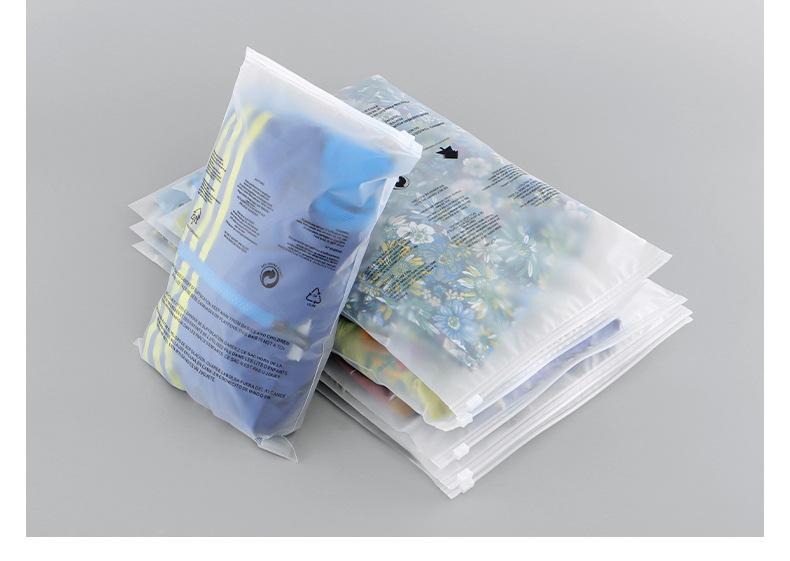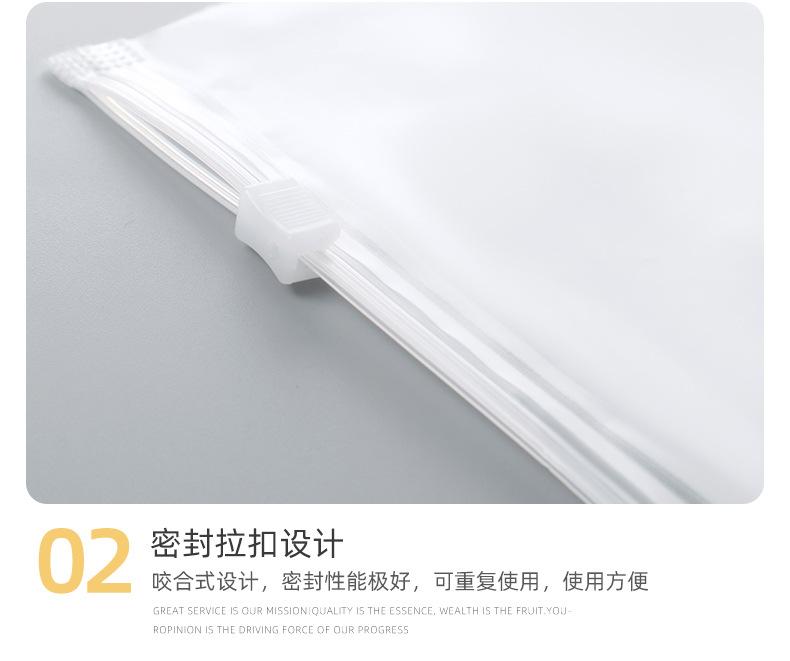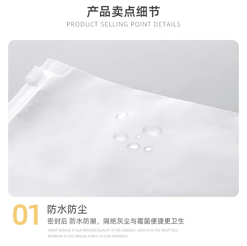 Bolsa de plástico esmerilado con cremallera de doble cara y alta permeabilidad para ropa, resistente al polvo y al polvo, para el hogar, con correa de goma.