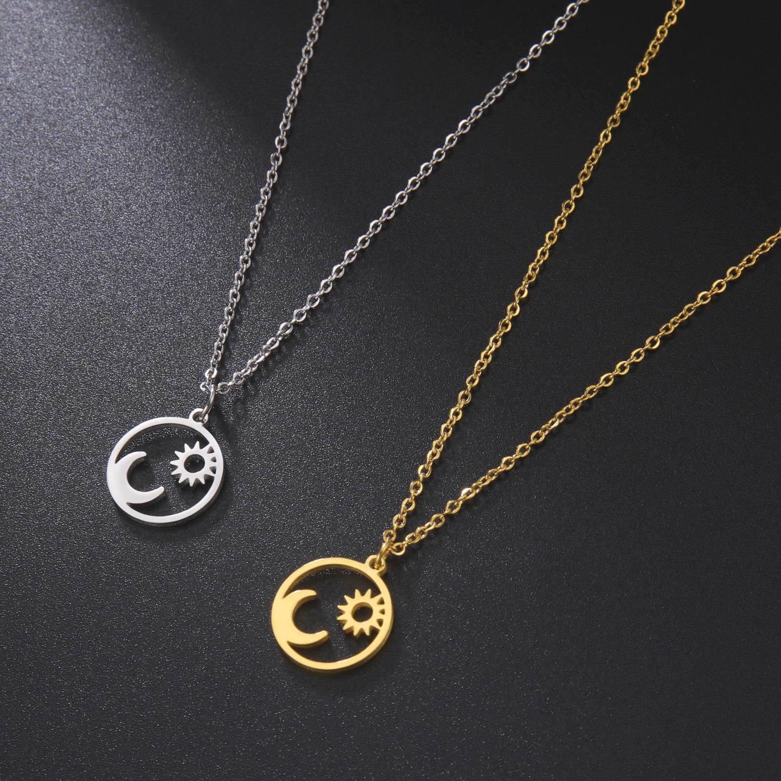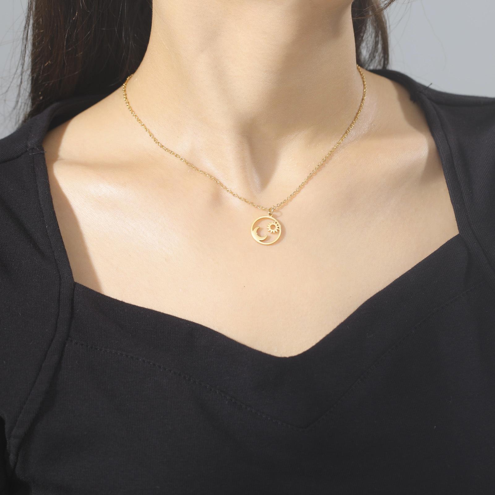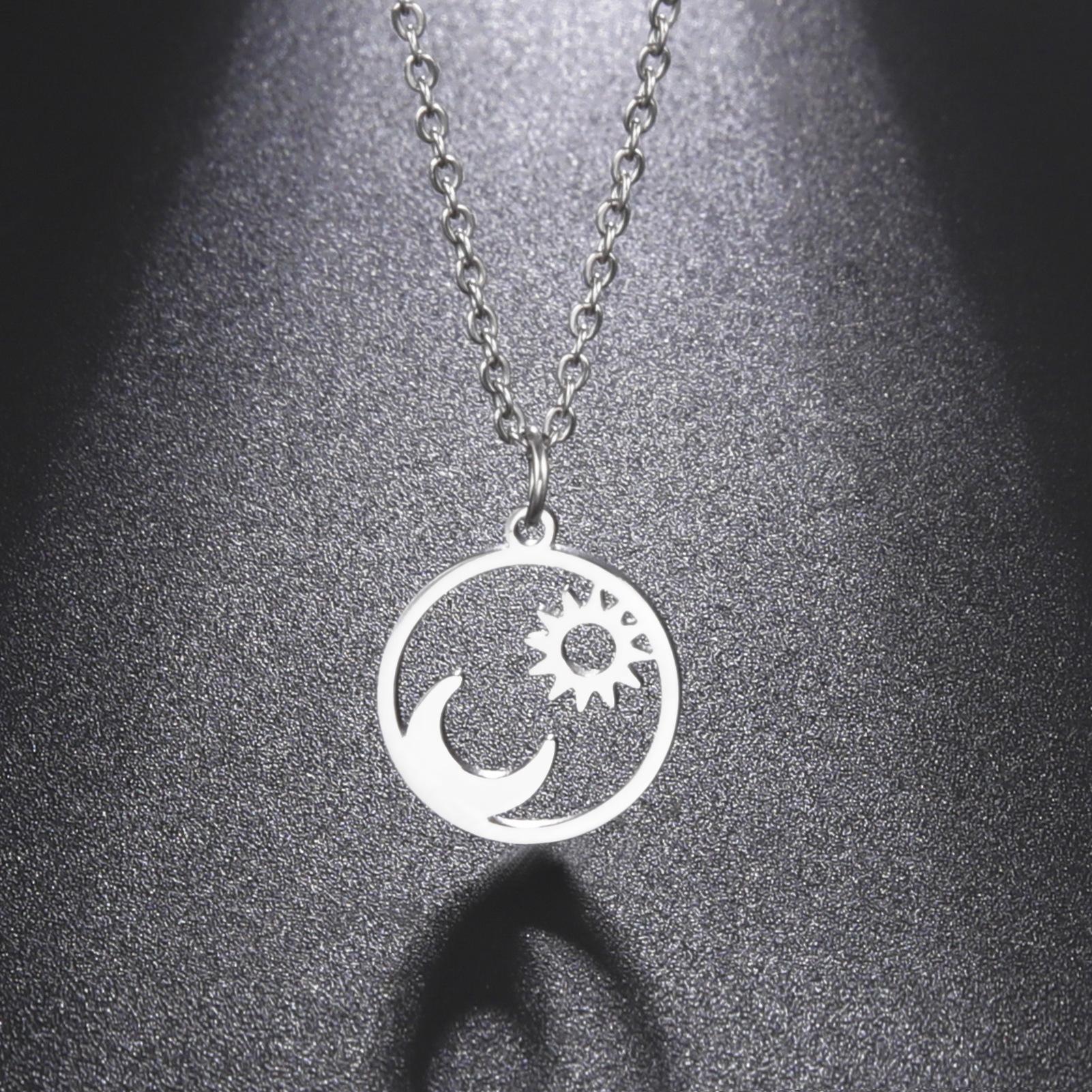 Yiwu Jewelry - Anillo hueco de corte para mujer, colgante de sol y luna, collar de acero inoxidable 304 de grado alimenticio
