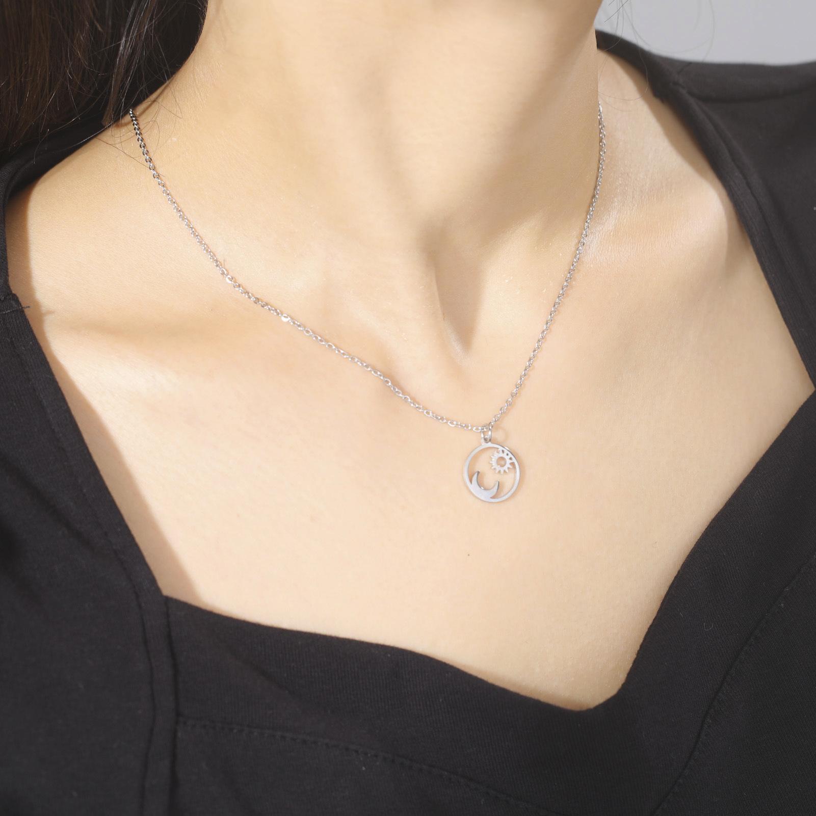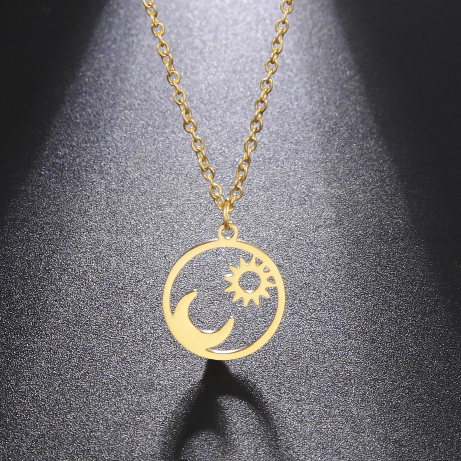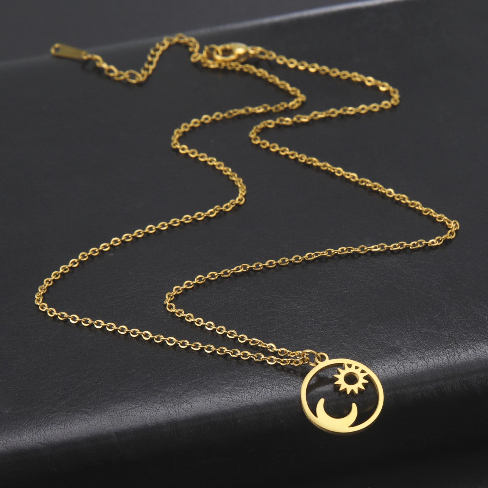 Yiwu Jewelry - Anillo hueco de corte para mujer, colgante de sol y luna, collar de acero inoxidable 304 de grado alimenticio