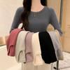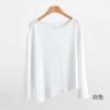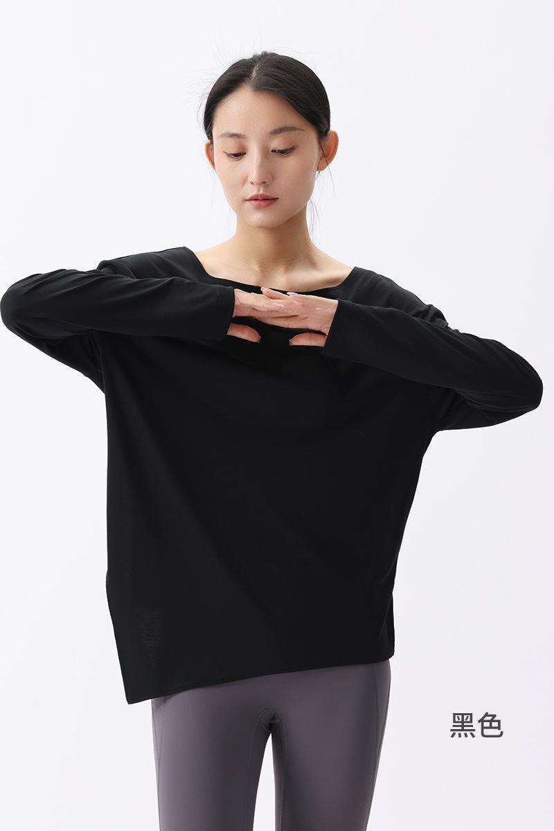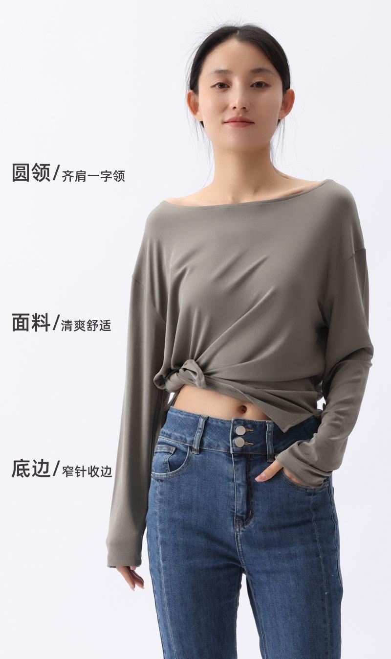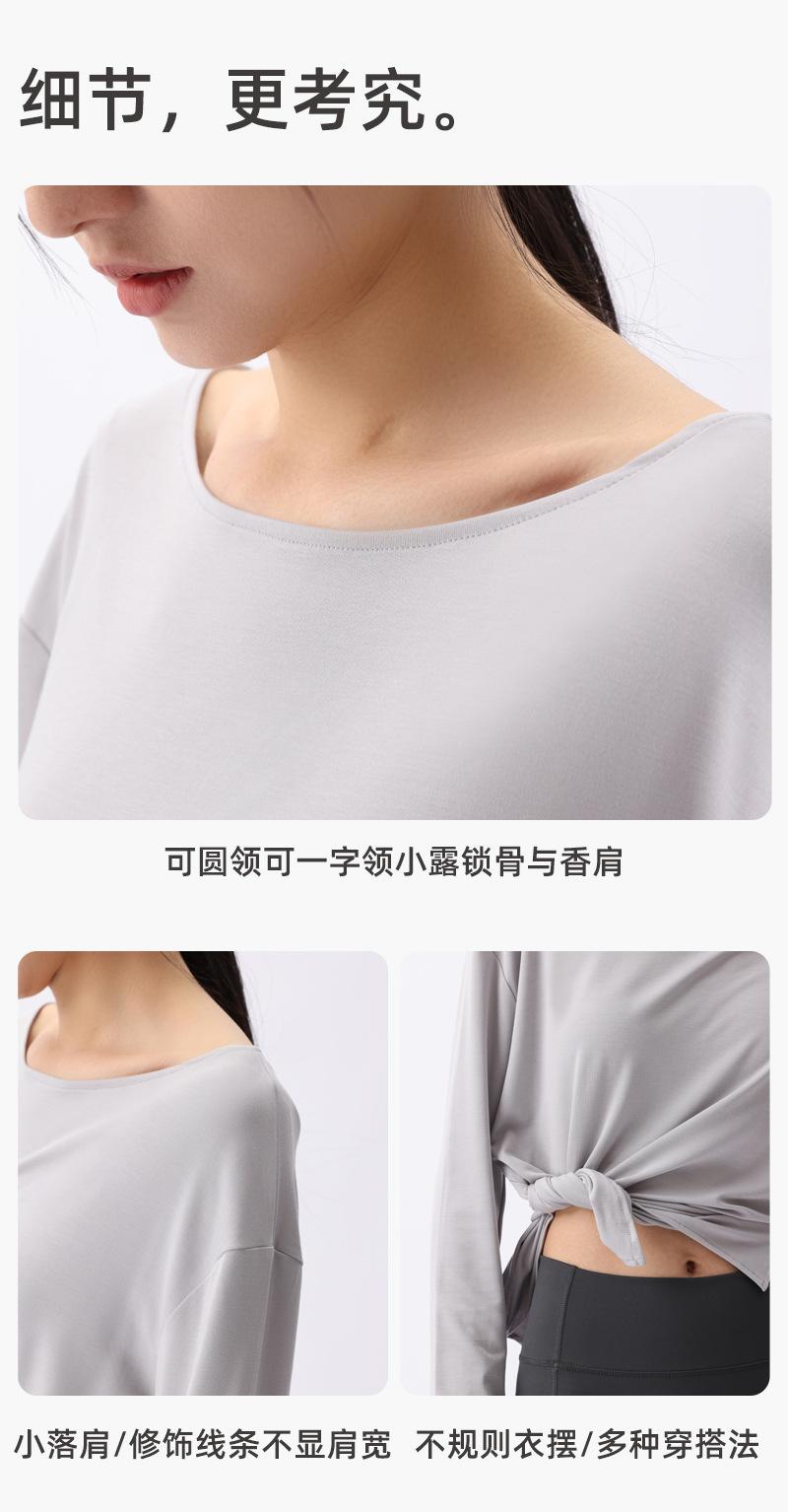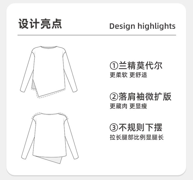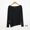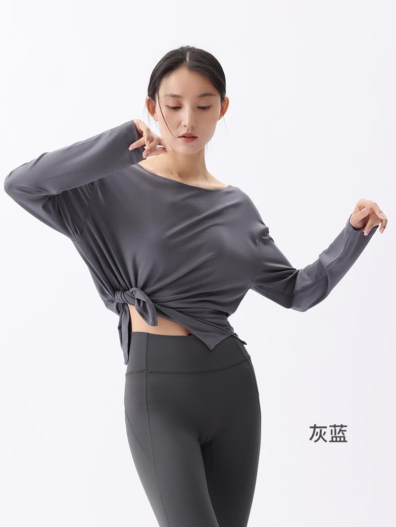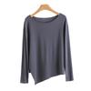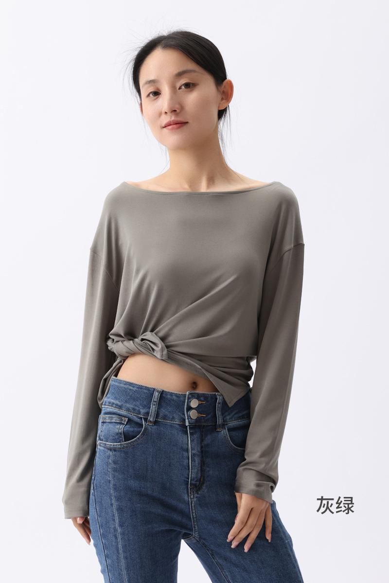 Esta es una camiseta casual de manga larga para mujer multi-escena con un diseño de abertura irregular en el dobladillo. Se ve intelectual y casual cuando se usa en momentos ordinarios, y se puede anudar al hacer ejercicio para hacerlo más deportivo.