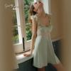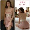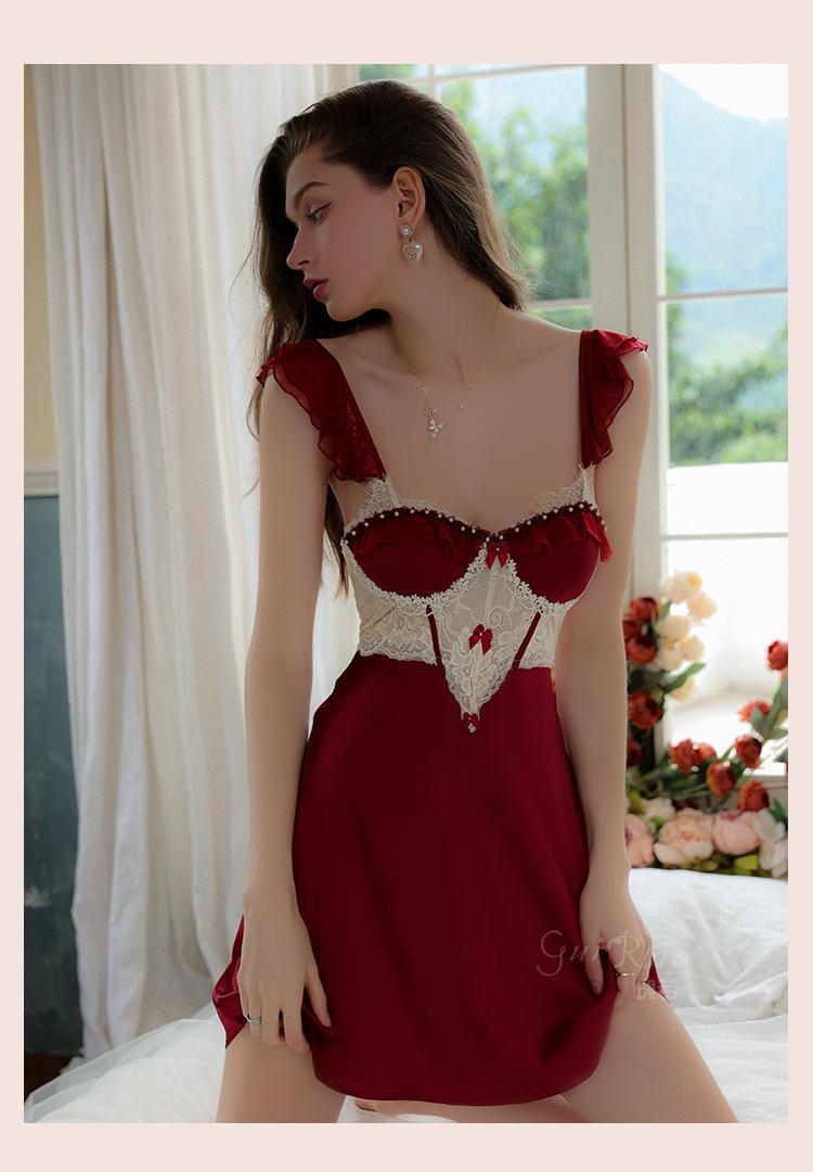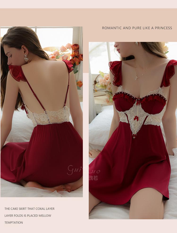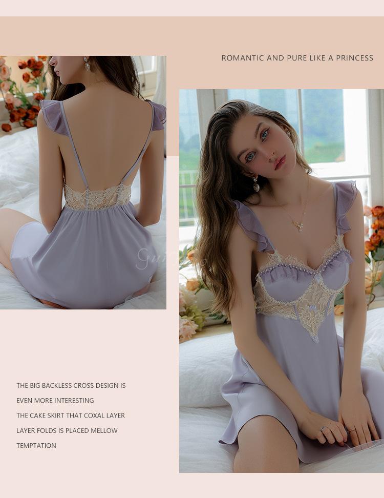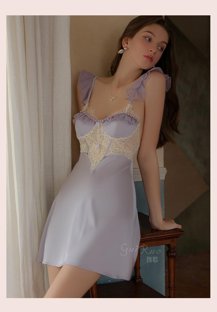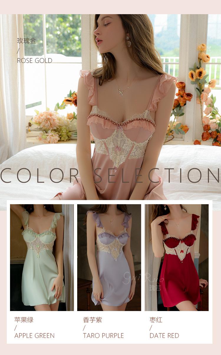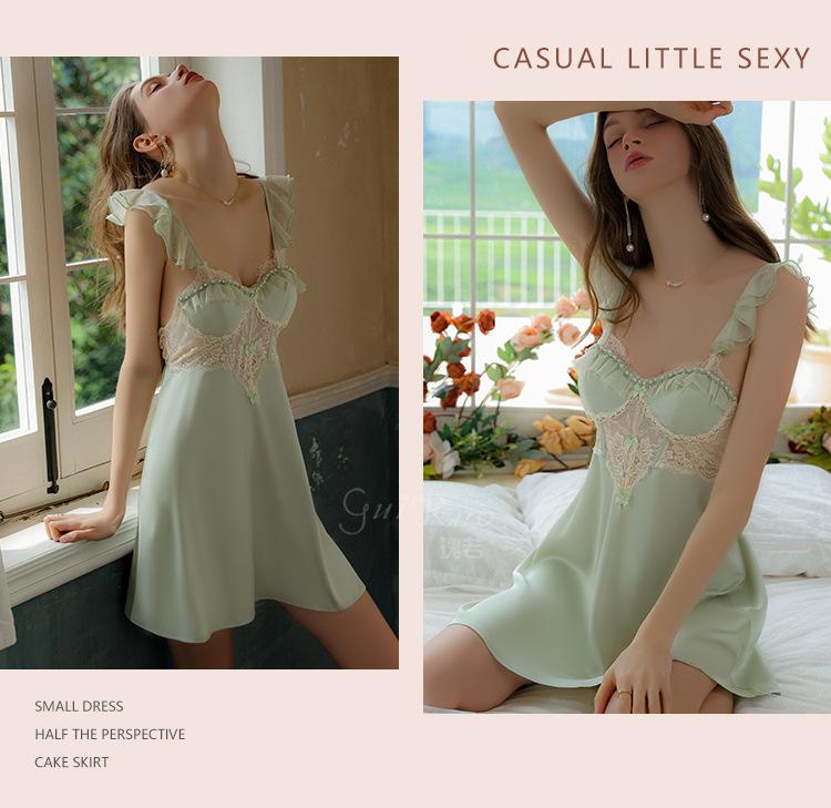 Ruoruo pijama sexy con almohadilla en el pecho manga volada de malla transparente espalda descubierta perla hielo seda tirantes camisón ropa de casa 3978