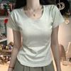 Playera de Manga Corta con Cuello en U Personalizada de Fábrica para el Hombro Derecho para Mujer Verano 2025 Nuevo Algodón Puro Slim Cuello Redondo Bajo