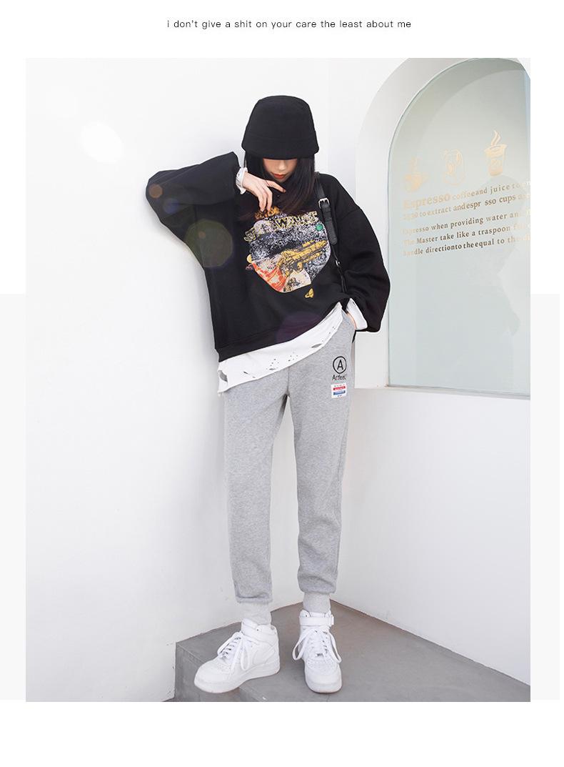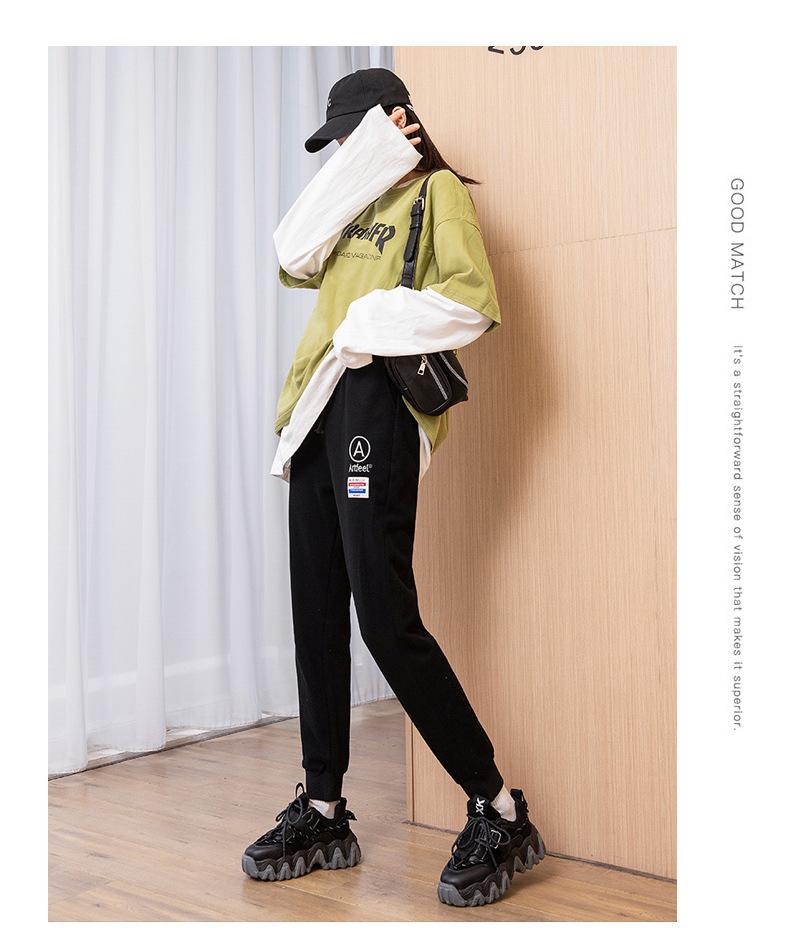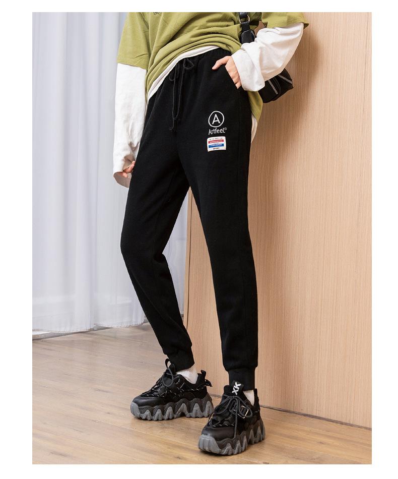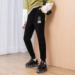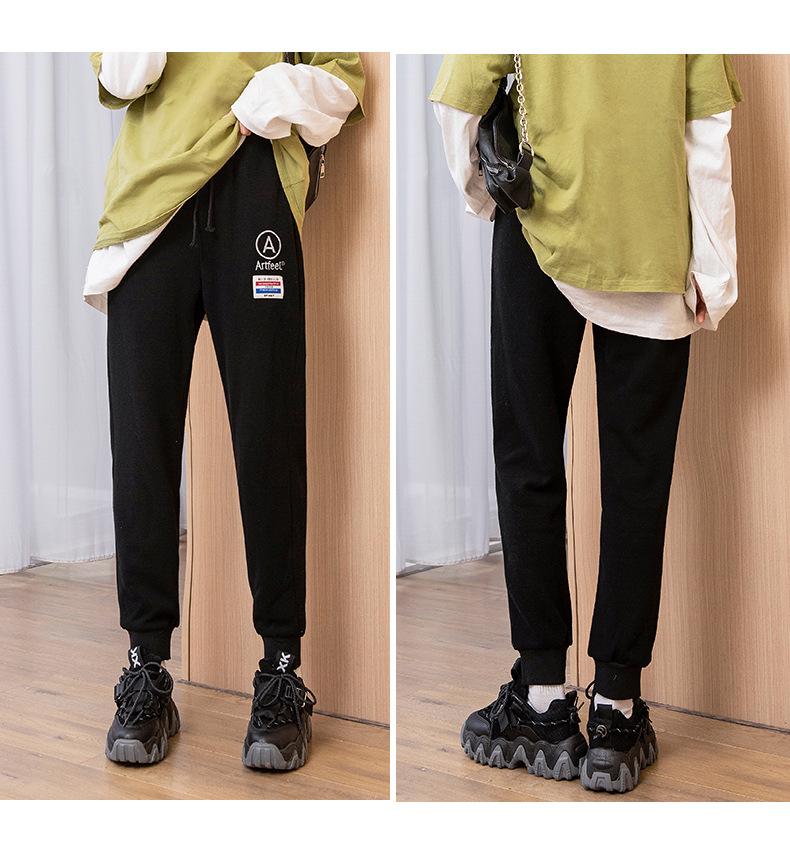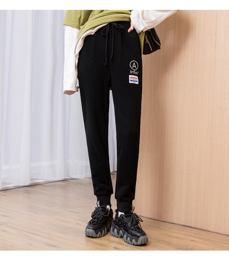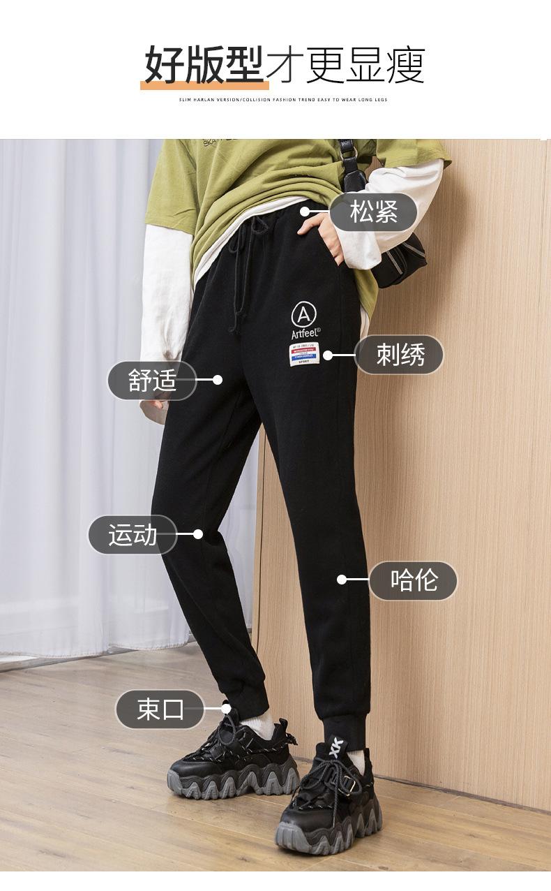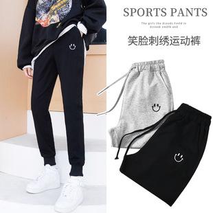 Pantalones deportivos bordados con cara sonriente de talla grande Jin 200 para mujer, nuevo estilo, pantalones deportivos casuales tipo harén de cintura alta con puños de zanahoria y otoño.