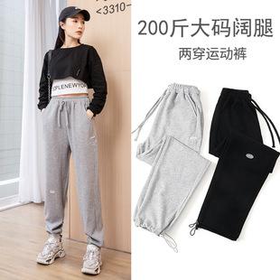 Pantalones deportivos de talla grande para mujer, otoño, nuevos, bordados, 200 catties, puños sueltos, cintura alta, pantalones casuales tipo harén de talla grande MM