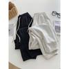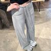Pantalones deportivos de cintura alta, rectos, grises, de pierna ancha, para mujer, de otoño, de algodón a rayas, informales, con puños