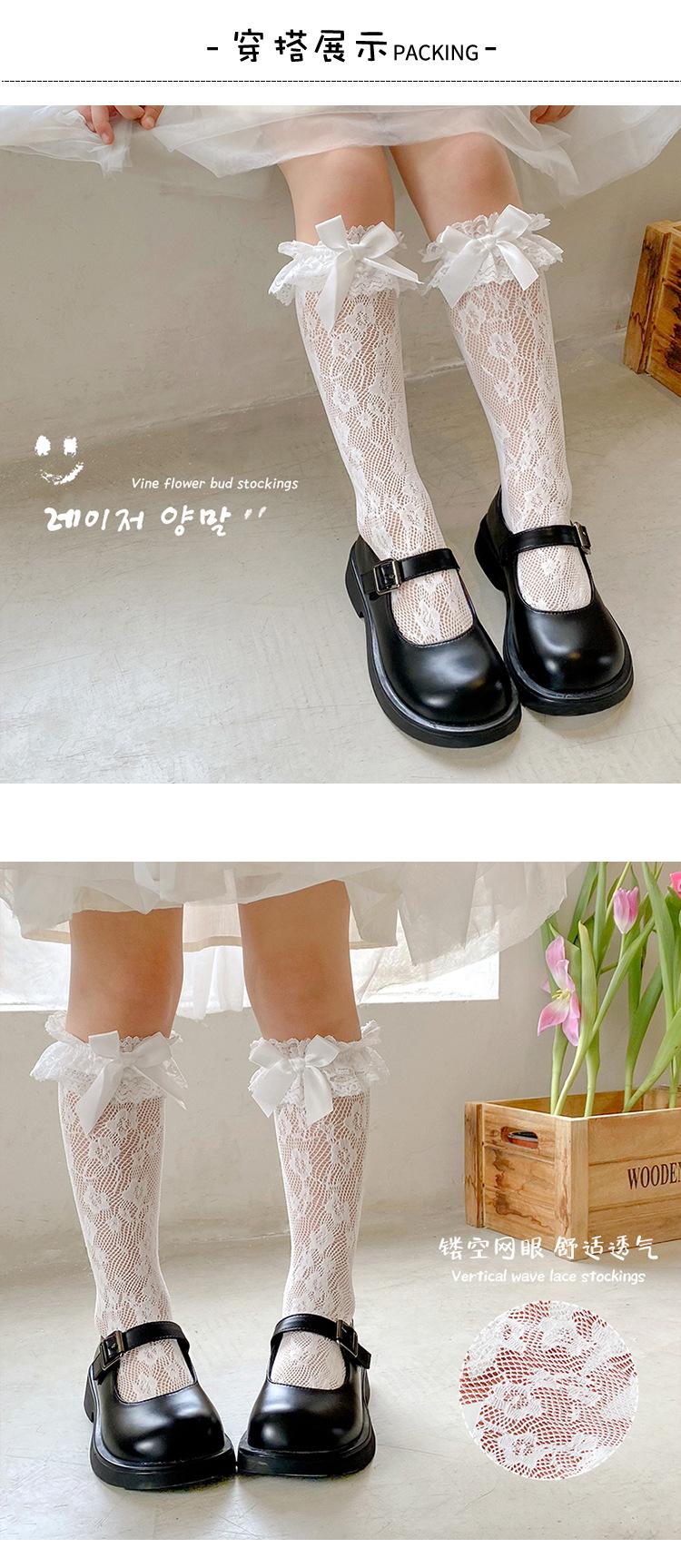 1408 calcetines para niños al por mayor, calcetines de malla con lazo de encaje Lolita hasta media pantorrilla, calcetines finos de princesa de verano