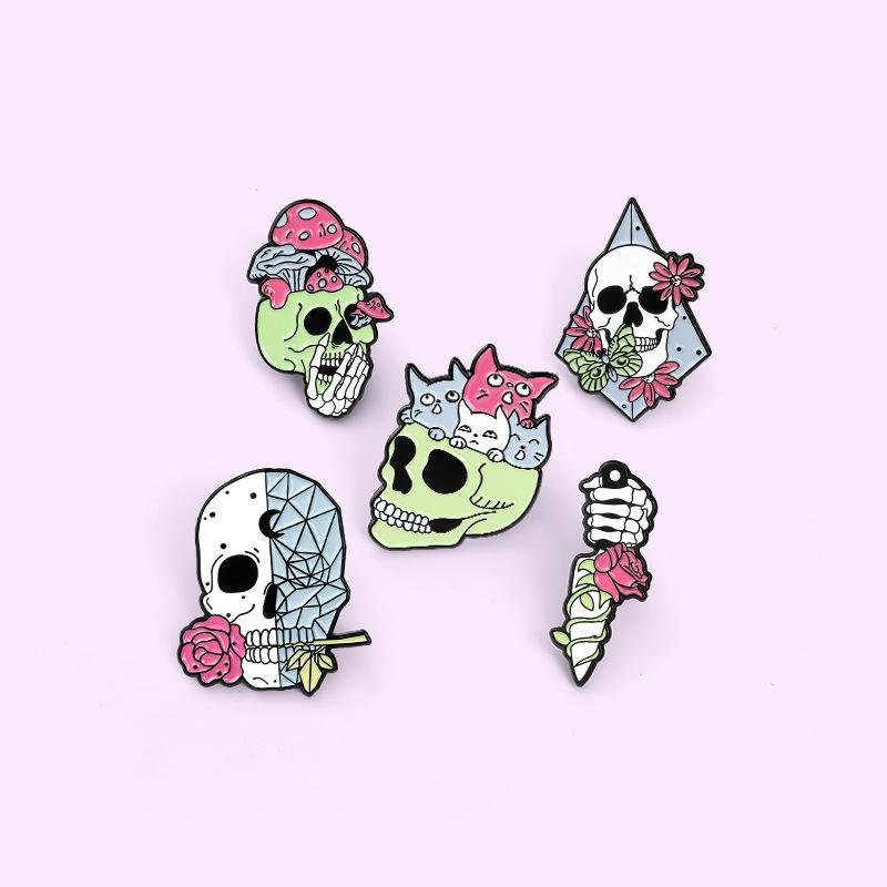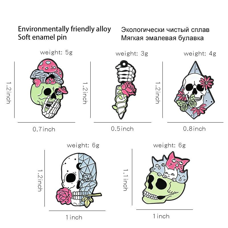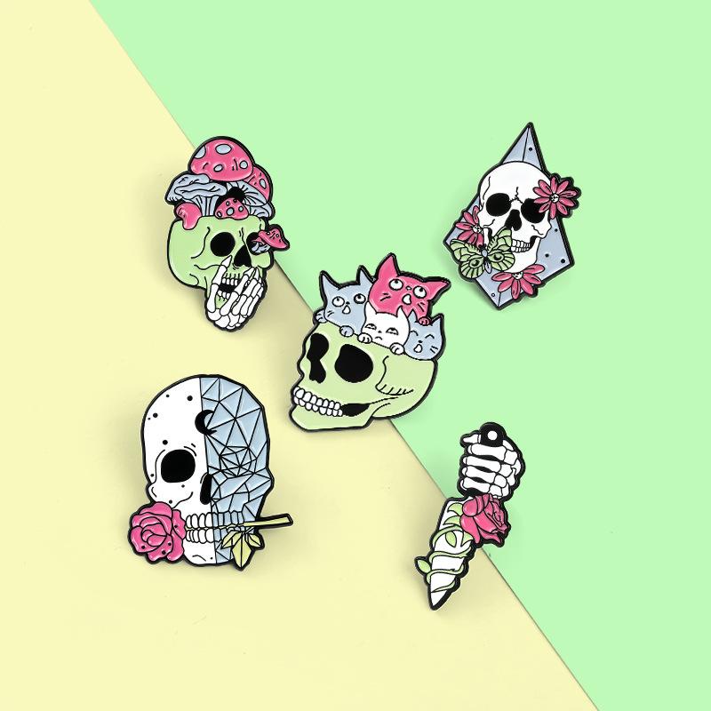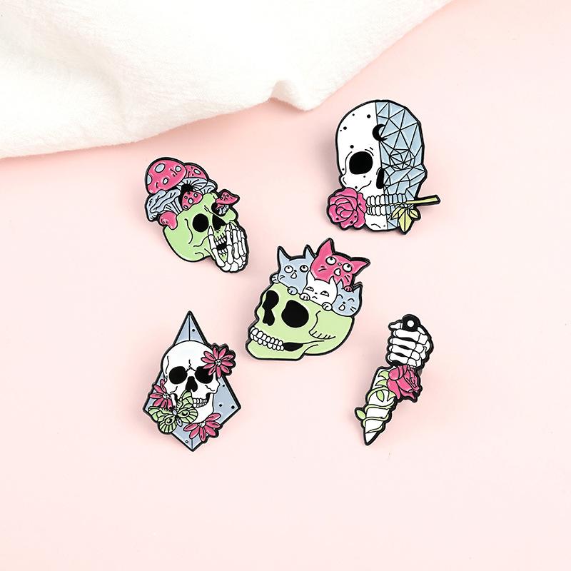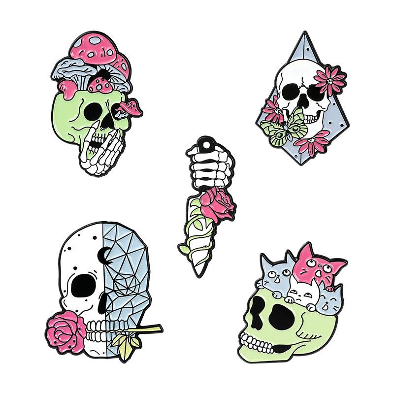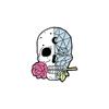Broche de joyería con diseño de calavera y rosa, creativo y de dibujos animados, insignia de pintura personalizada que combina con todo.