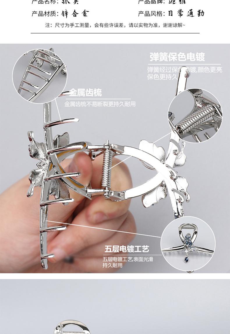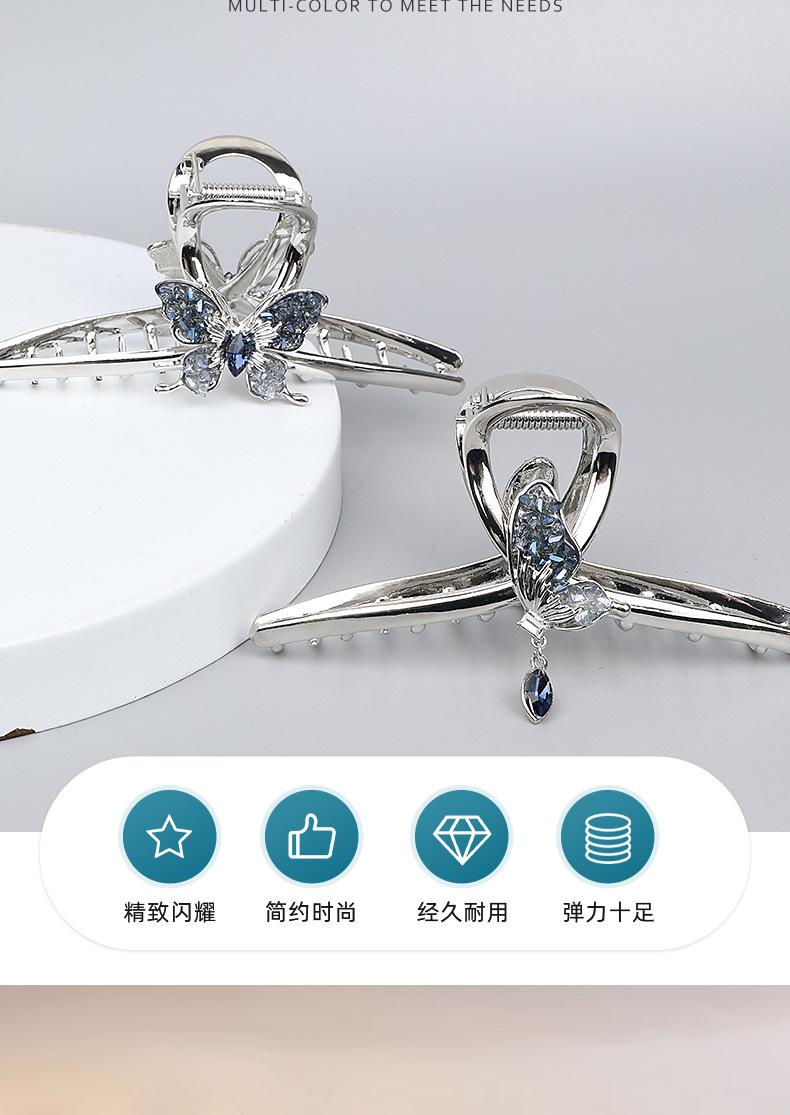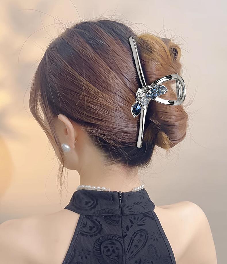 Elegante clip de tiburón de metal con forma de mariposa de cristal, grande, de alta calidad, para recogido en la parte posterior de la cabeza, accesorios para el cabello, volumen del cabello, horquilla grande