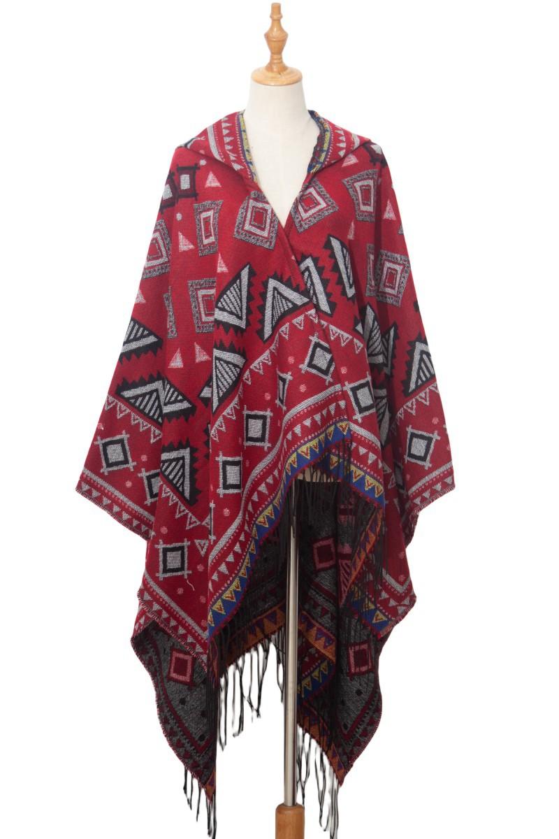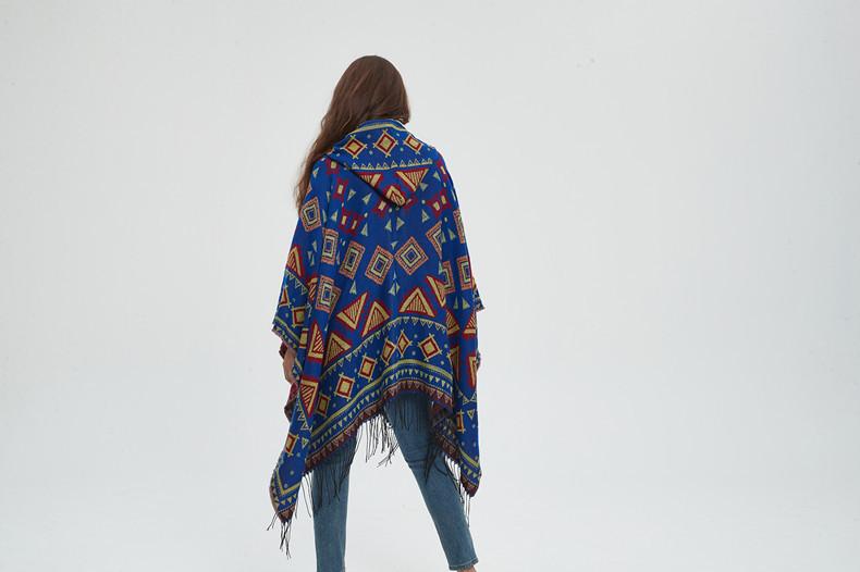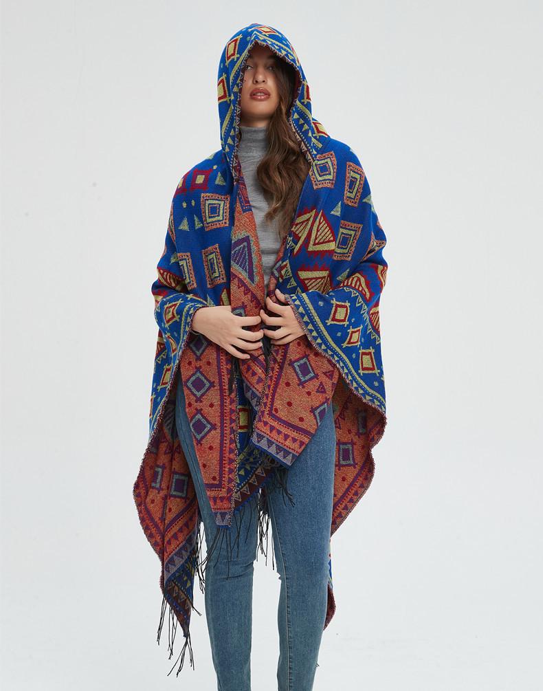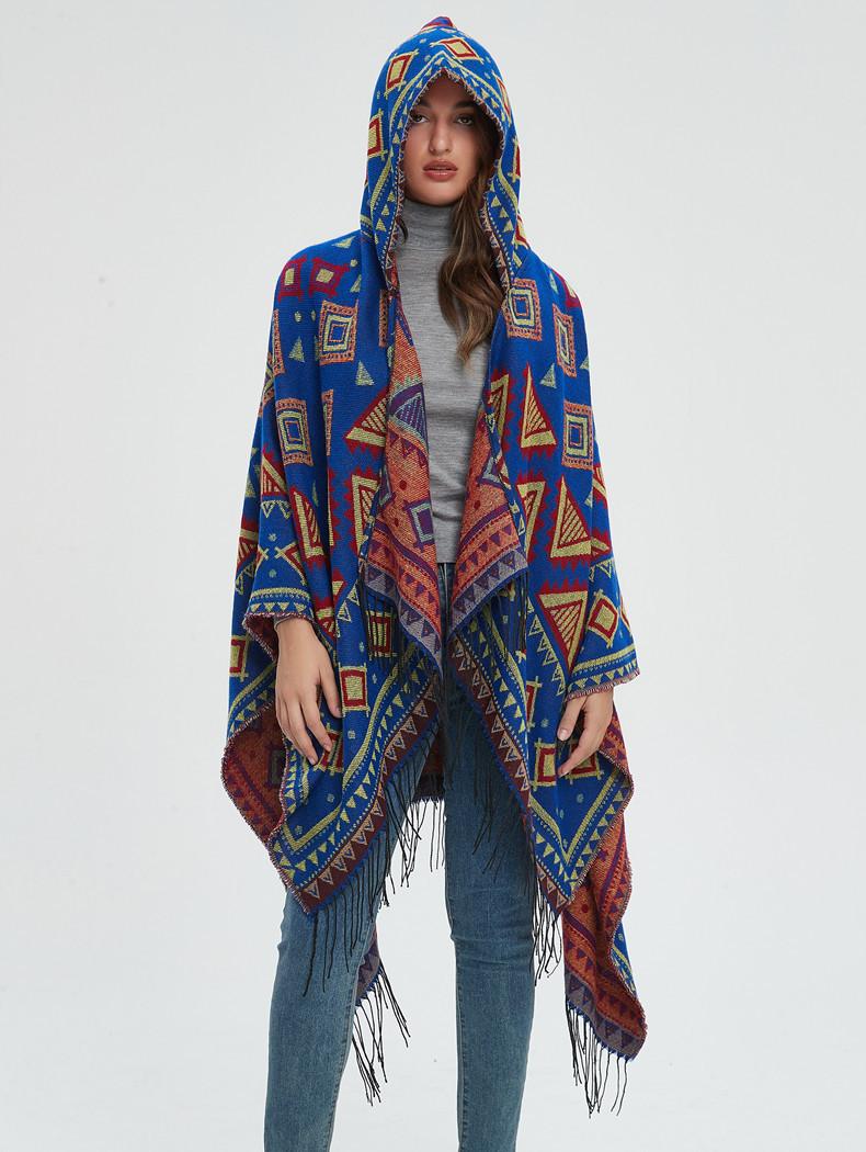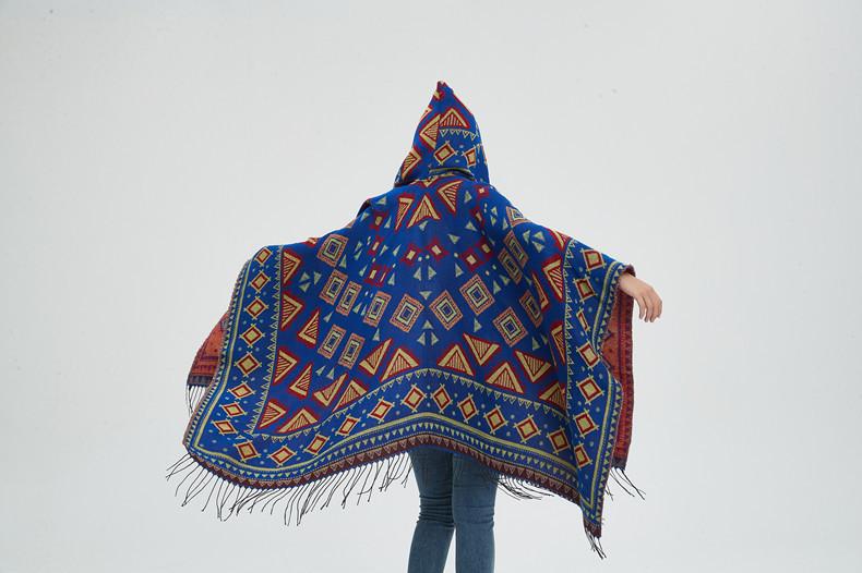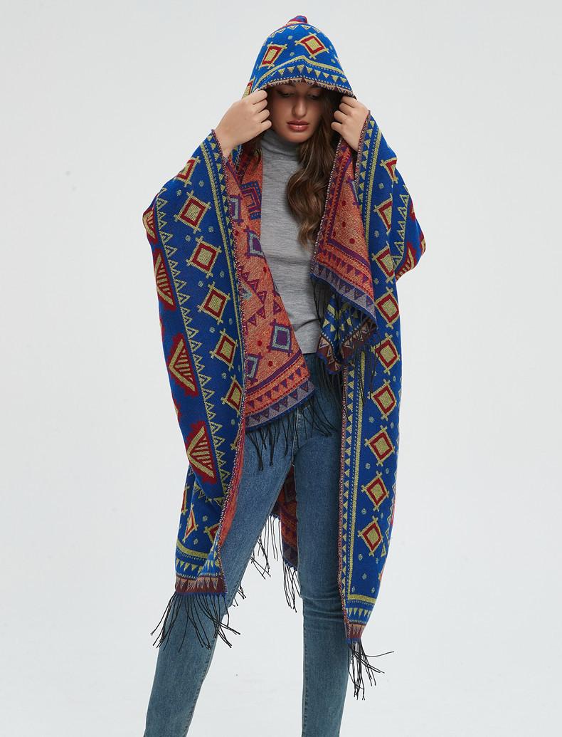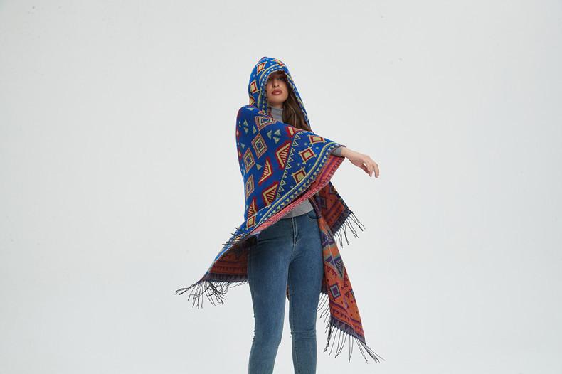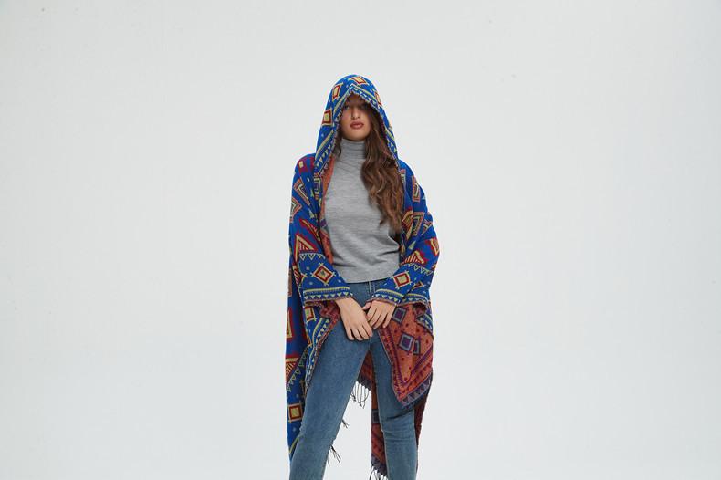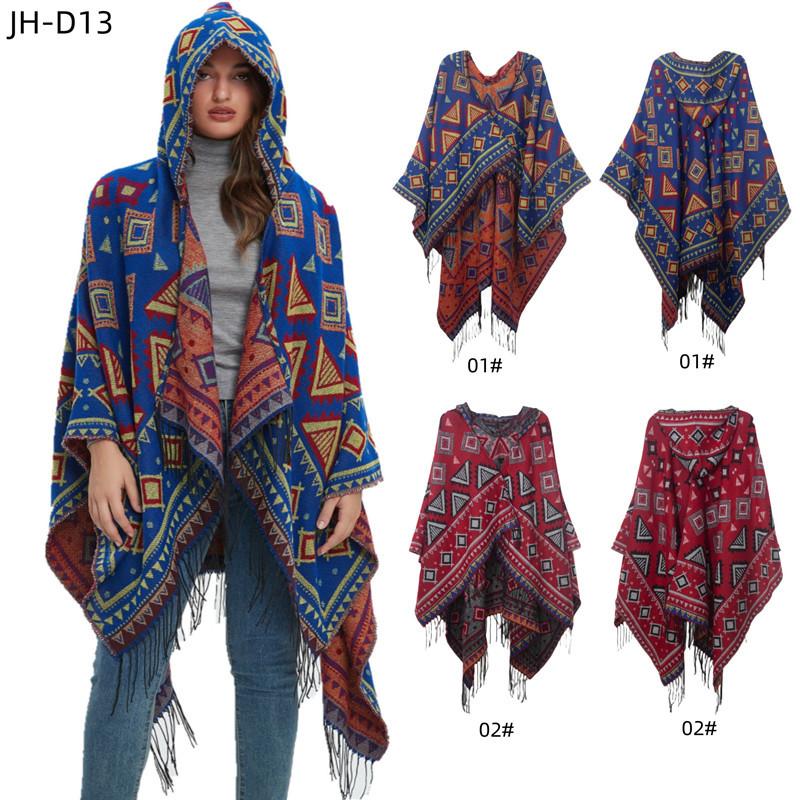 Suministro directo de fábrica de comercio exterior transfronterizo nuevo europeo y americano primavera y otoño invierno patrón de espiga señoras capucha chal suéter capa