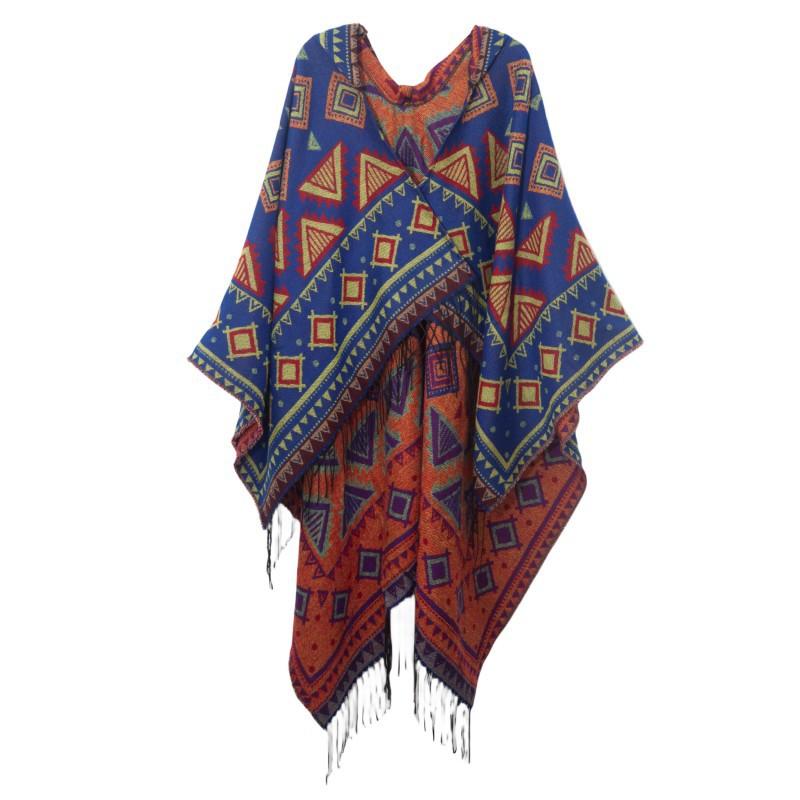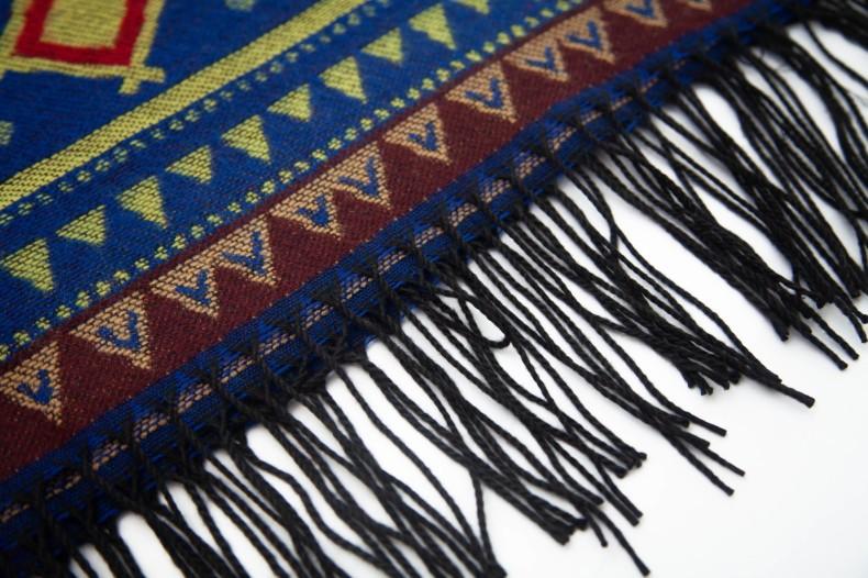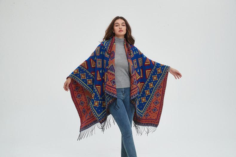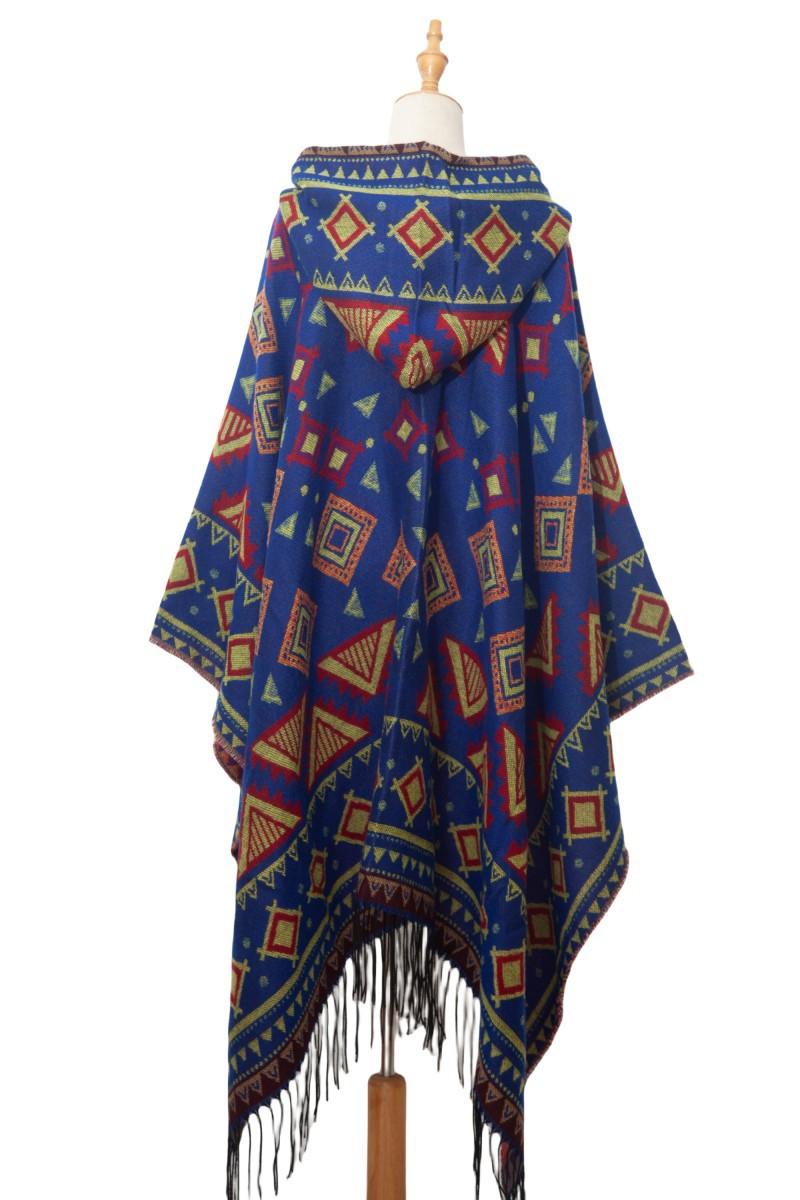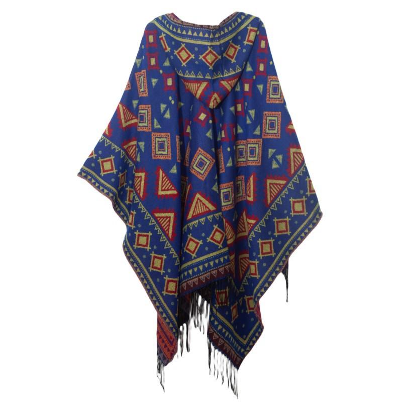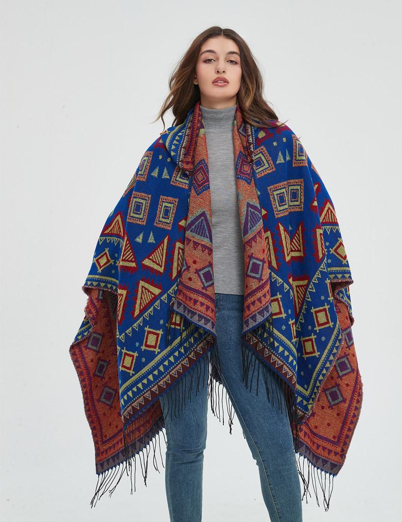 Capa con capucha y chal de cachemira sintética negra y azul con diseño de pavo real jacquard de primavera y otoño invierno de Europa y América de comercio exterior de Amazon 2023