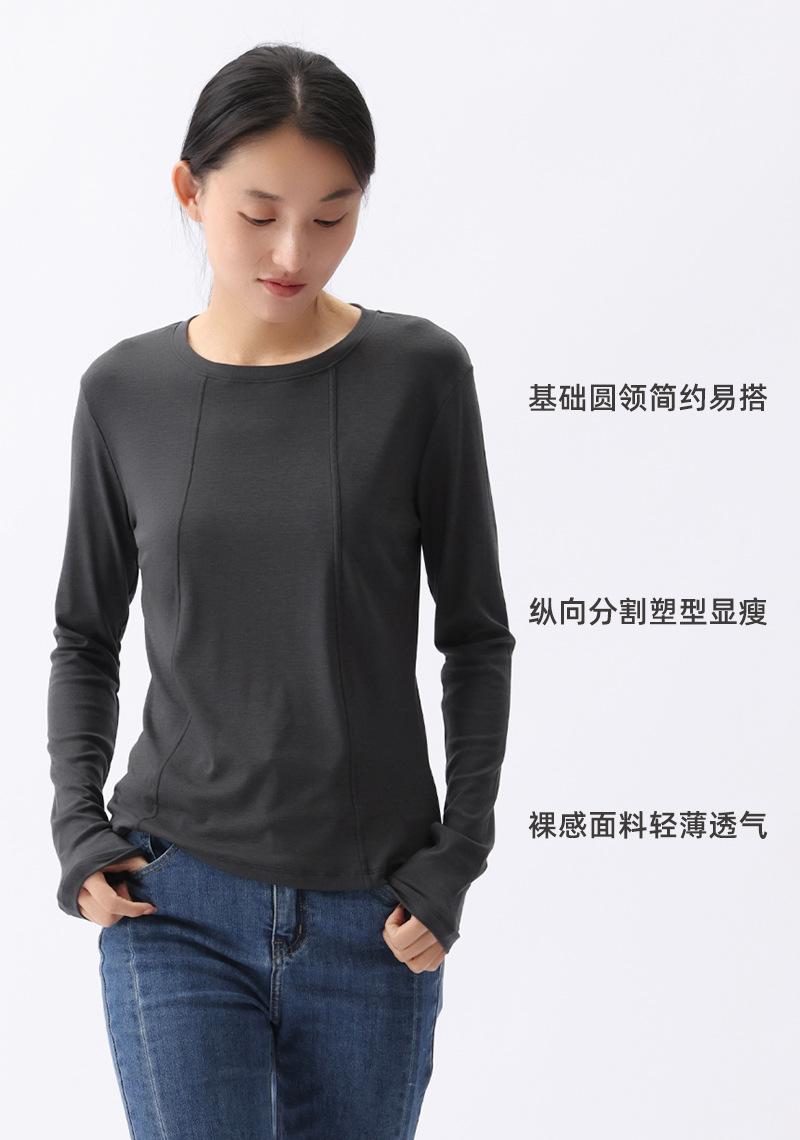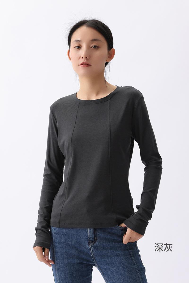 [Liquidación] Camiseta de Manga Larga para Mujer en Otoño, Cuello Redondo, Ropa Exterior Holgada, Casual Fina para Mujer, Suave y Cera Camiseta Básica de Color Puro