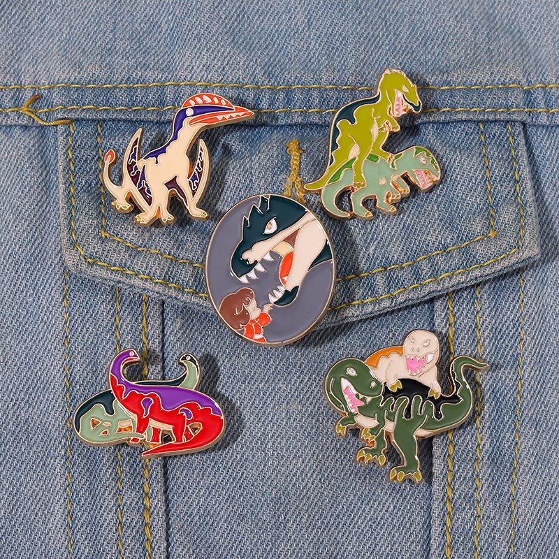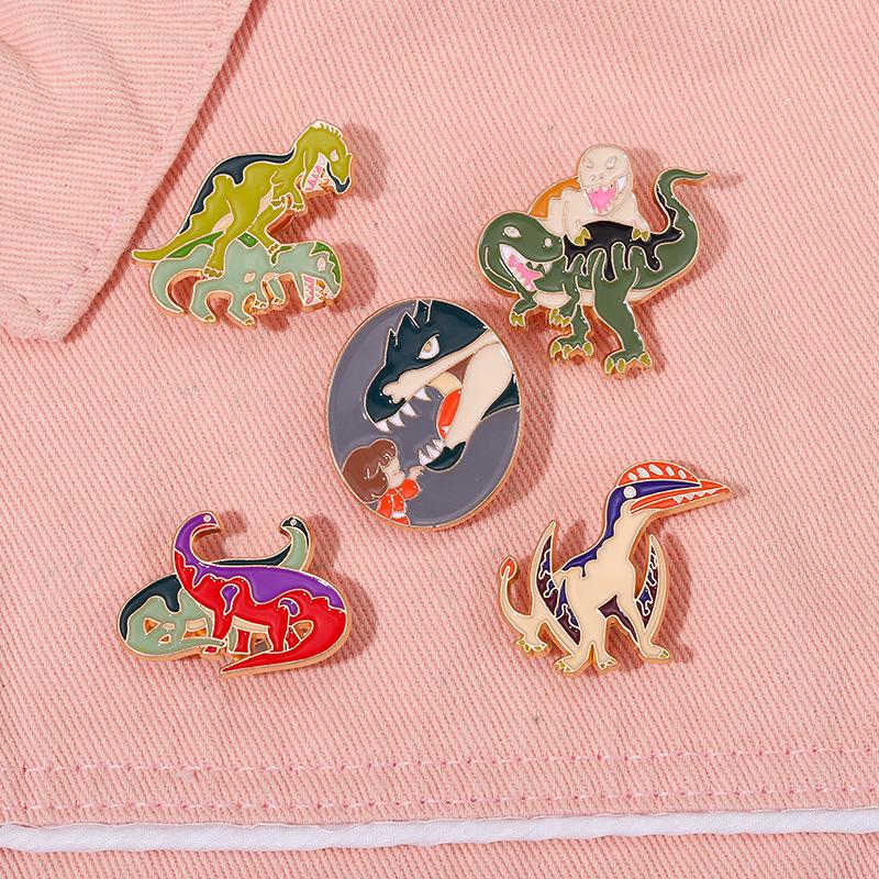 Nuevo broche de aleación con diseño de dinosaurio pequeño de Amazon, accesorio sencillo para ropa, bolsos, joyas y insignias.