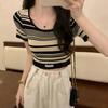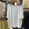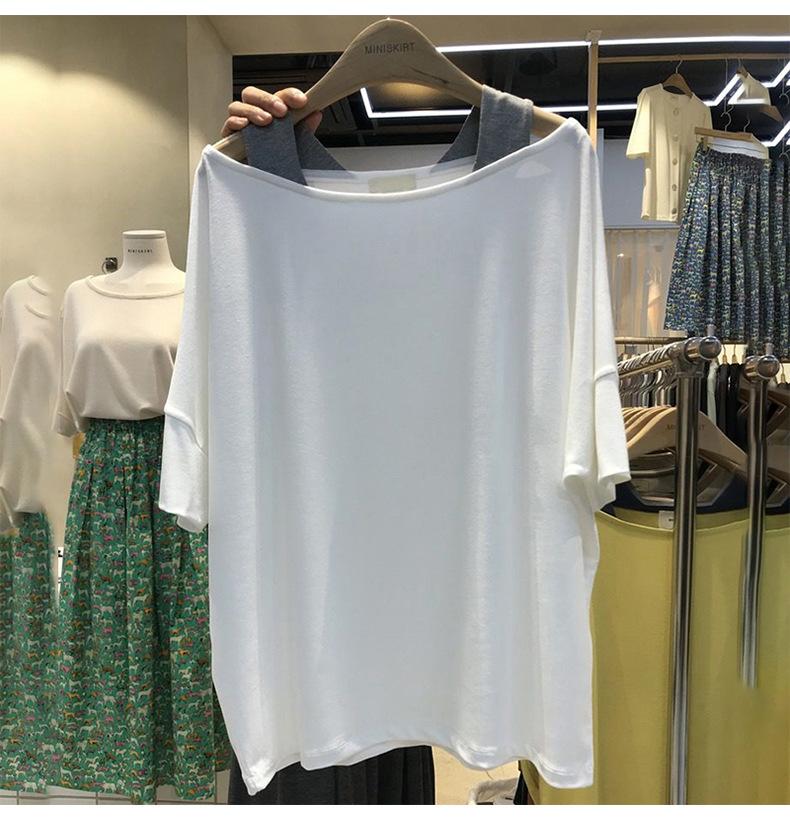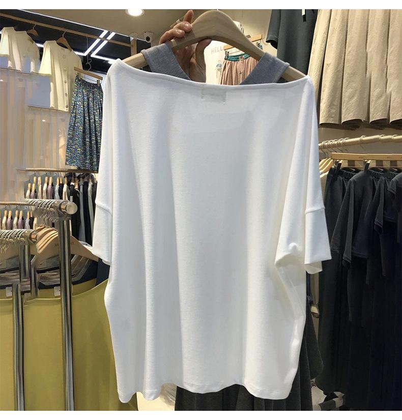 Camiseta holgada de algodón de manga corta con diseño de nicho de estilo coreano de verano 2023, top de algodón sexy con hombros descubiertos para mujer
