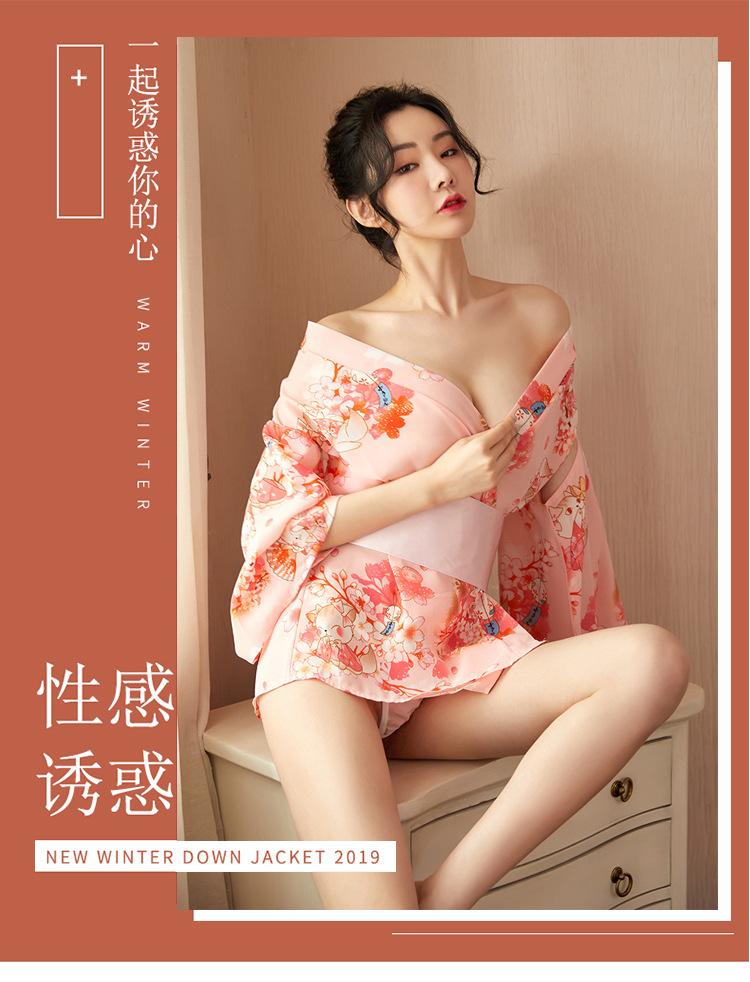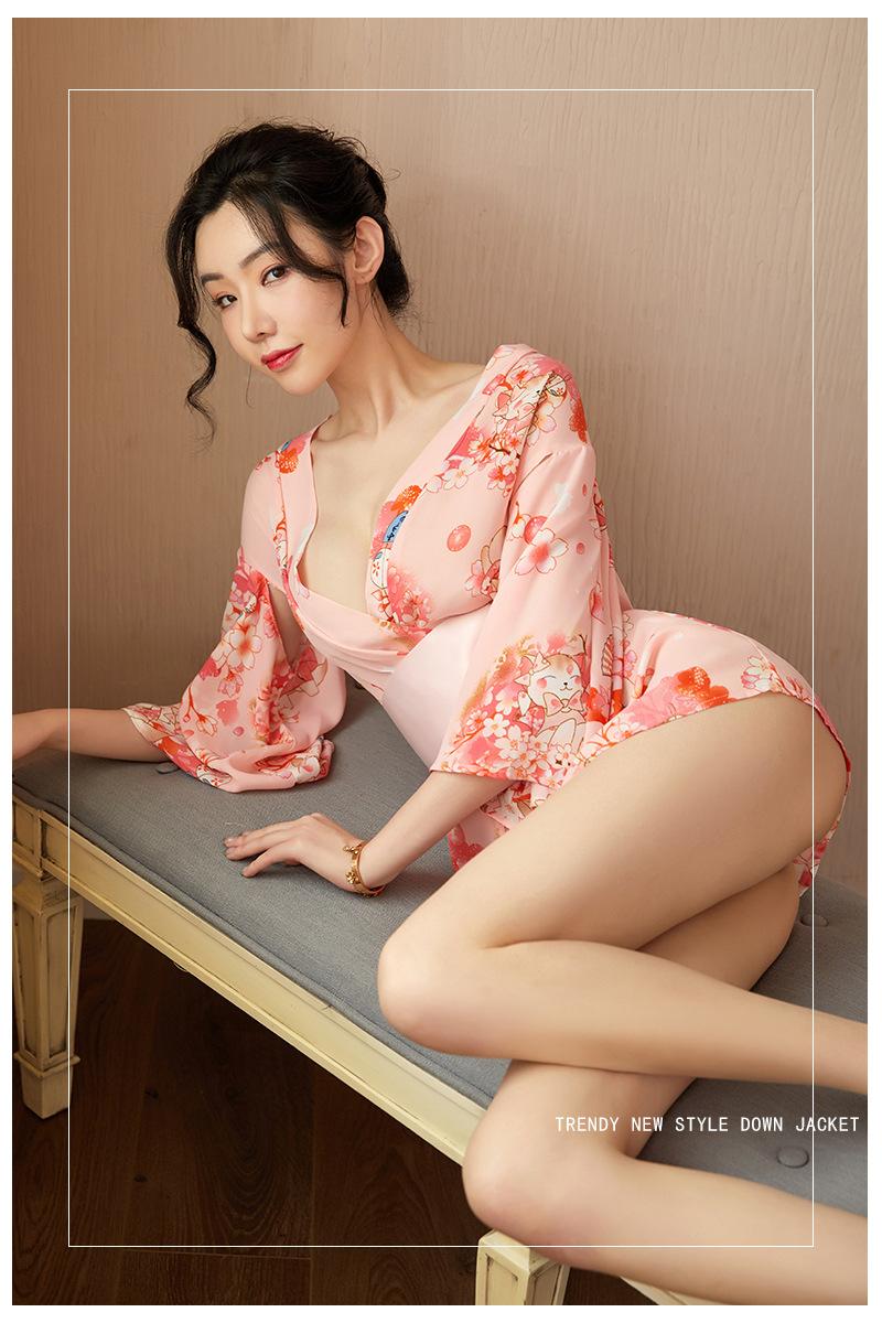 Ropa interior sexy corte bajo kimono japonés estampado sexy pasión uniforme traje tentación cárdigan camisón de gasa al por mayor