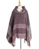 Capa dividida con borlas espinosas y cuadros gruesos para mujer, nueva capa dividida de otoño e invierno de Europa y América, comercio exterior de Amazon