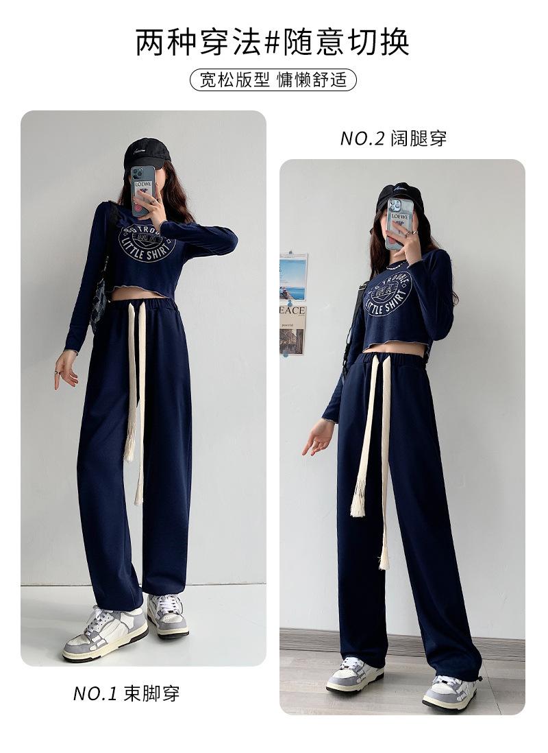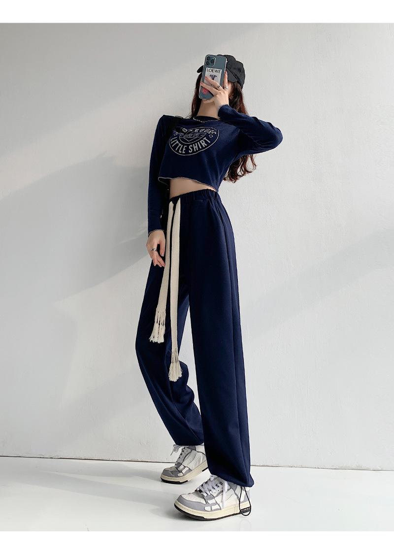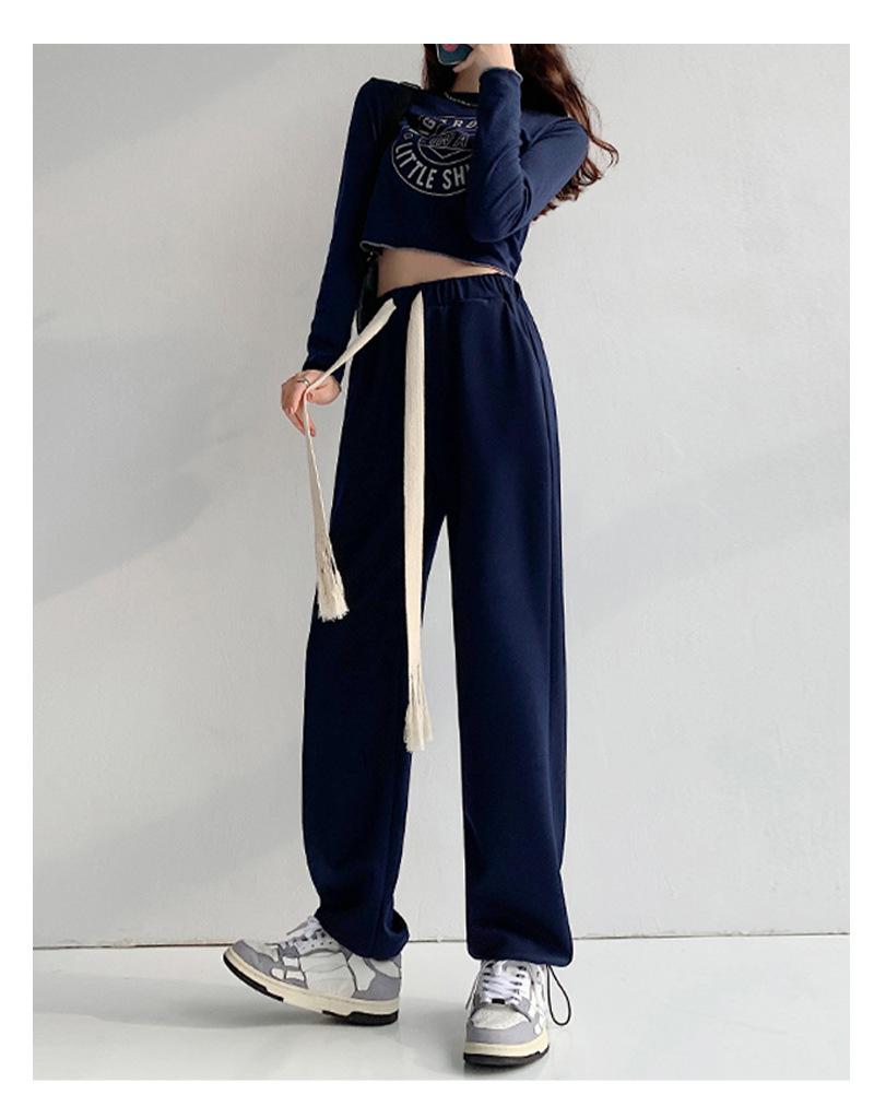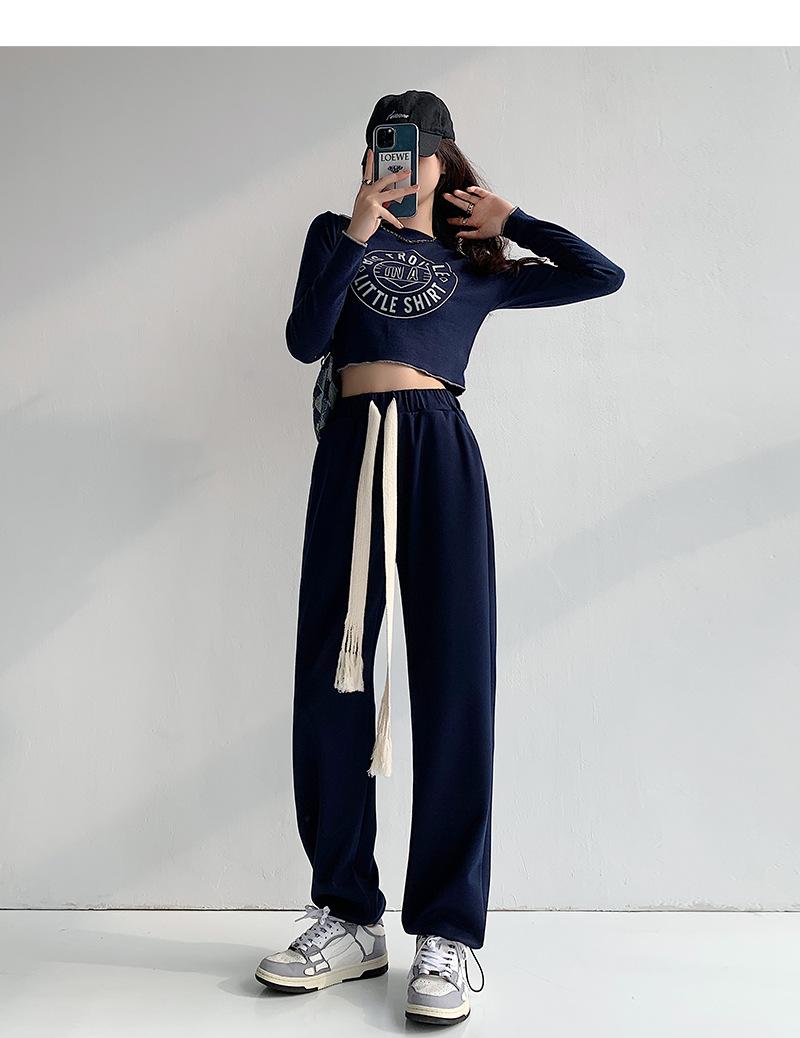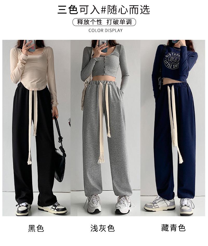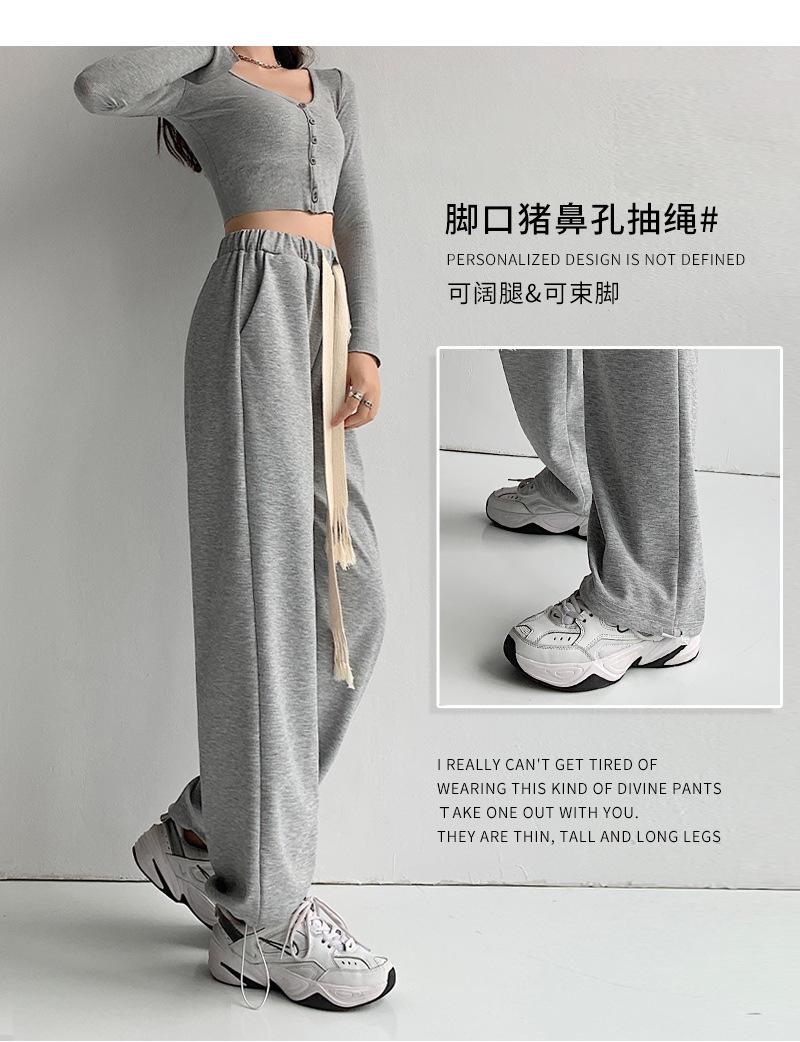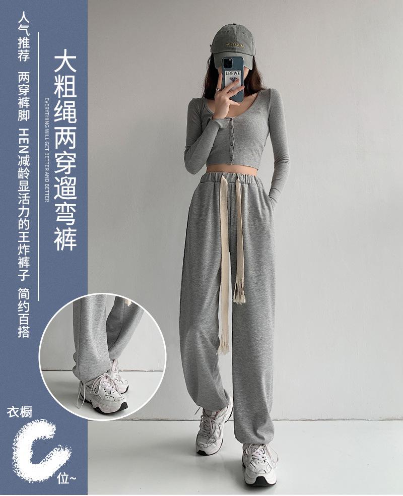 Pantalones deportivos con cordón para mujer Primavera y otoño Cintura alta Pies recogidos Nuevo Caminar perezoso Pierna ancha Casual Pantalones de guardia H784