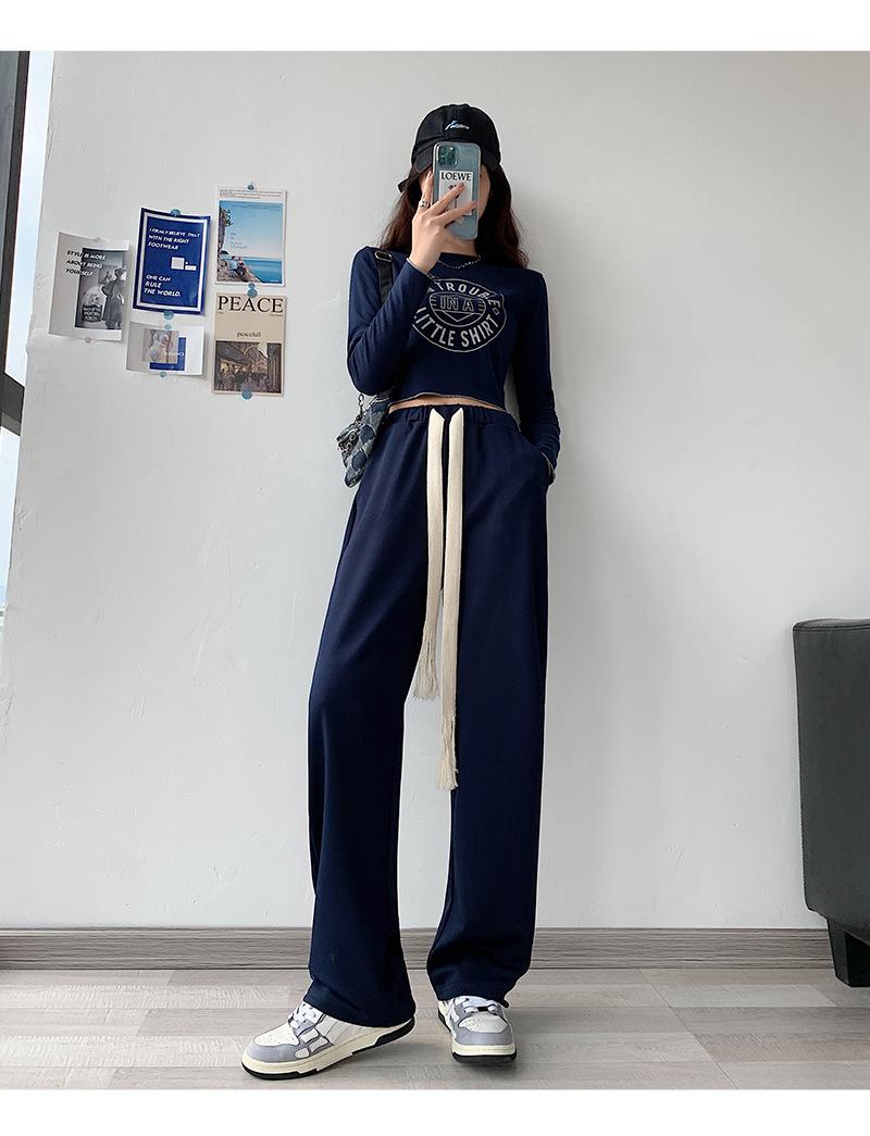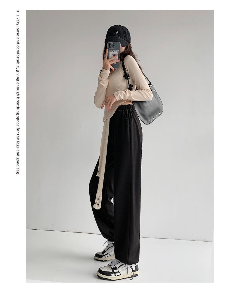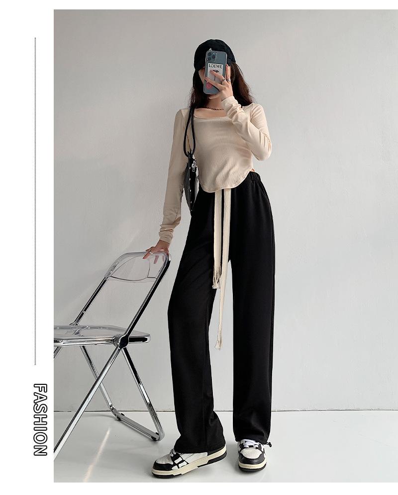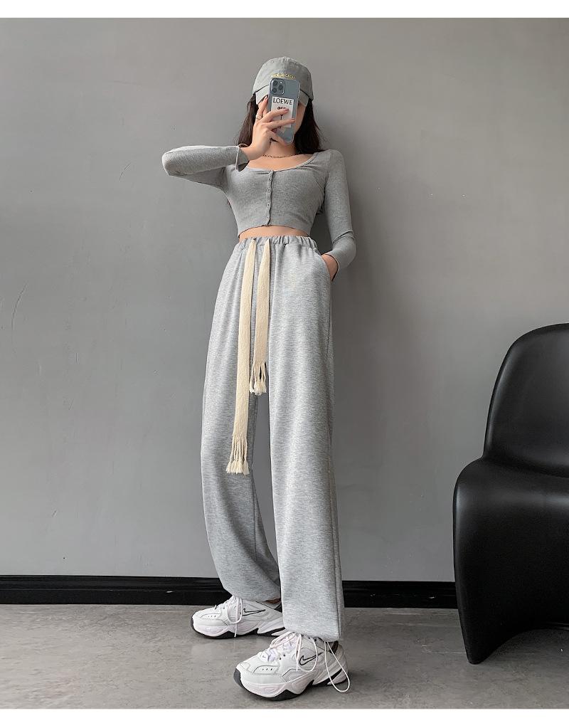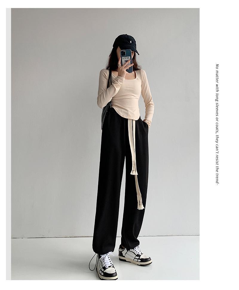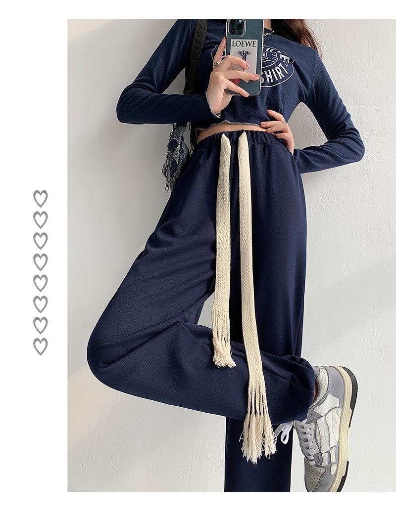 Pantalones deportivos con cordón para mujer Primavera y otoño Cintura alta Pies recogidos Nuevo Caminar perezoso Pierna ancha Casual Pantalones de guardia H784