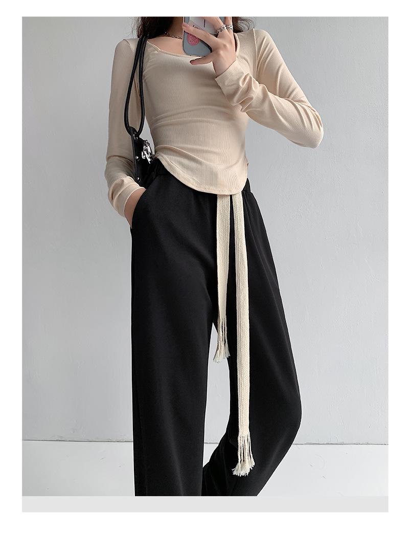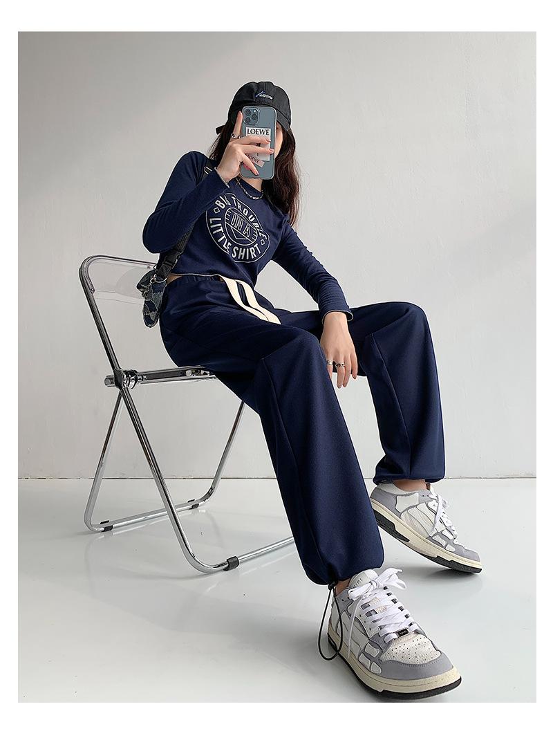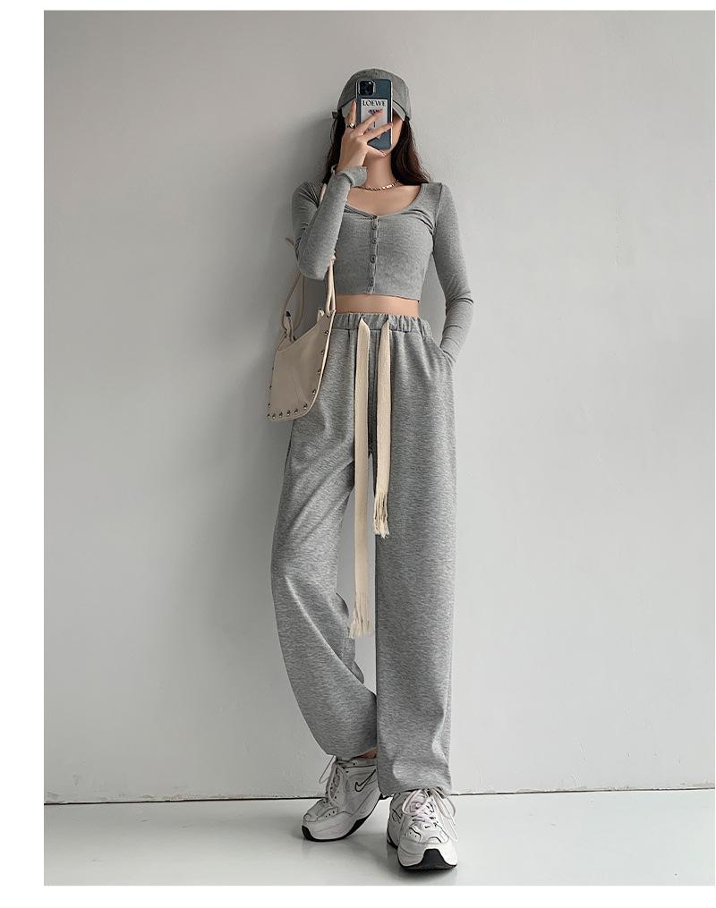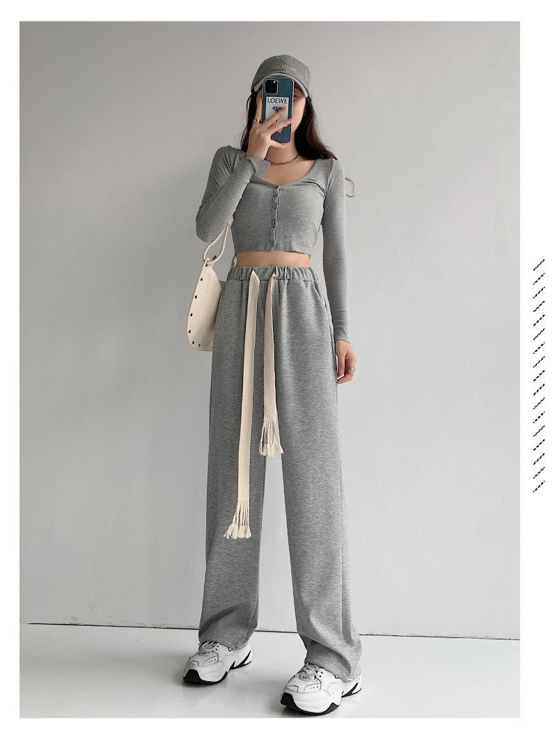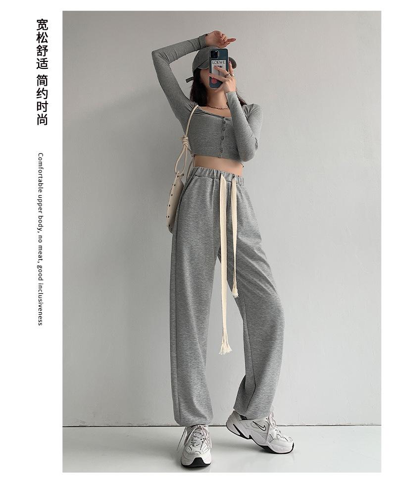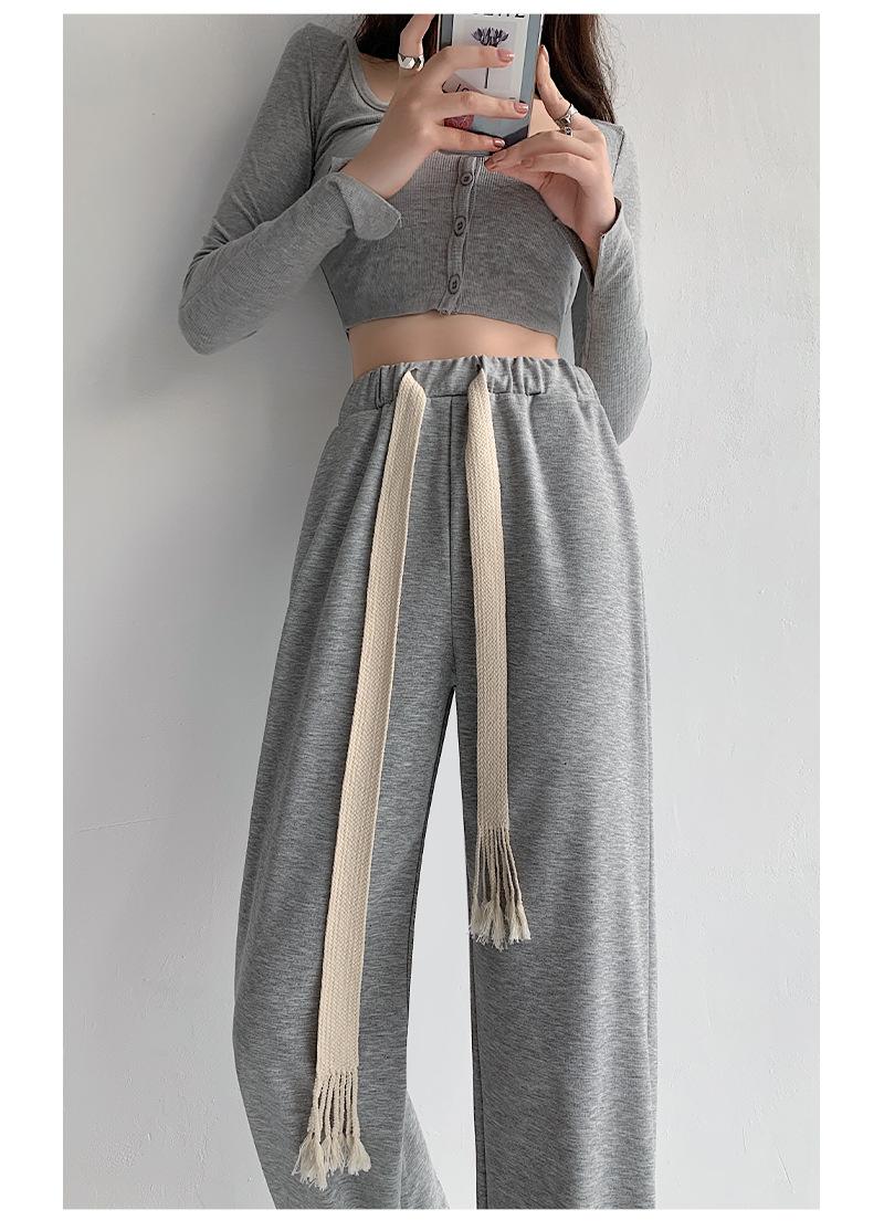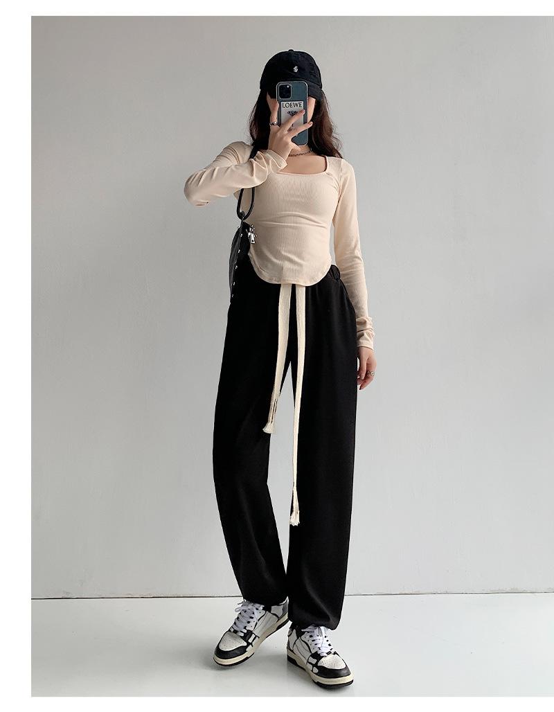 Pantalones deportivos con cordón para mujer Primavera y otoño Cintura alta Pies recogidos Nuevo Caminar perezoso Pierna ancha Casual Pantalones de guardia H784