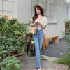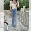 Ajustado en cintura y caderas para adaptarse a las curvas del cuerpo Hasta la mitad del muslo Blanco lavado con color más claro