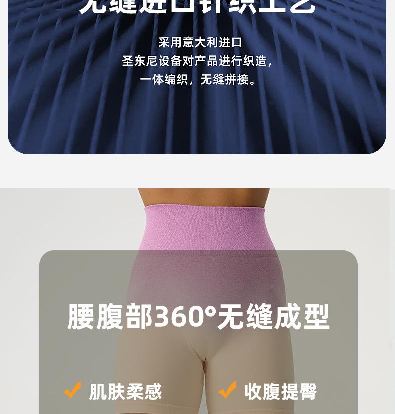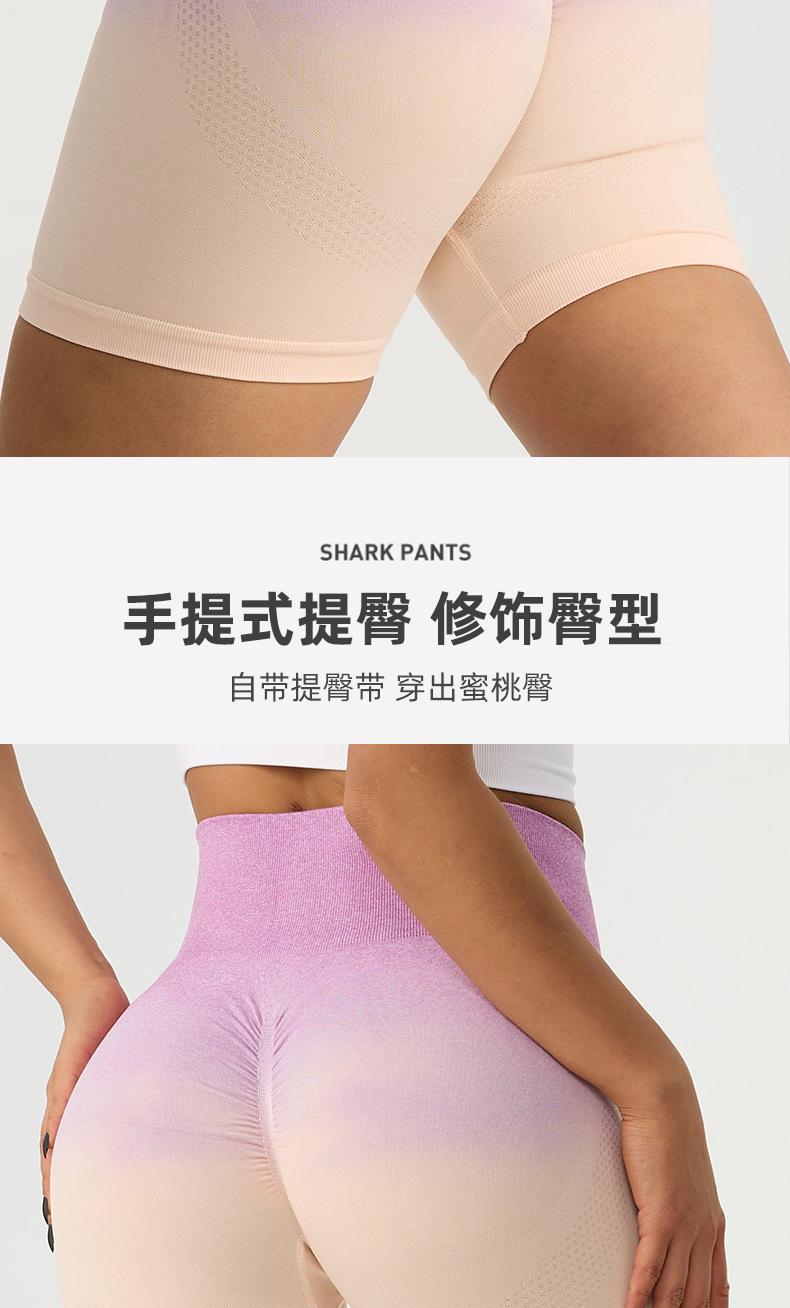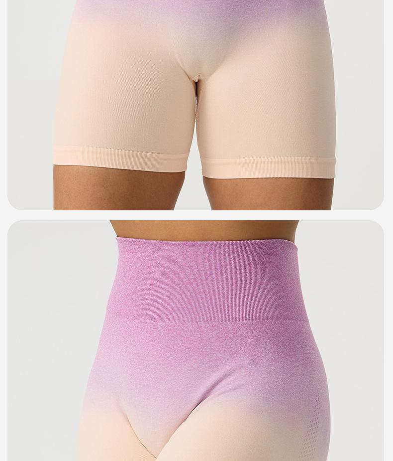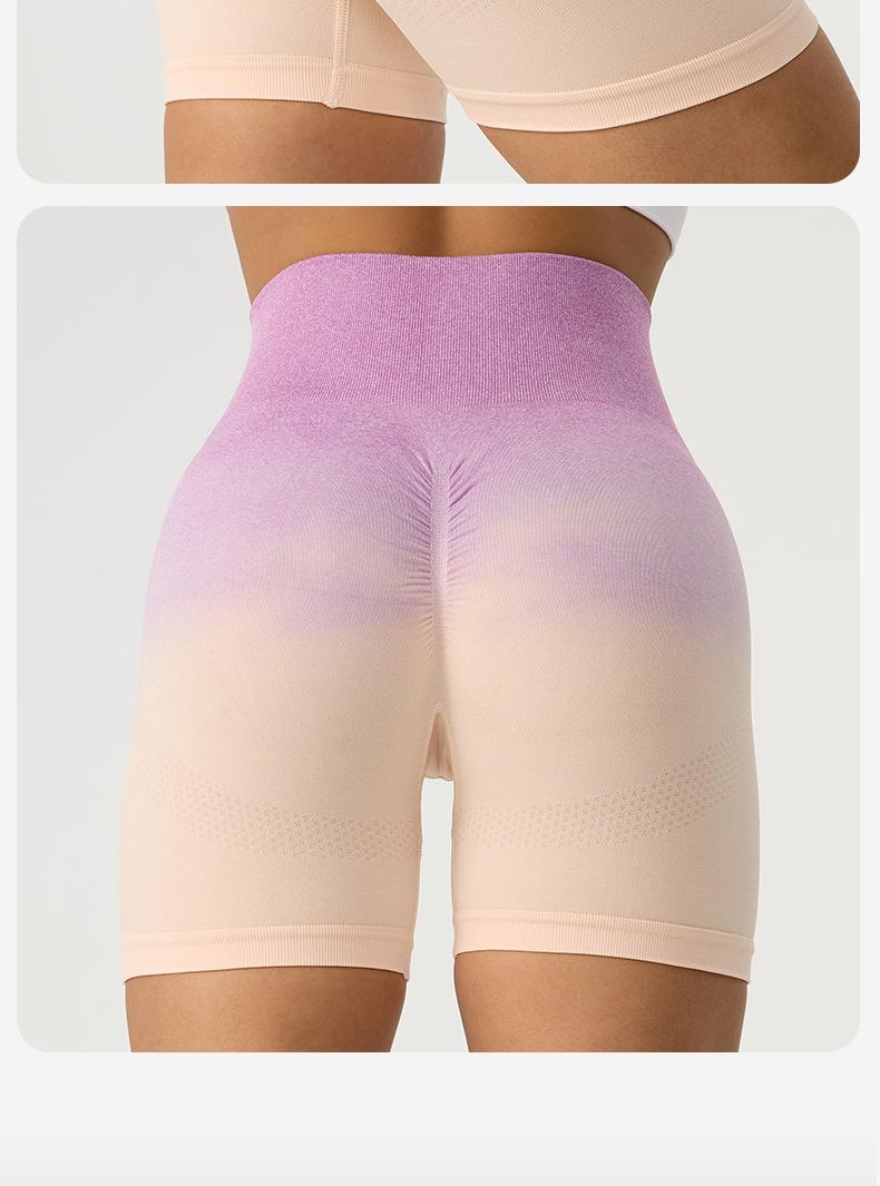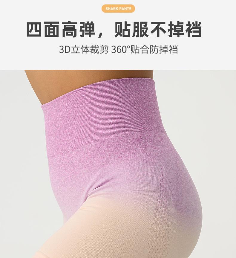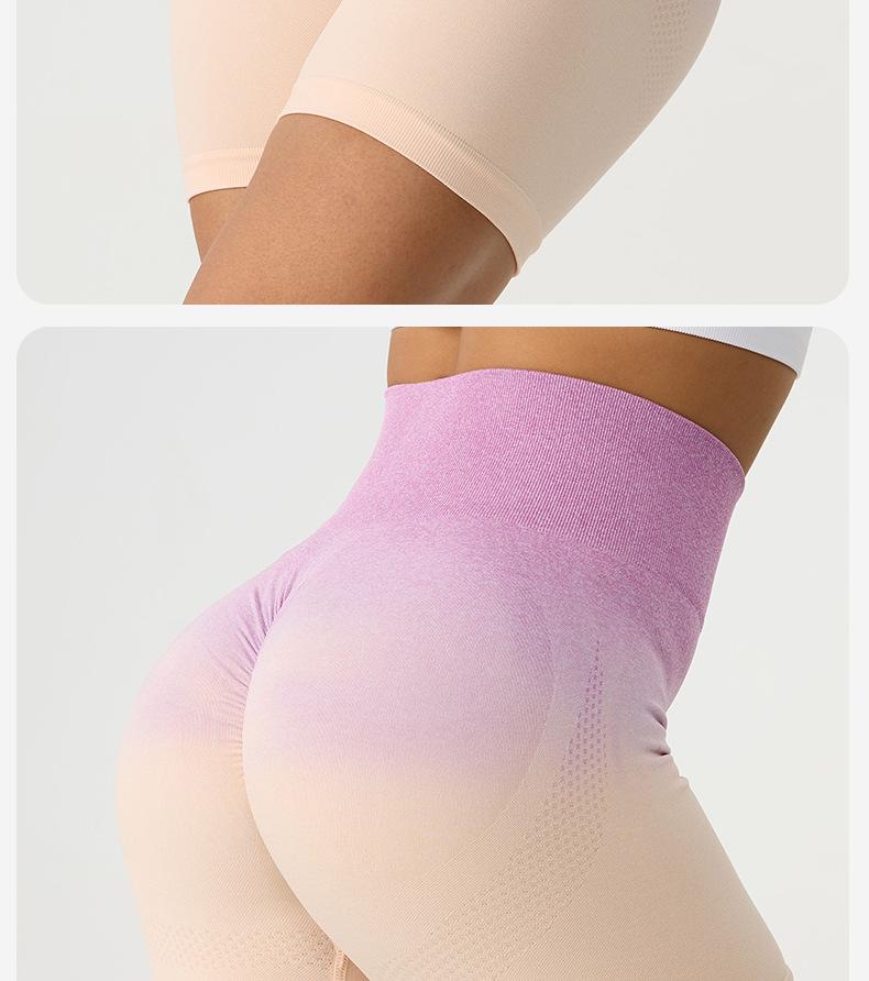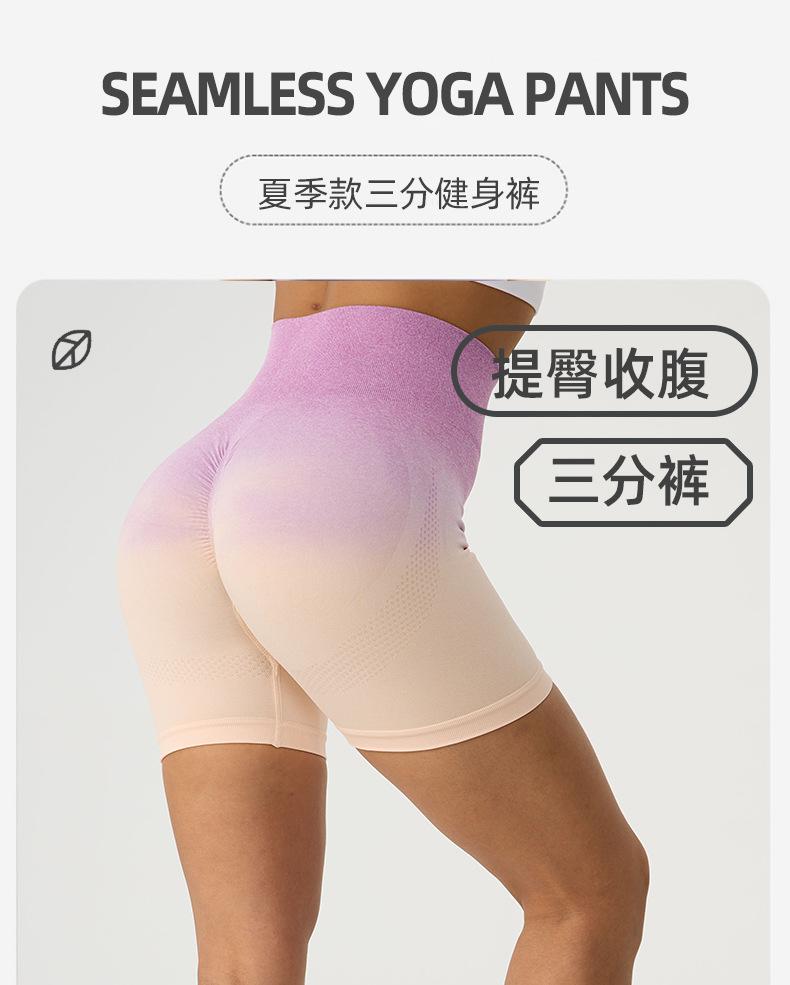 Pantalones de Fitness de Tres Puntos con Degradado para Vientre Plano y Cadera Estrecha Europeos y Americanos para Mujer, Cintura Alta, Levanta Cadera, Ajustados para Correr, Deportivos, Cortos de Yoga Melocotón
