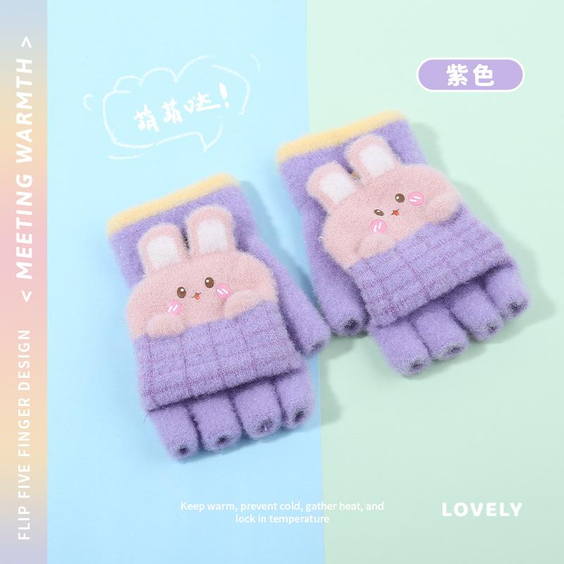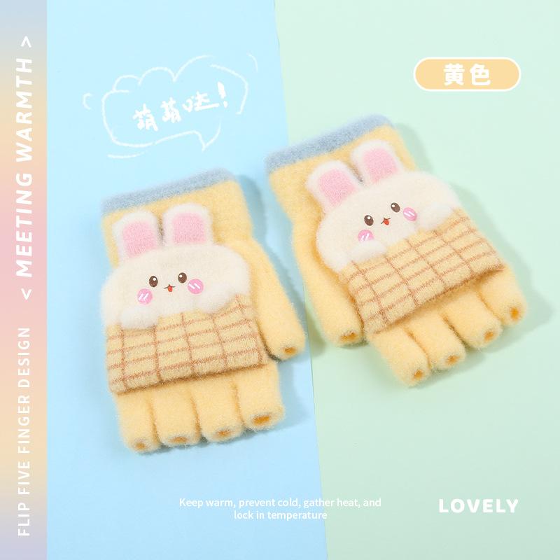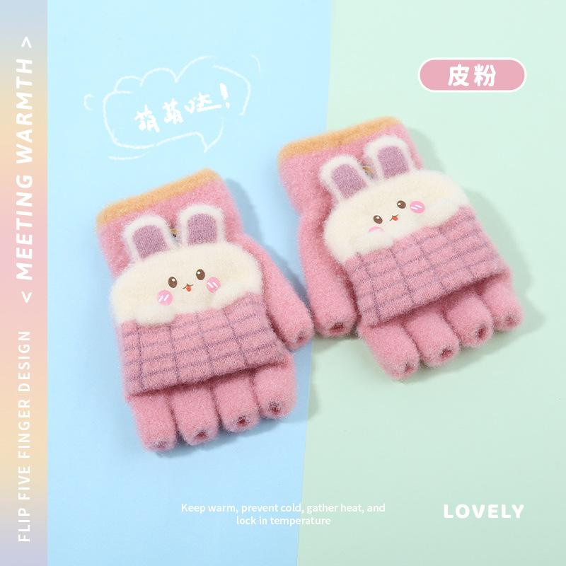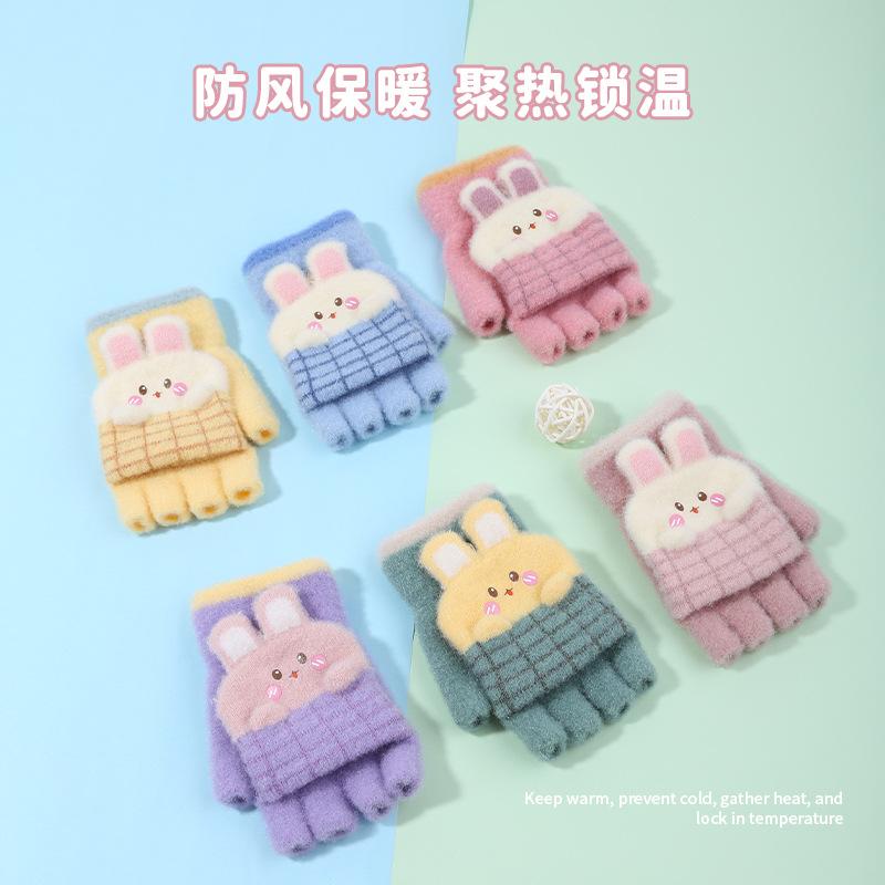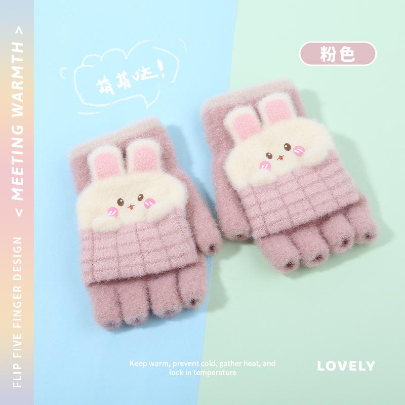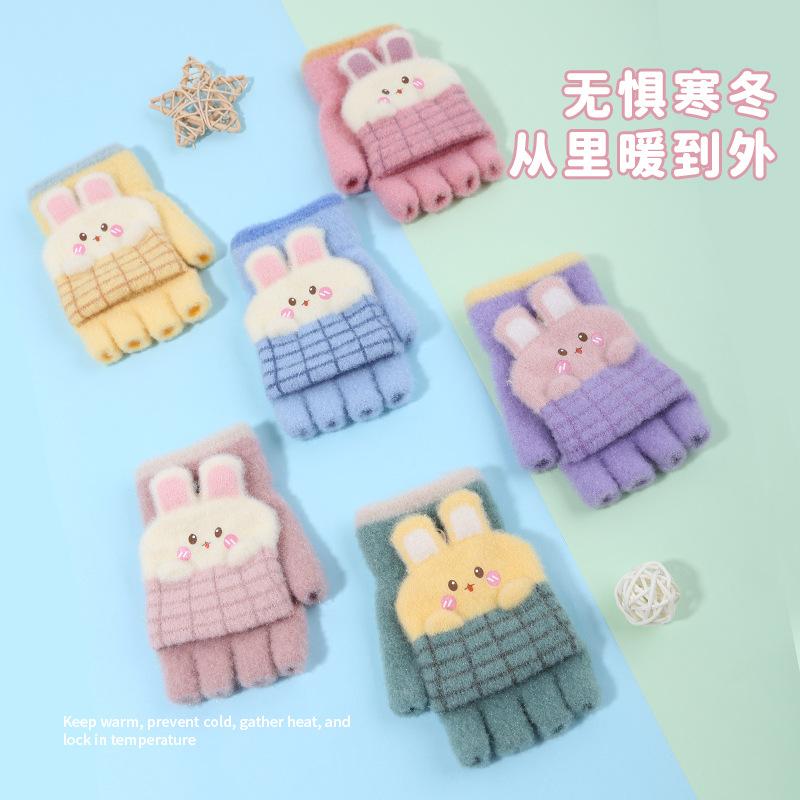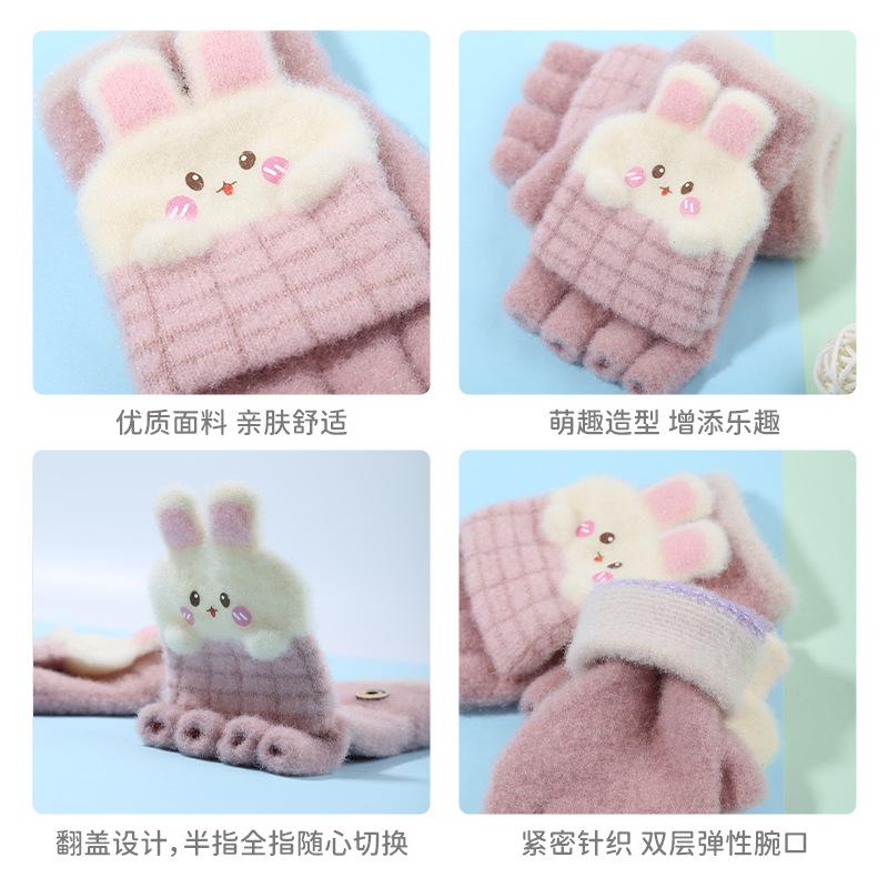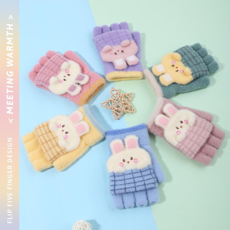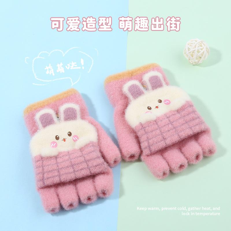 Guantes de invierno para niños, bonitos guantes de medio dedo con dibujos animados para estudiantes, guantes cálidos para niños y niñas, guantes de punto para escribir.