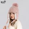 Gorro de lana de color con bola de pelo estilo coreano para invierno 8325, gorro de punto con protección para los oídos a prueba de frío, gorro cálido de felpa para mujer