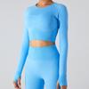 Ropa de yoga nueva sin costuras transfronteriza de manga larga para mujer, top de yoga de secado rápido, camiseta deportiva ajustada para correr y hacer ejercicio